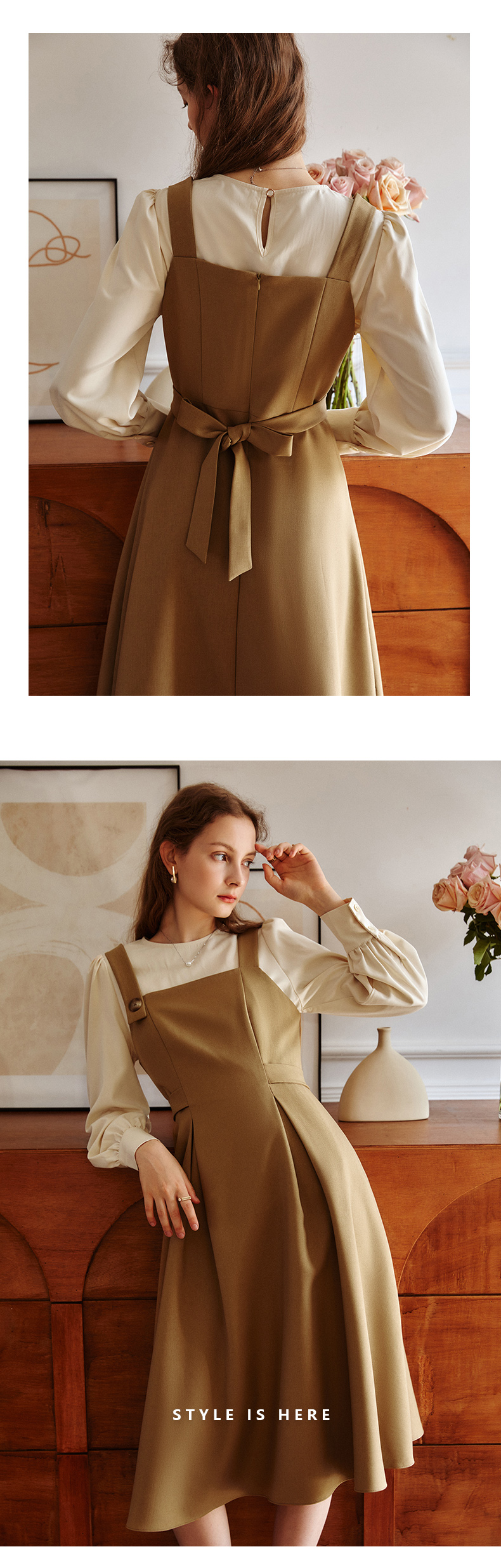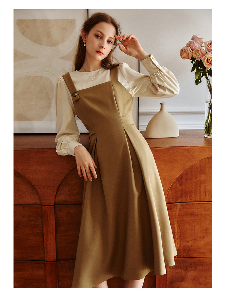 OLrain欧芮儿黑色假两件连衣裙女初秋2023新款收腰显瘦衬衫式裙子