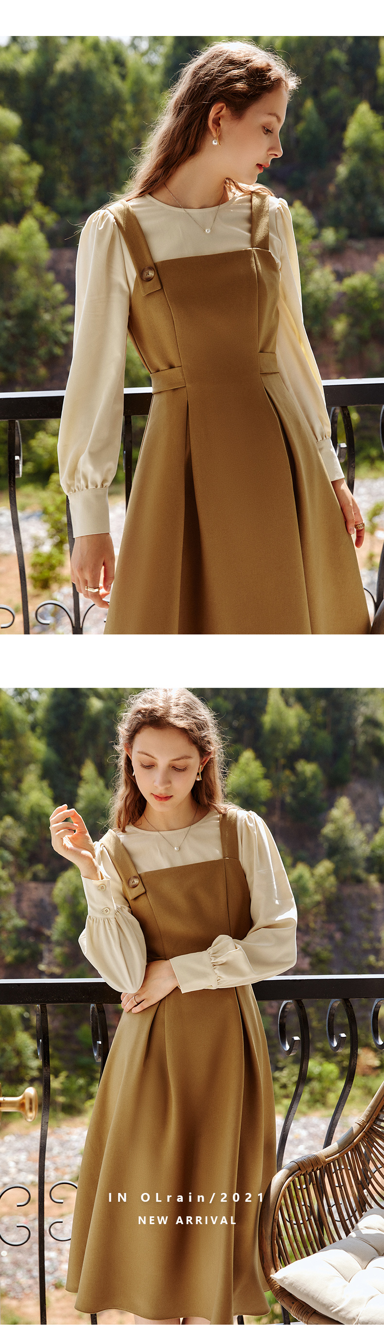 欧芮儿时尚套装女新款2021洋气时髦气质减龄衬衫吊带裙两件套
