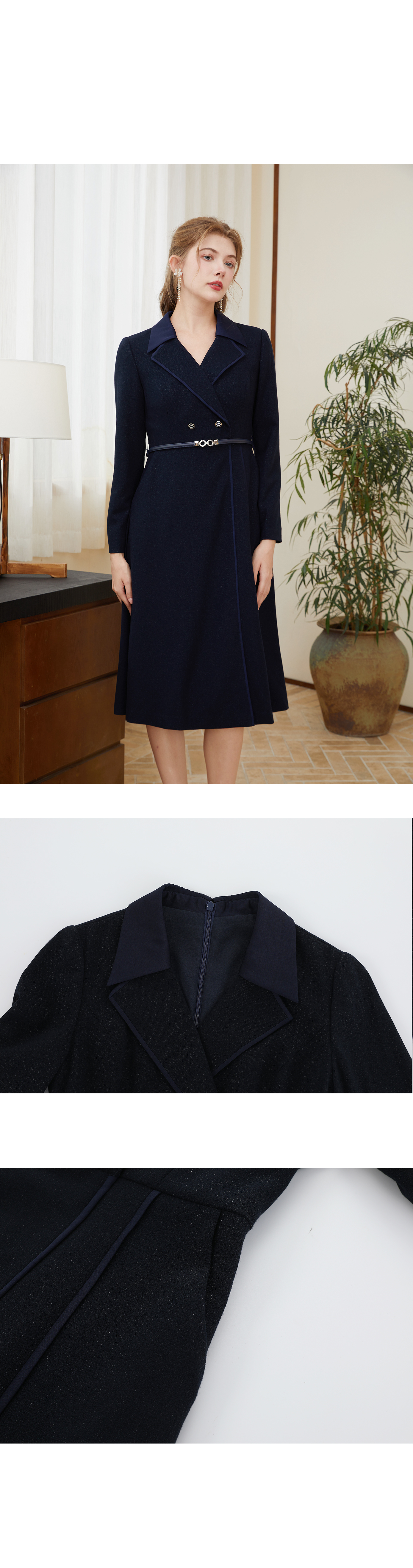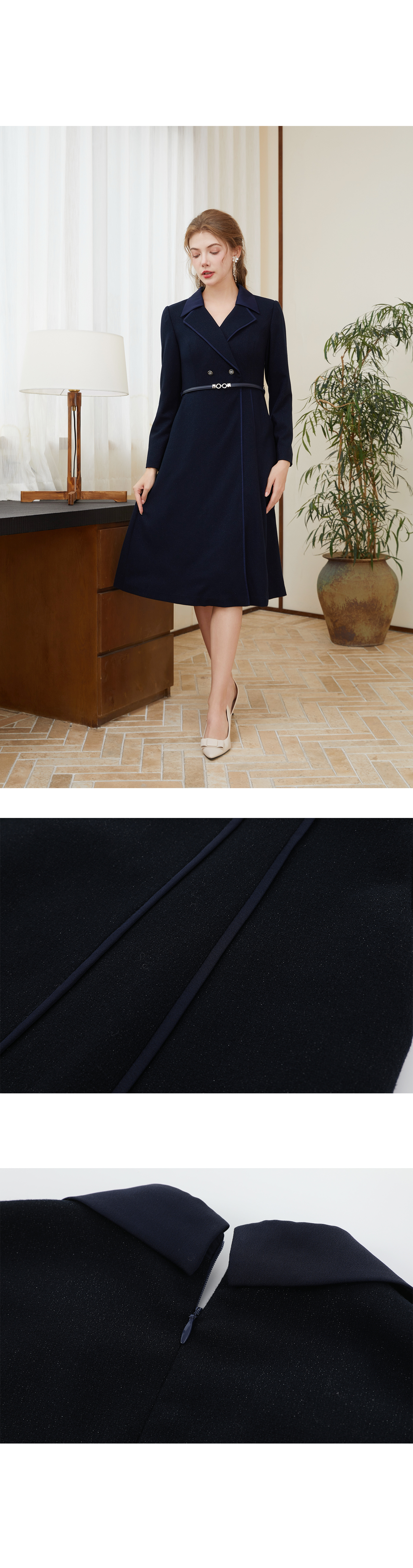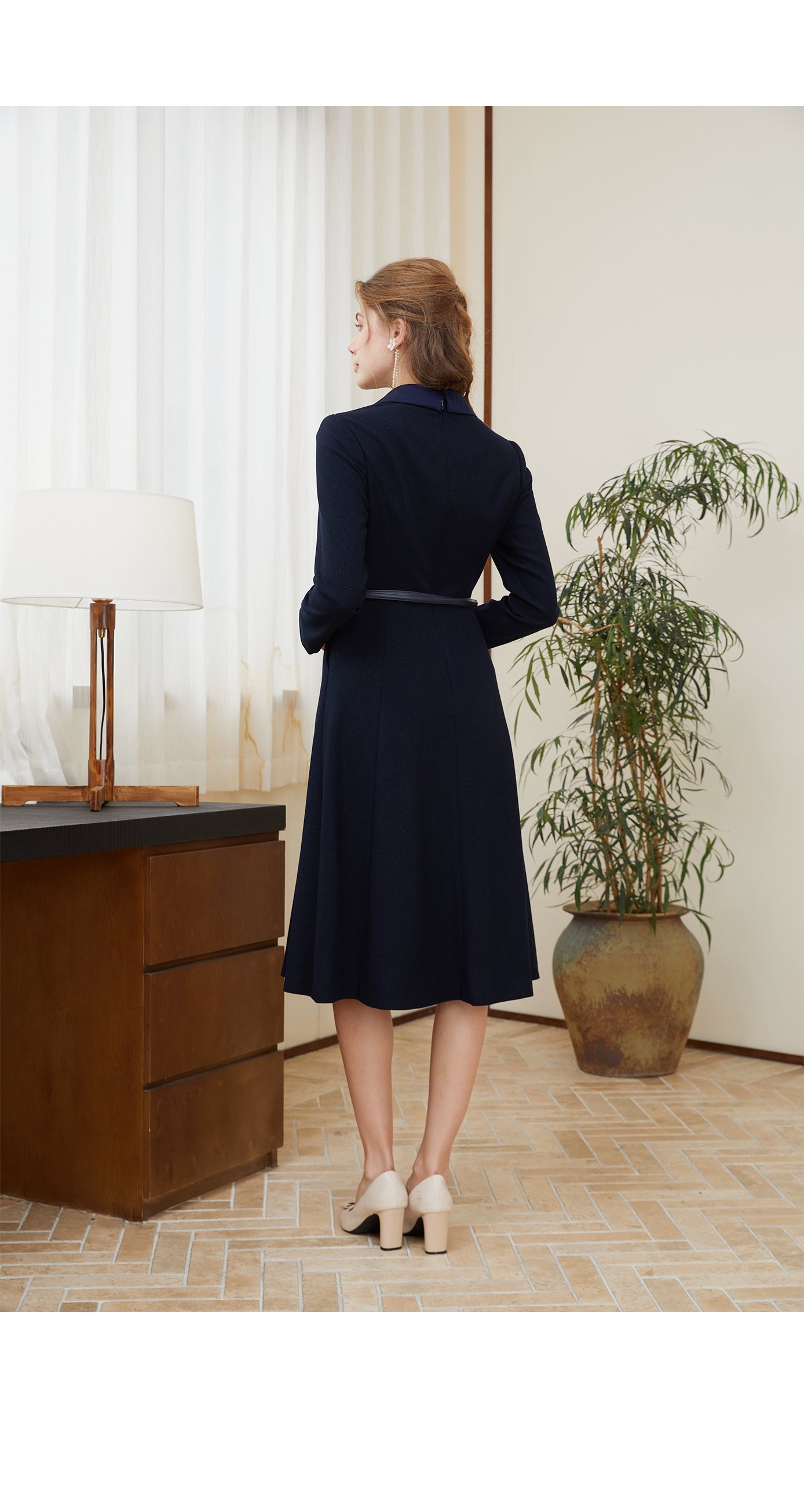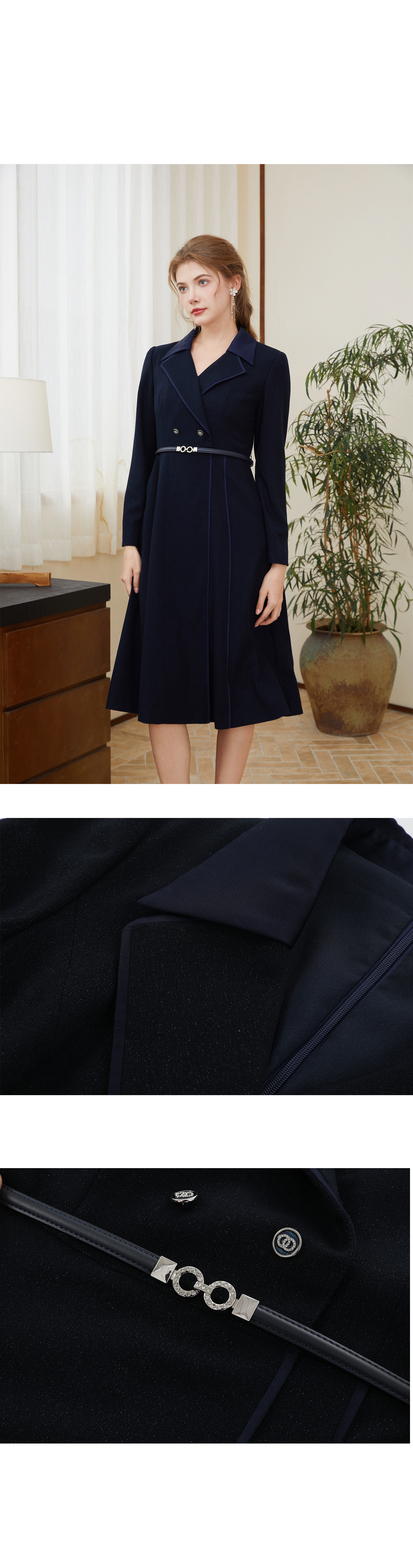 司歌V领风衣式翻领连衣裙长袖收腰端庄气质R921046X