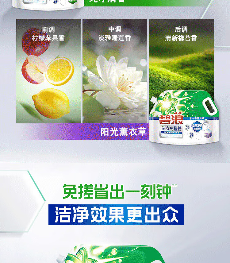 碧浪创新专研洗衣免搓粉纯净清香1.95KG