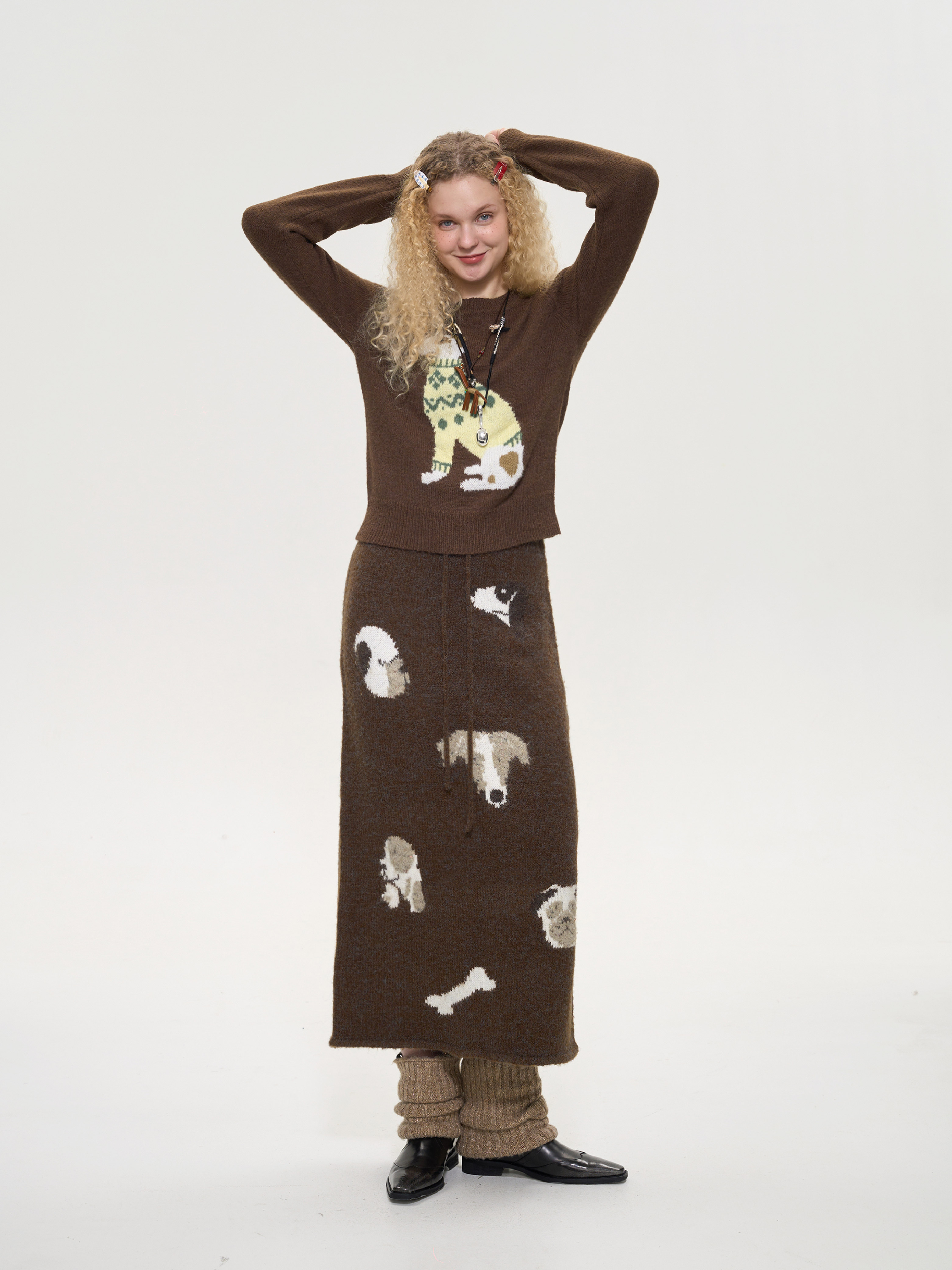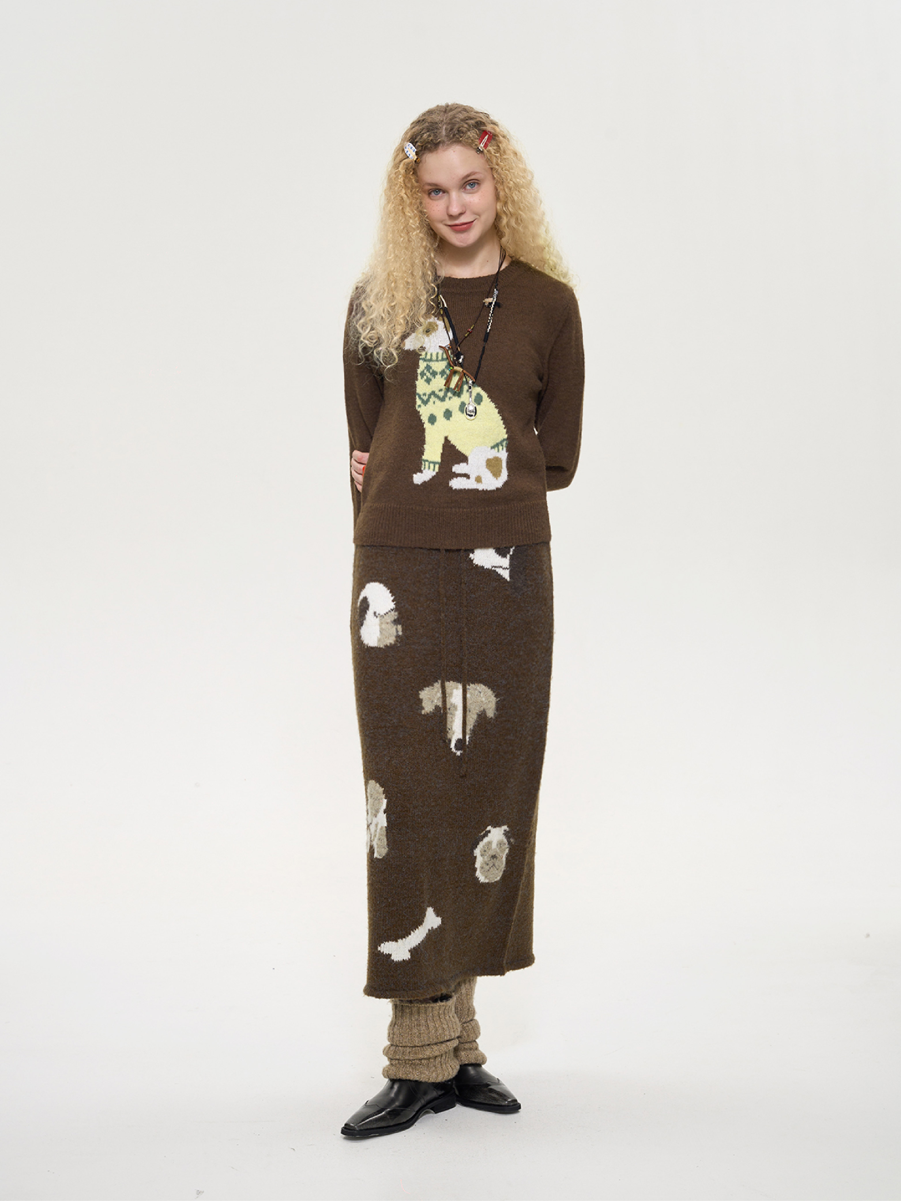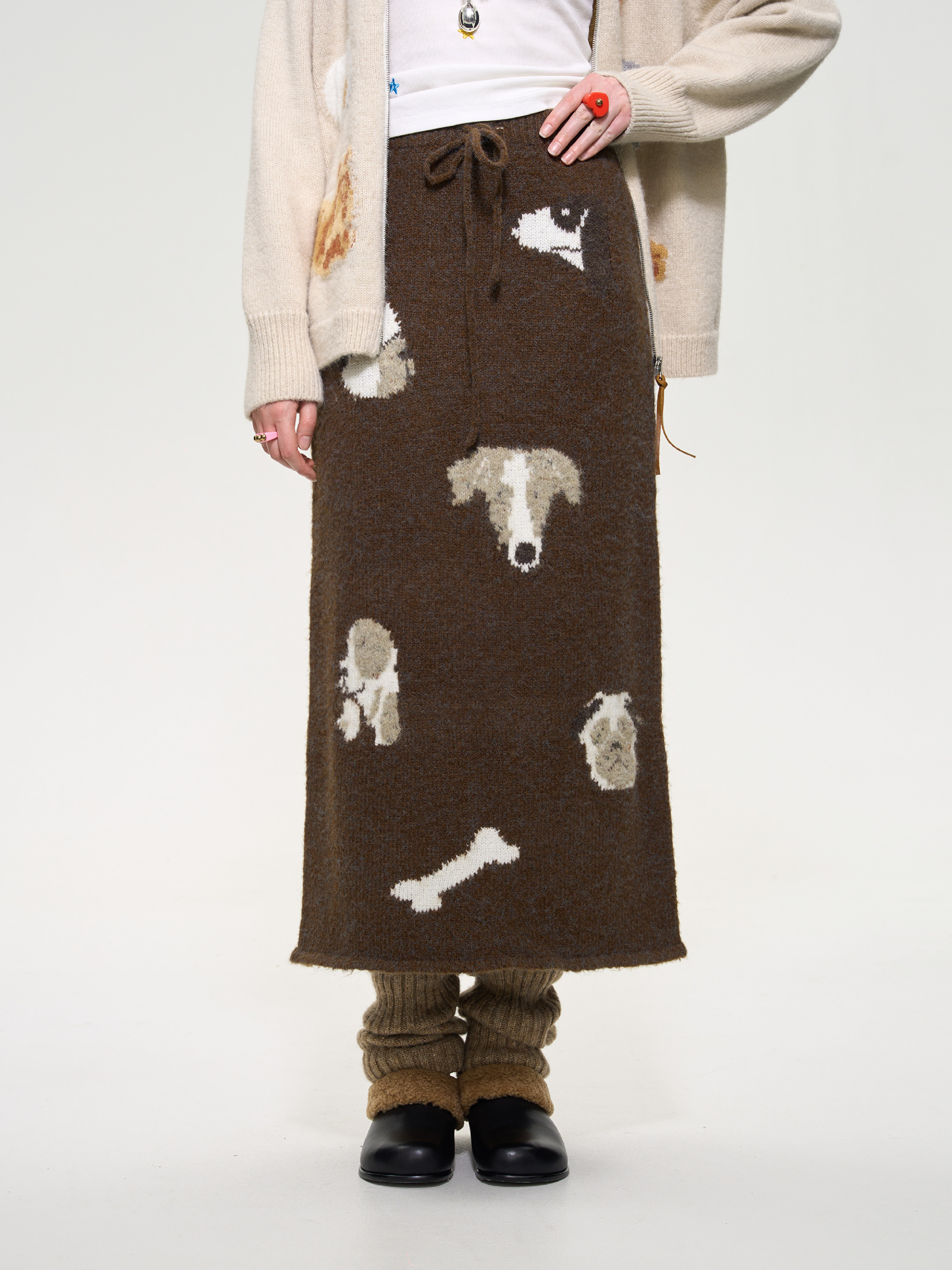 local tag/It24awk39/小狗的派对提花针织半身裙软糯中长裙