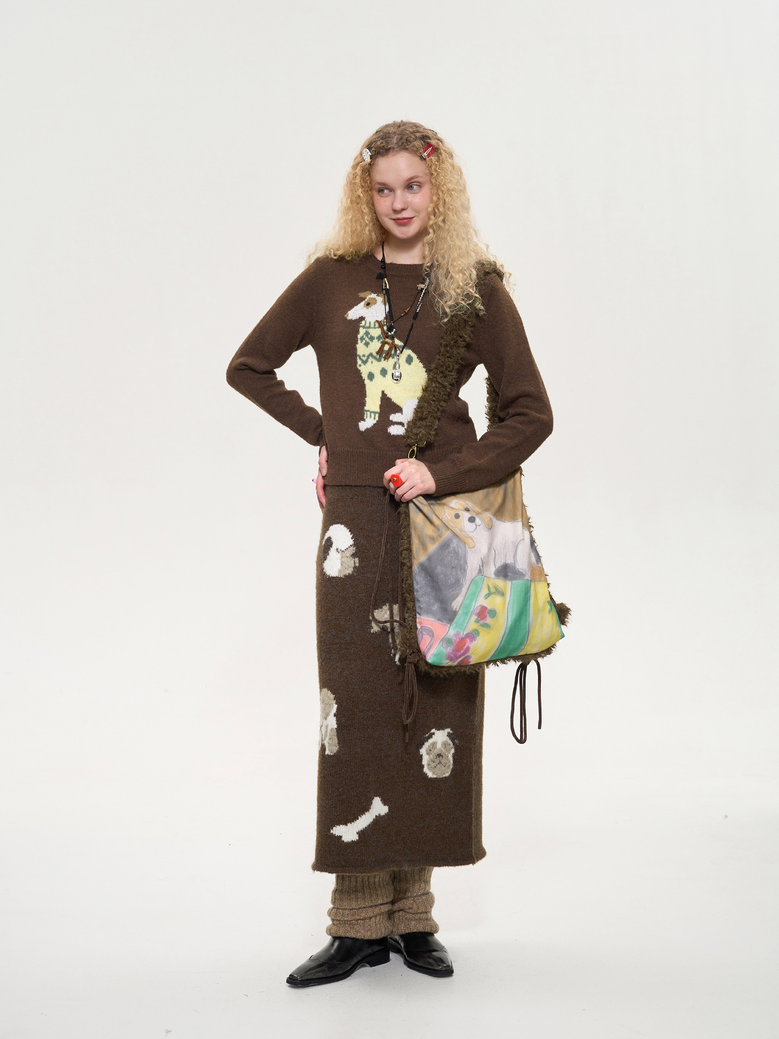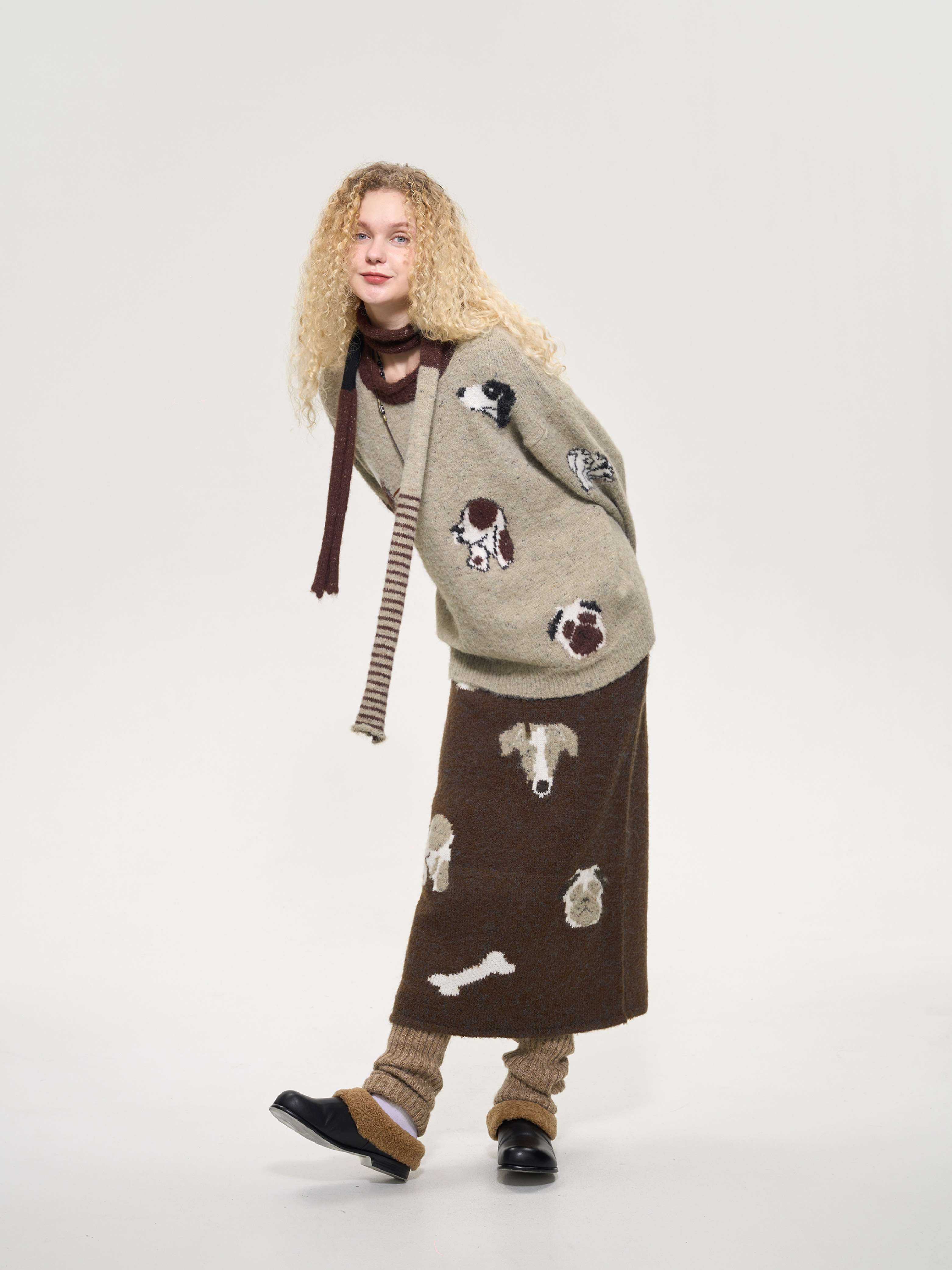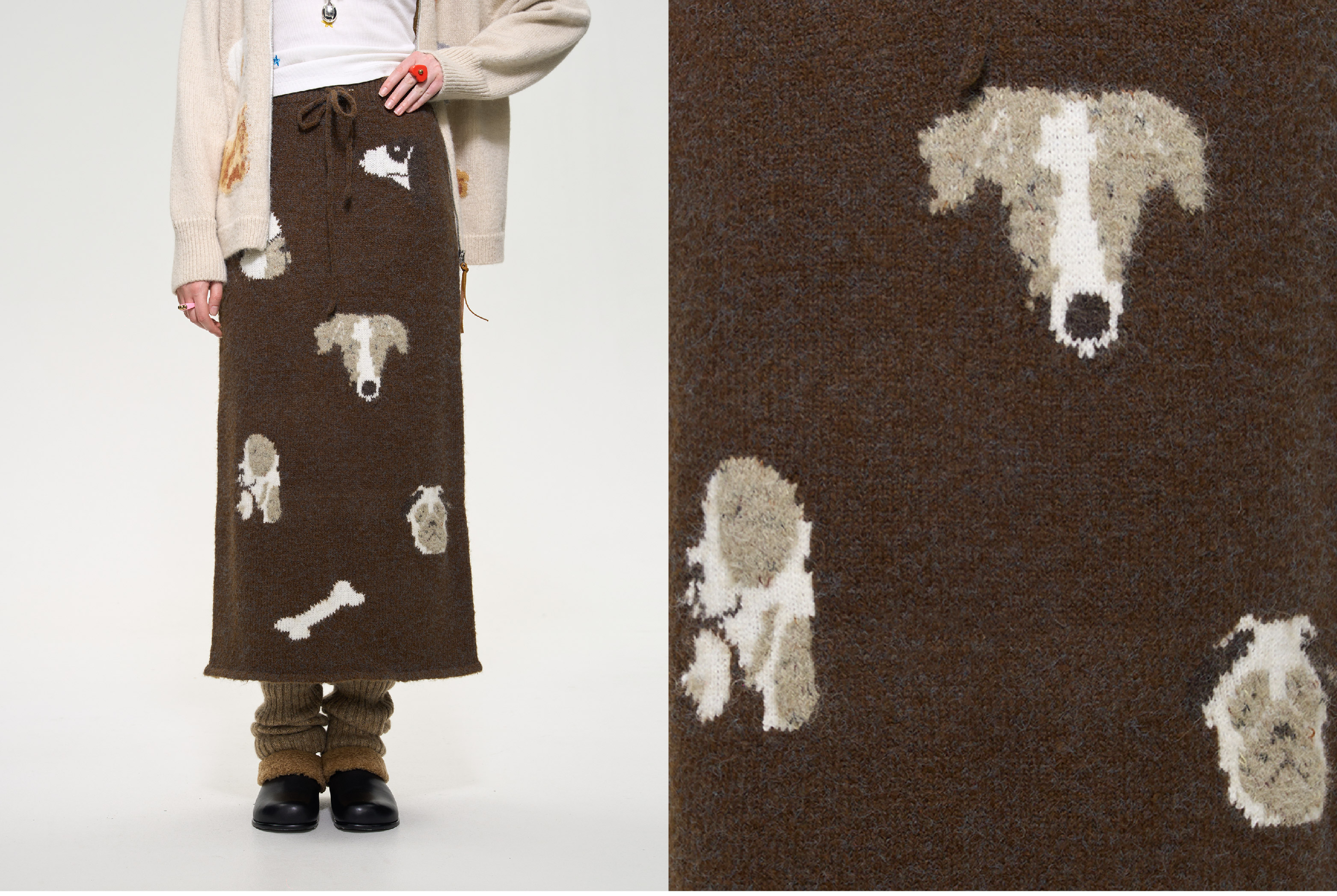 local tag/It24awk39/小狗的派对提花针织半身裙软糯中长裙