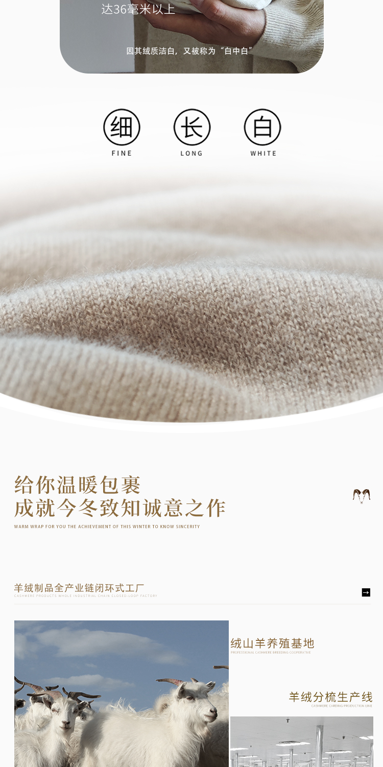 东黎羊绒是赤峰东荣集团自主品牌,自有牧场/羊绒制品全产业链优势,实现了羊绒从“牧场”到“商场”的华丽转变。