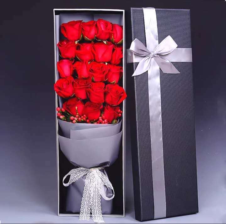 花材: 19支红玫瑰,红豆搭配,50cm礼盒