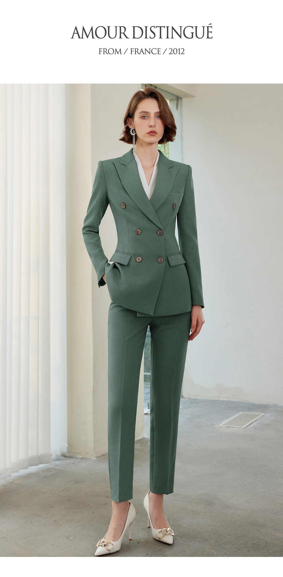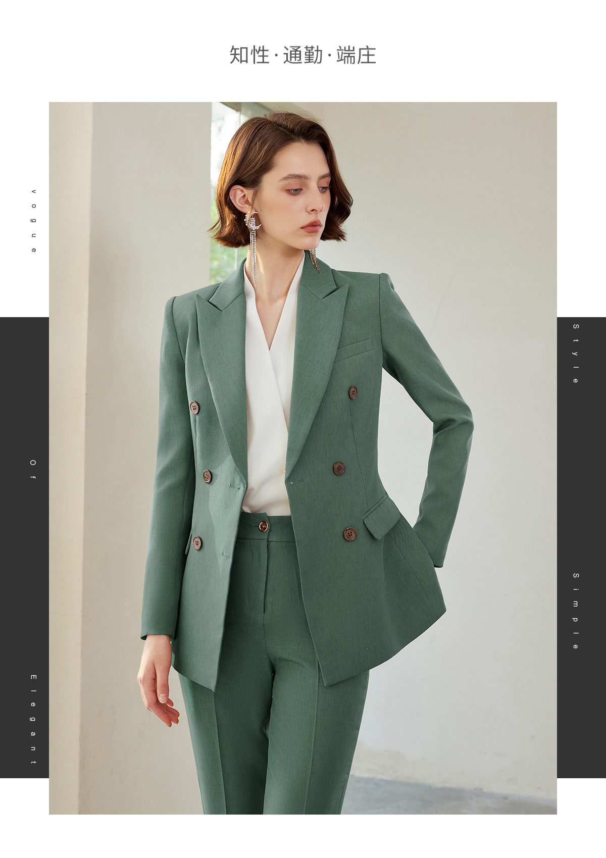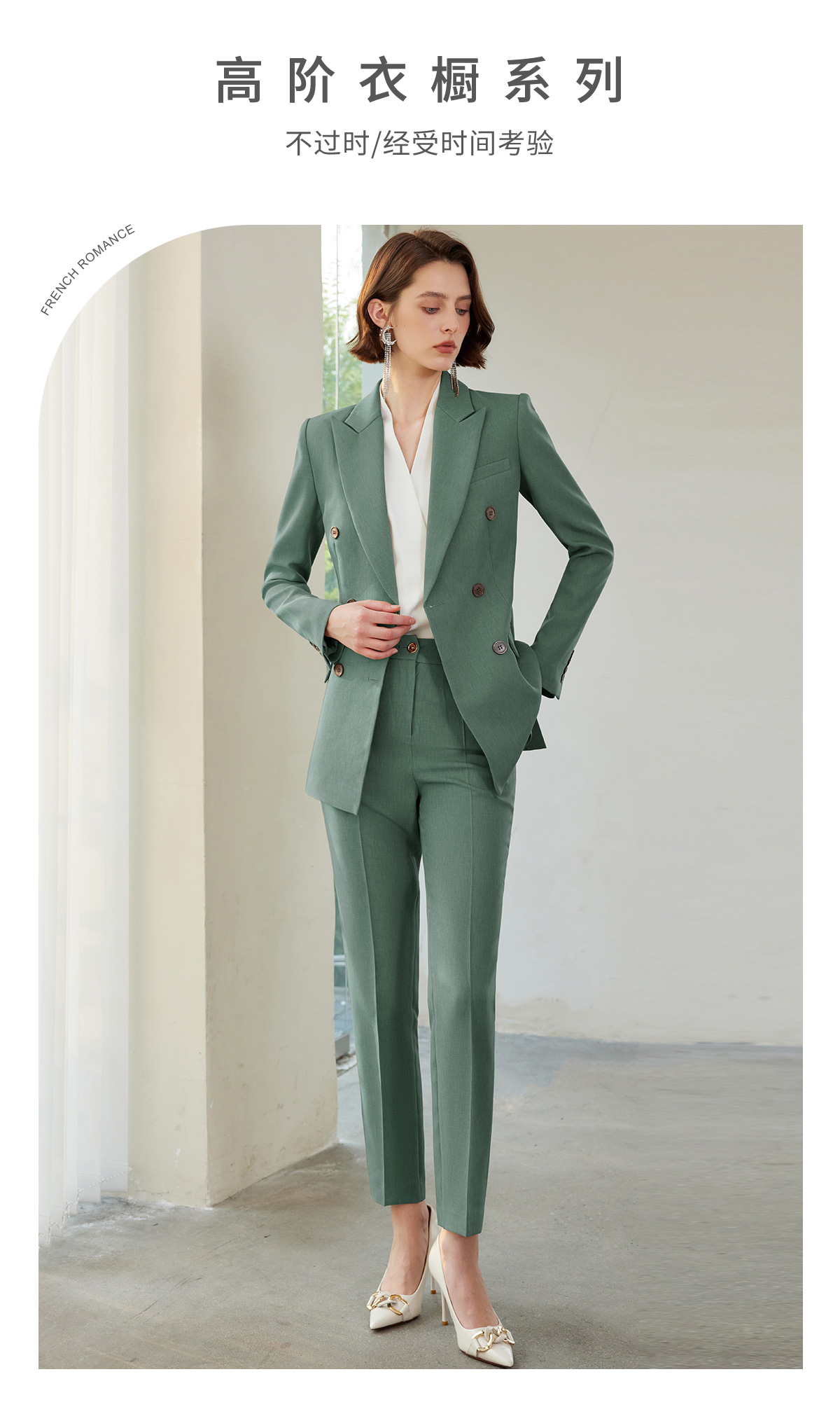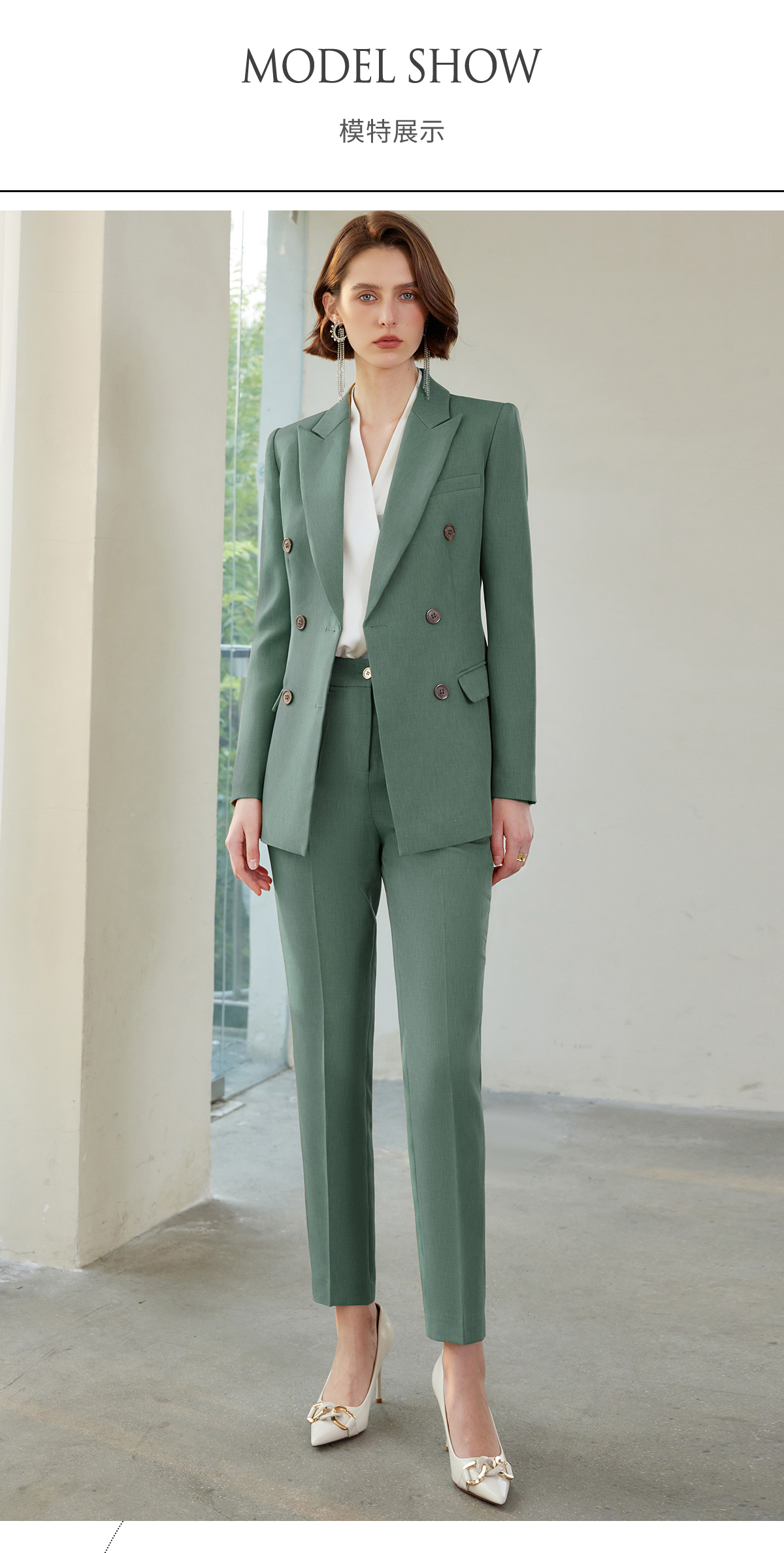 IWY/绿色垫肩西装外套设计感小众高级感西服长袖职业装通勤ol正装CP1522