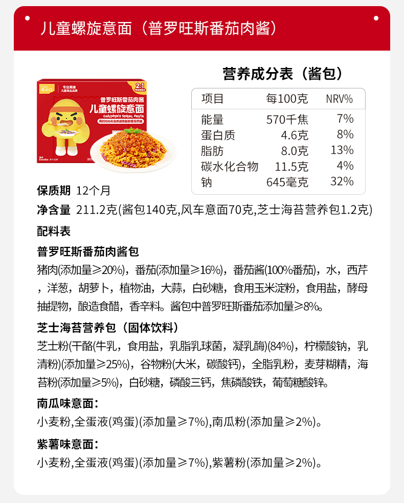 英氏忆小口普罗旺斯番茄肉酱意面【57元任选3件+4件礼品】