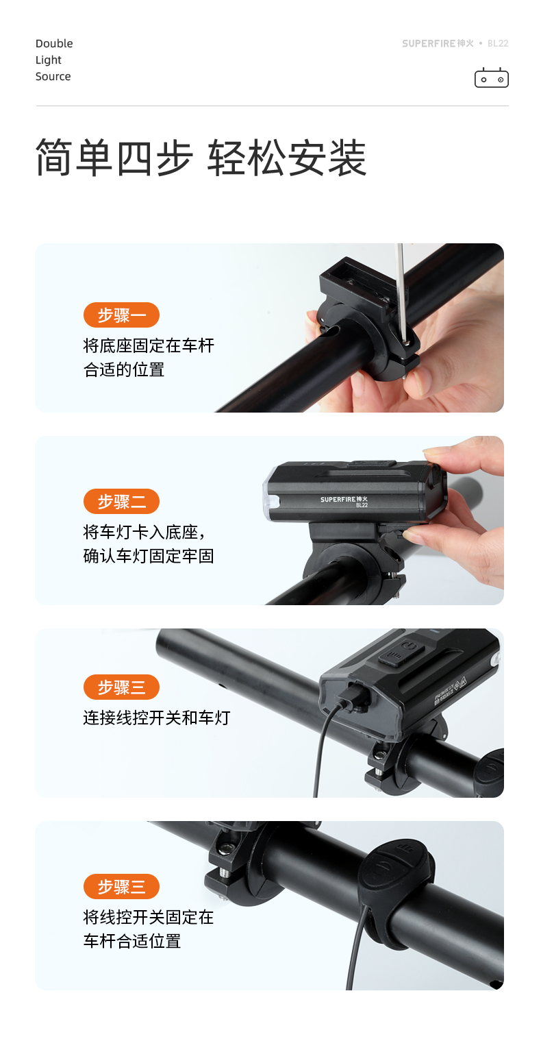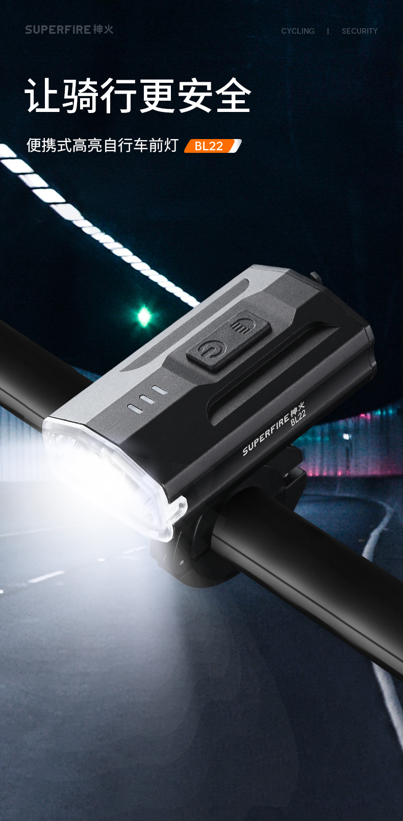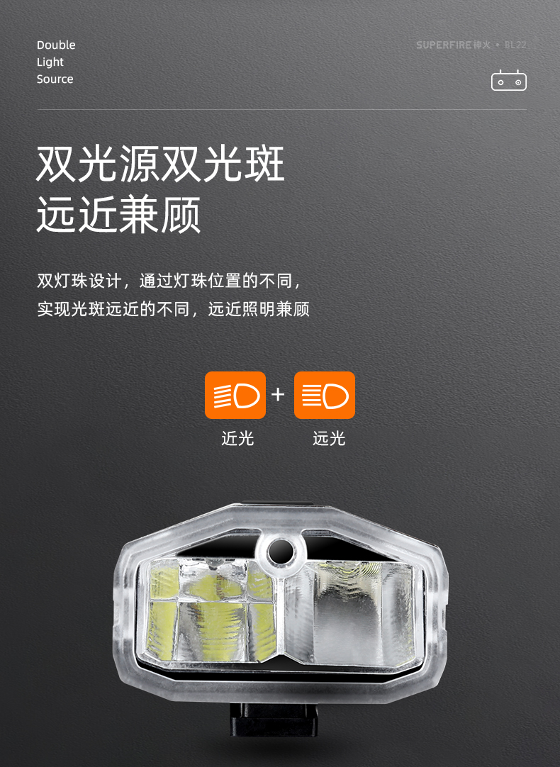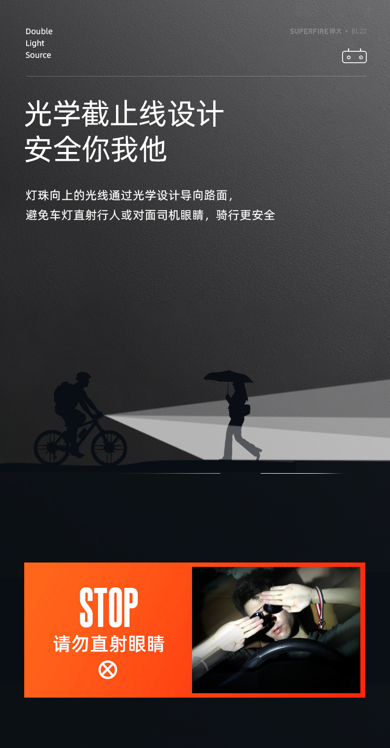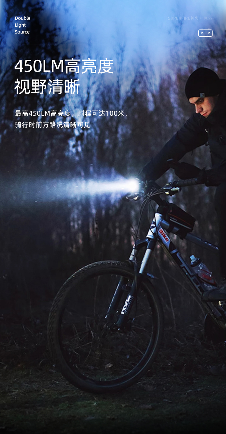 SUPERFIRE神火BL22自行车灯前灯强光远近双光山地公路超亮防水夜骑led灯