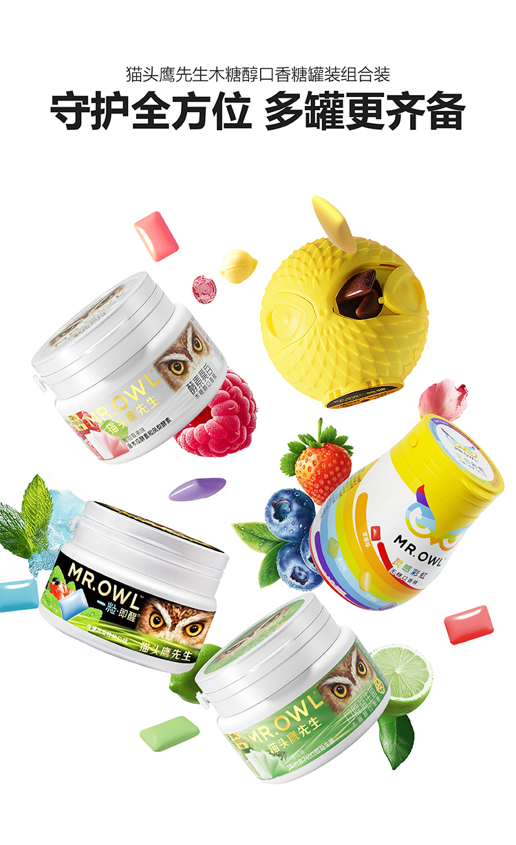 猫头鹰先生无糖口香糖50g 随时随地清新口气 060114/060116/064573 新老包装随机发货