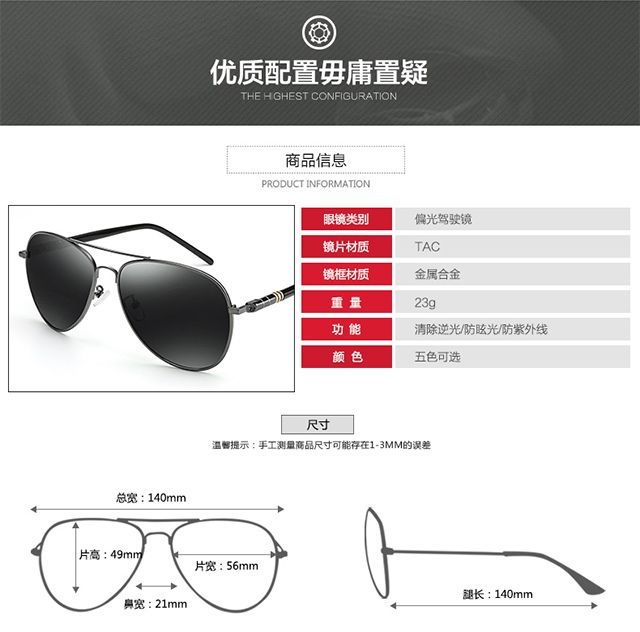 【夏日墨镜】变色偏光太阳镜男日夜两用司机驾驶蛤蟆镜复古墨镜男士休闲眼镜潮