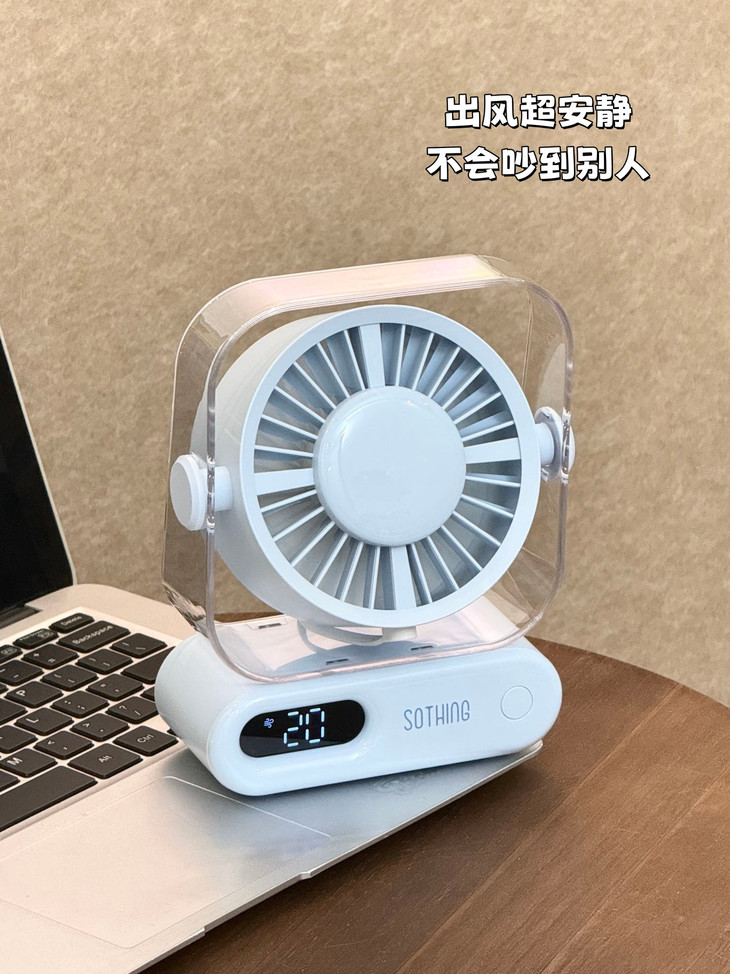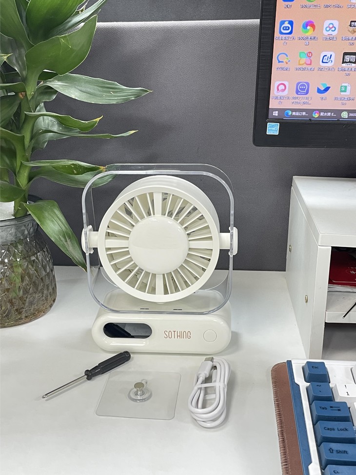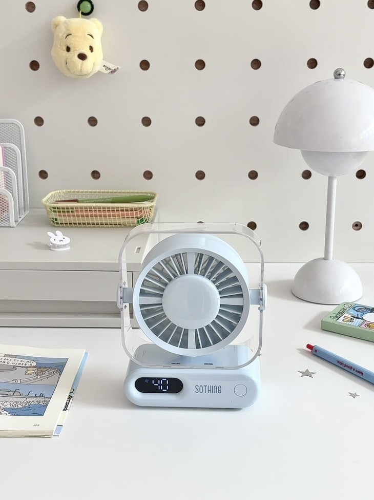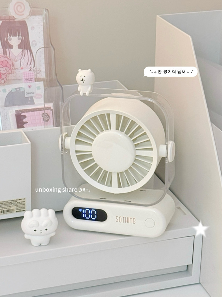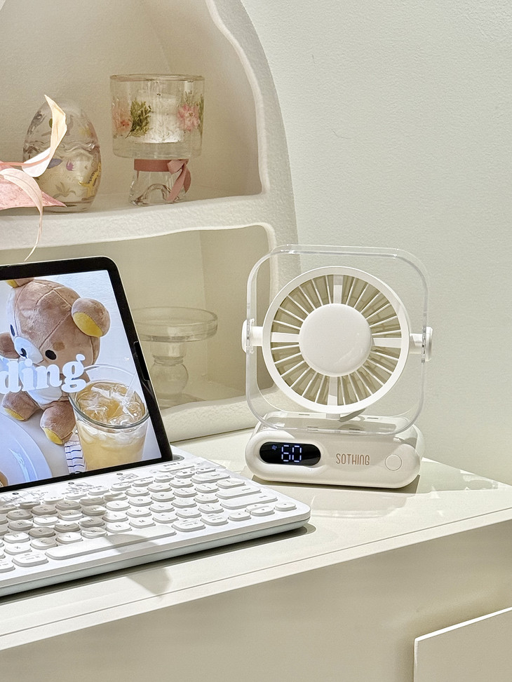 超小占地面积📏 书桌摆满杂物、根本放不下多余的东西, 像这个小风扇就不用担心, 可以往角落一放,小巧精致还不突兀!