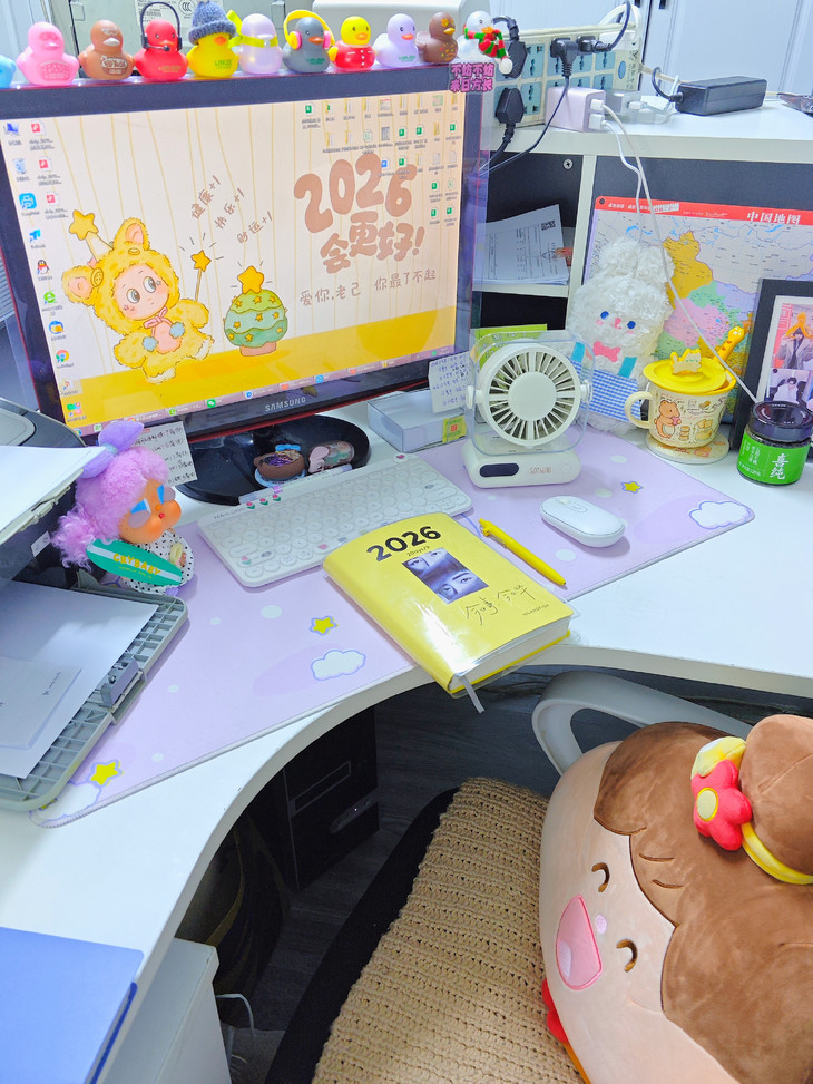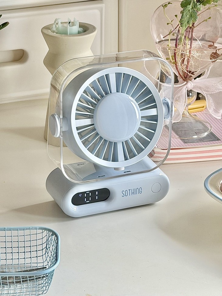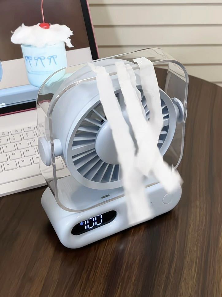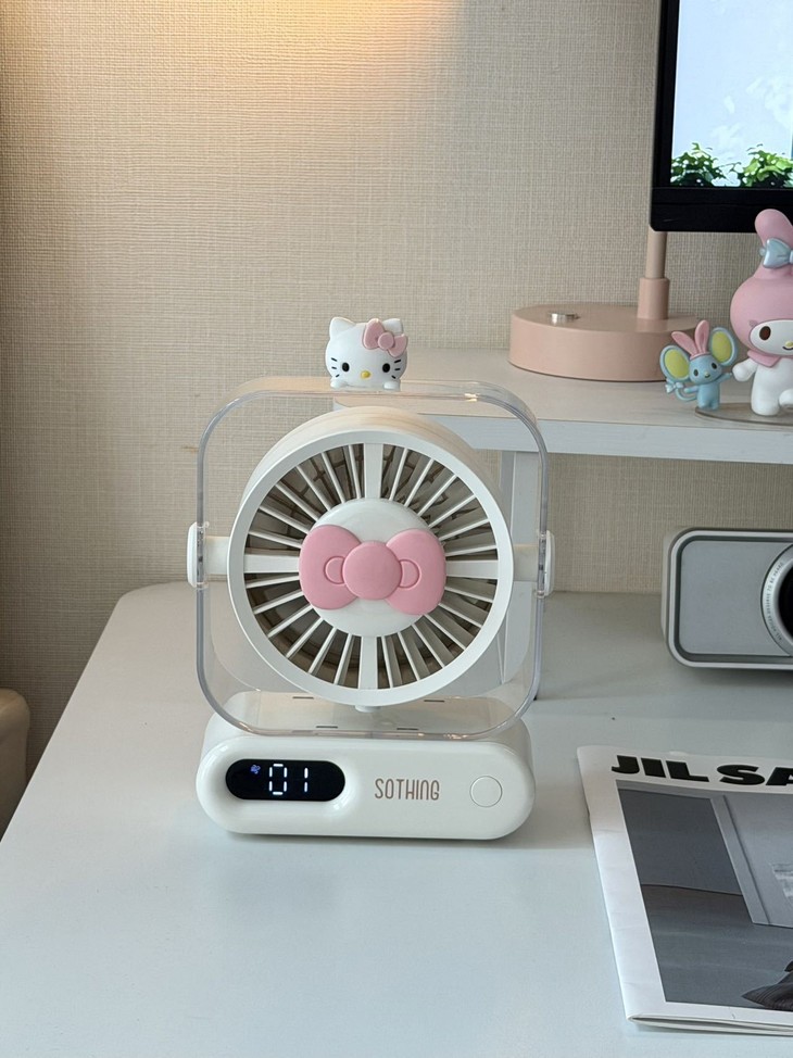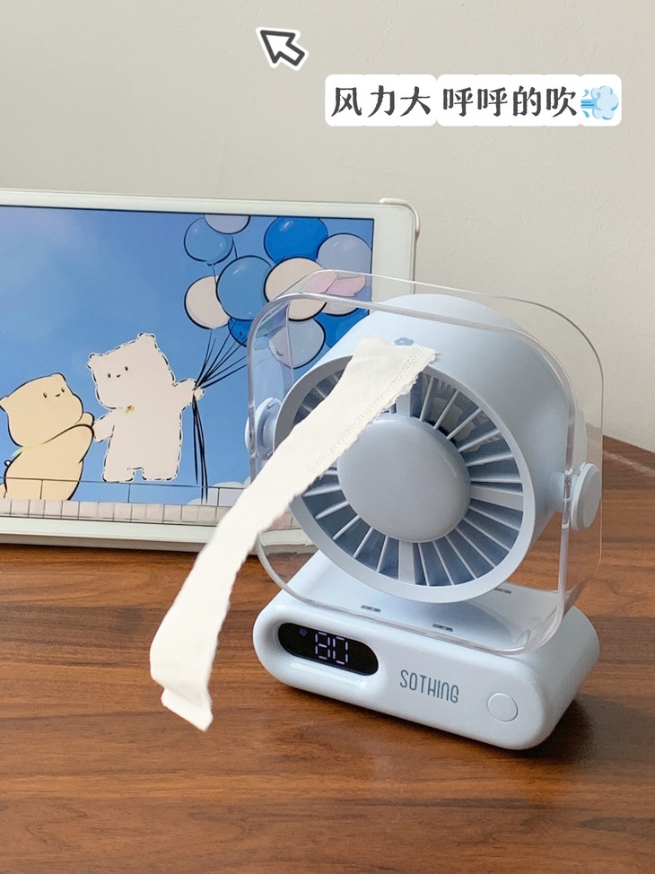 超小占地面积📏 书桌摆满杂物、根本放不下多余的东西, 像这个小风扇就不用担心, 可以往角落一放,小巧精致还不突兀!