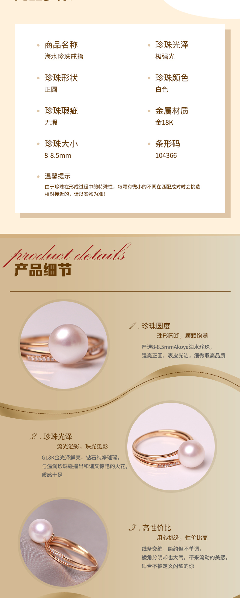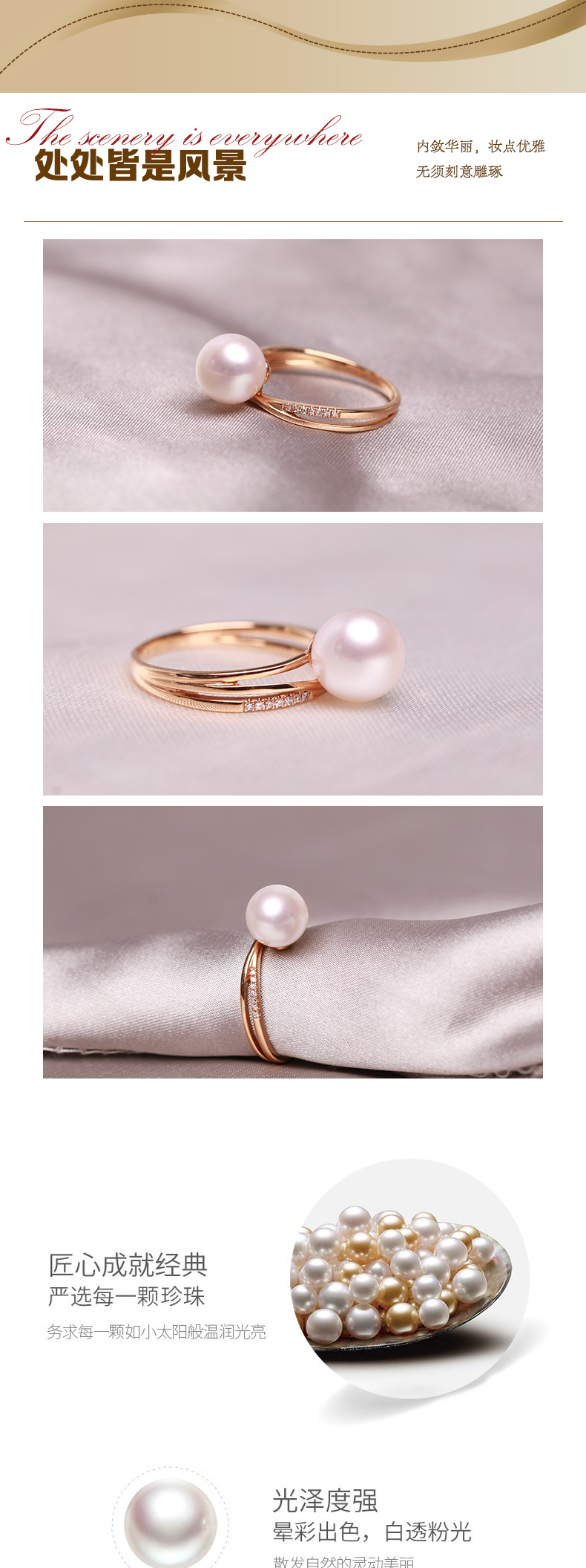 美裕 金18K海水珍珠戒指 8-8.5mm白 无暇 正圆 级强光104366
