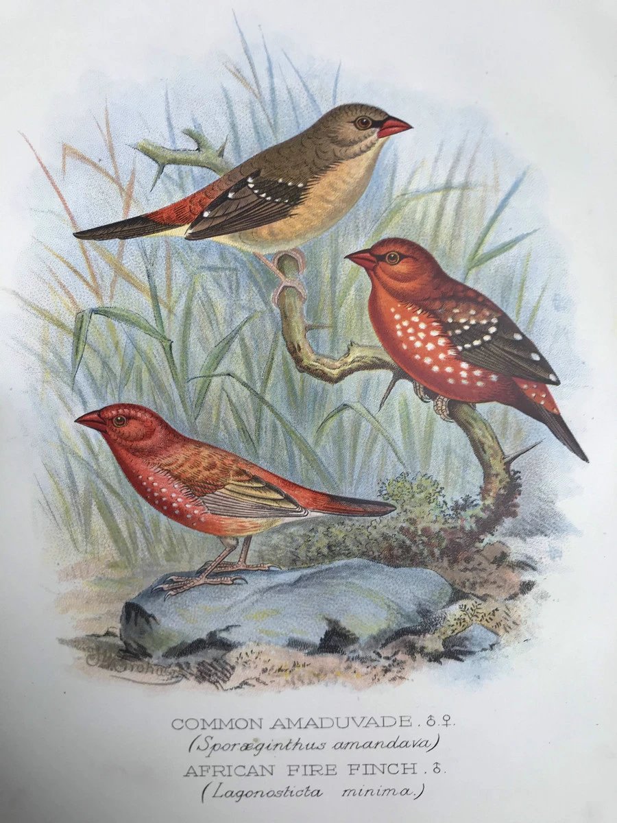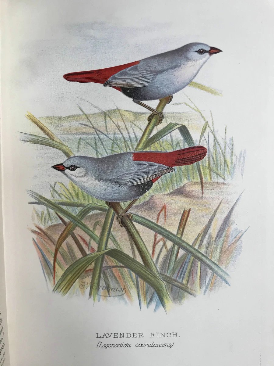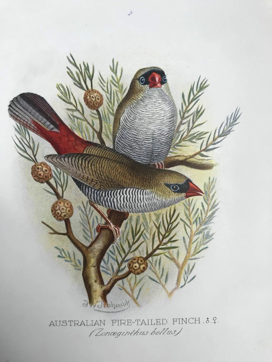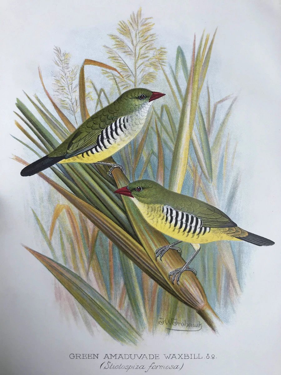 1904年 漂亮外国燕雀图鉴 60幅彩色插图 漆布精装16开