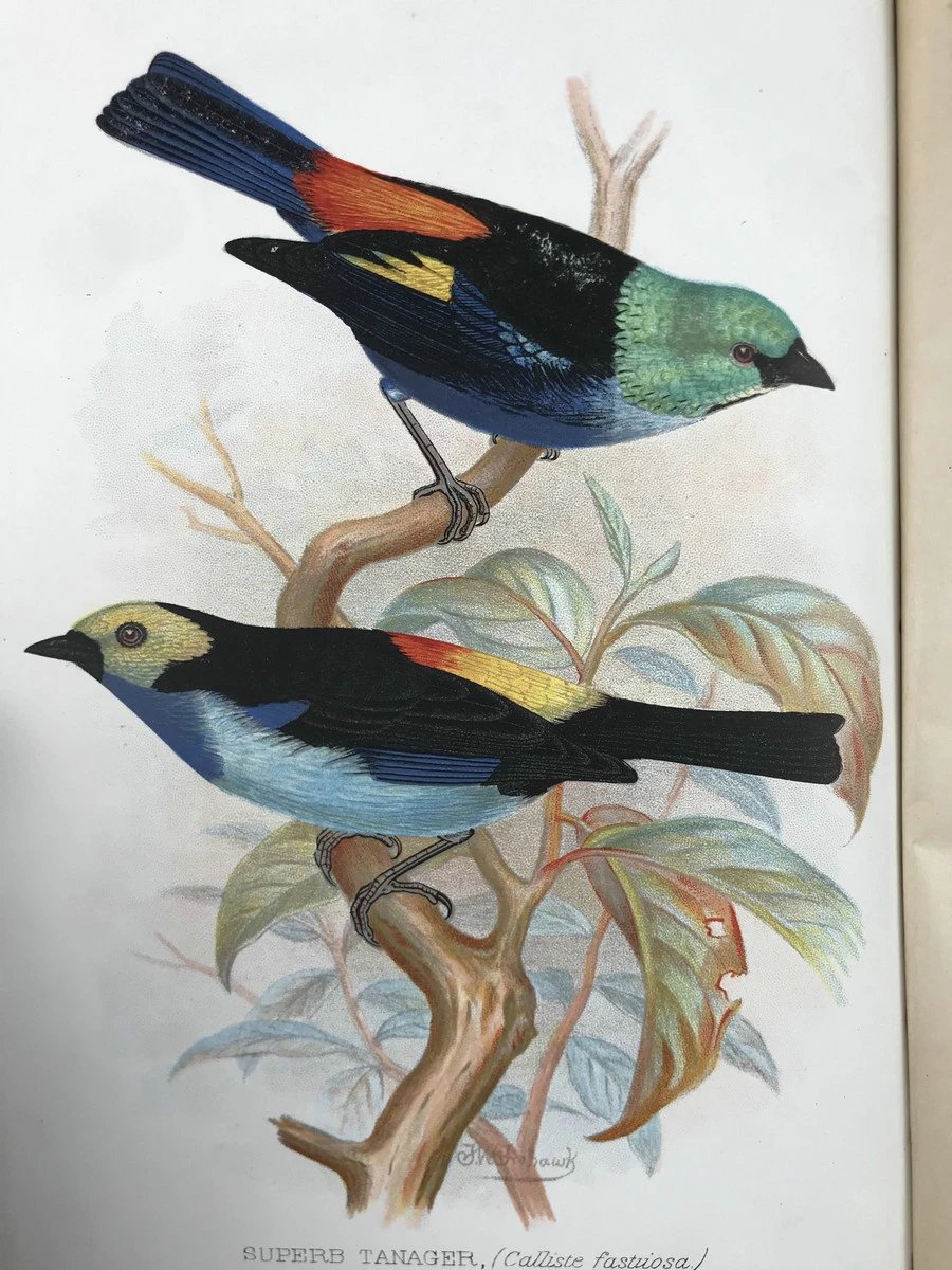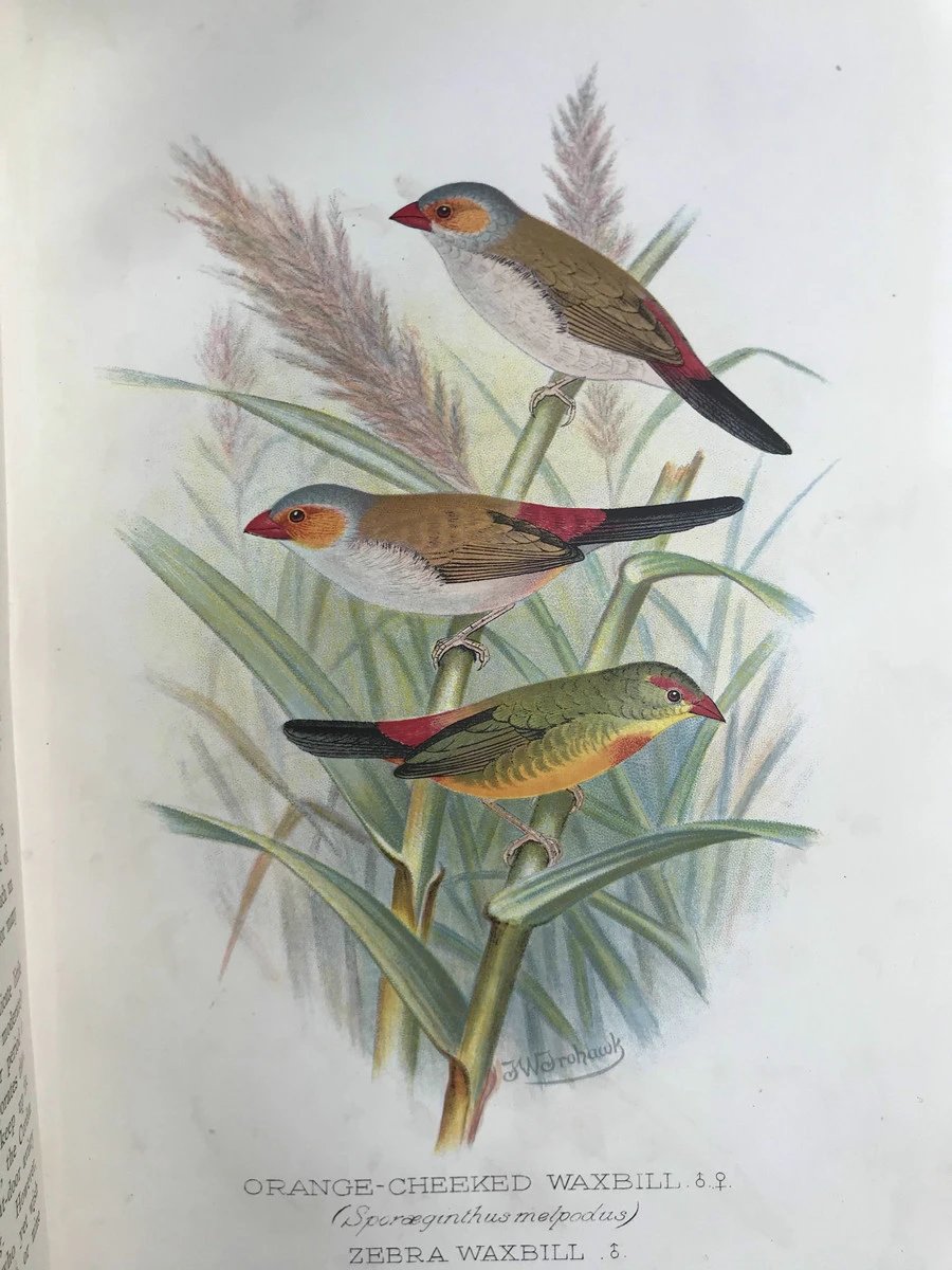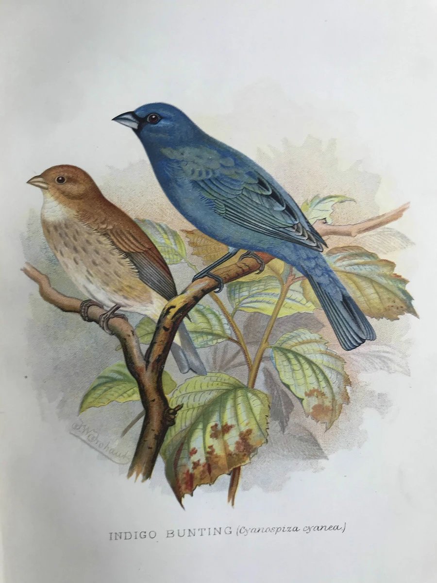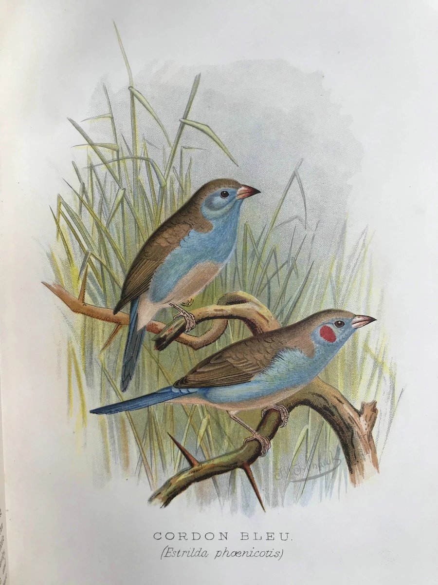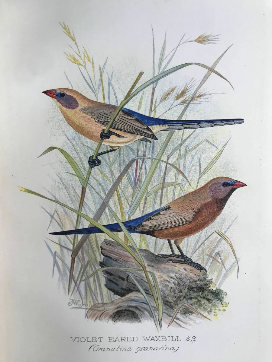 1904年 漂亮外国燕雀图鉴 60幅彩色插图 漆布精装16开