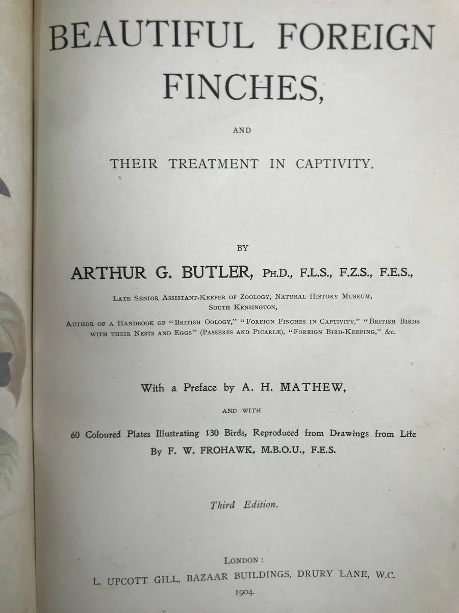 亚瑟·G·巴特勒(Arthur G. Butler)是英国著名的鸟类学家和博物学家,尤其以研究鸟类的分类学和自然历史而闻名。他在鸟类学领域的贡献深刻影响了当时及后来的鸟类学研究。插画家F·W·弗罗霍克(F. W. Frohawk)是一位著名的英国自然历史插画家,以其精细的鸟类插画而闻名。他的作品不仅在细节上表现出极高的精准度,还能够生动地捕捉鸟类的形态和羽毛特征。弗罗霍克的插图为本书增添了极大的艺术价值,使读者不仅能通过文字了解鸟类的习性,还能通过插图更加直观地欣赏到这些鸟类的美丽。A·H·马修(A. H. Mathew)是本书的序言作者,他也是一位资深的鸟类学者。马修的序言为本书提供了更多的学术背景和历史脉络,帮助读者理解当时鸟类学研究的最新进展。