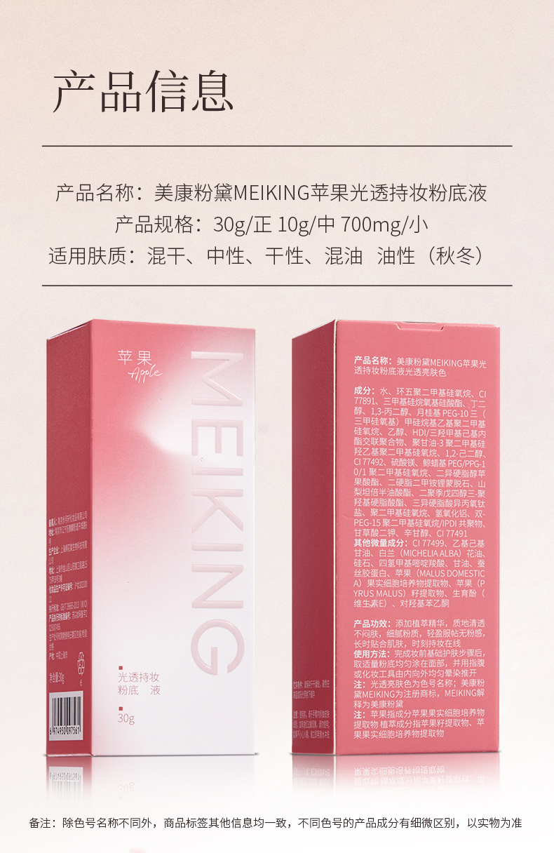 【微商城】【新品上新】美康粉黛 苹果水光瓶粉底液