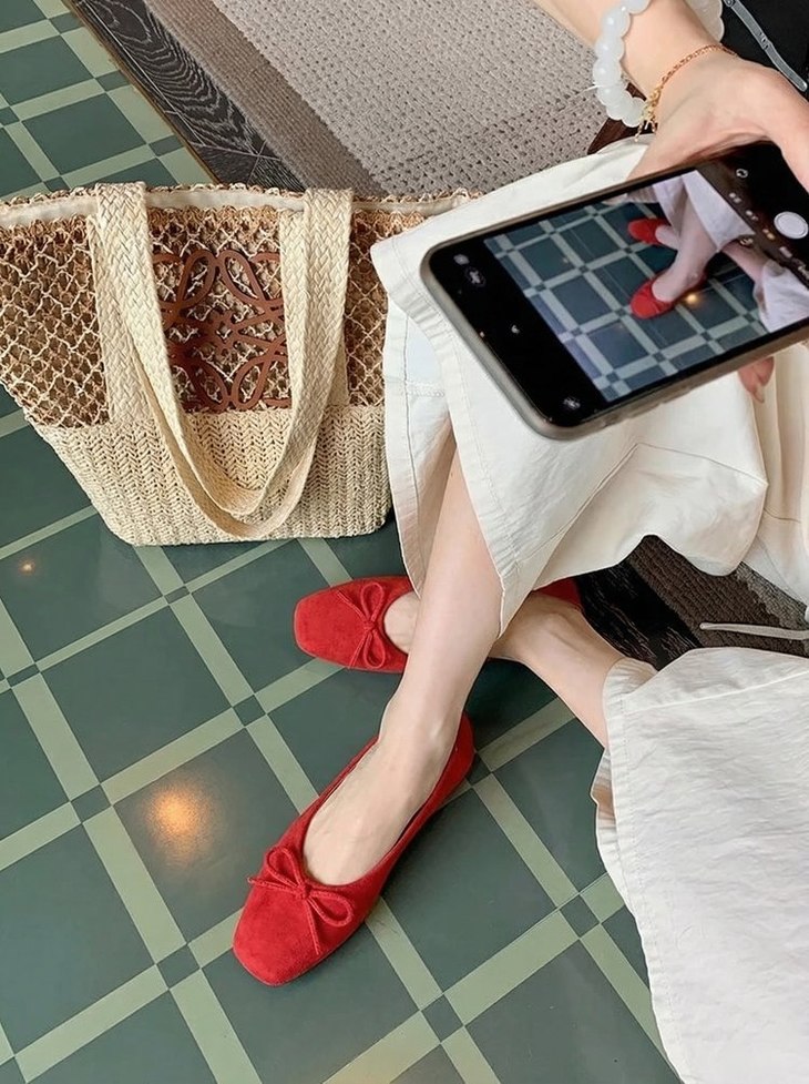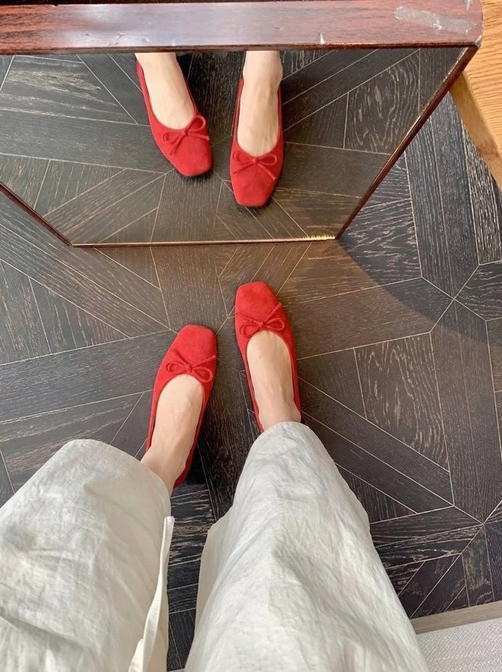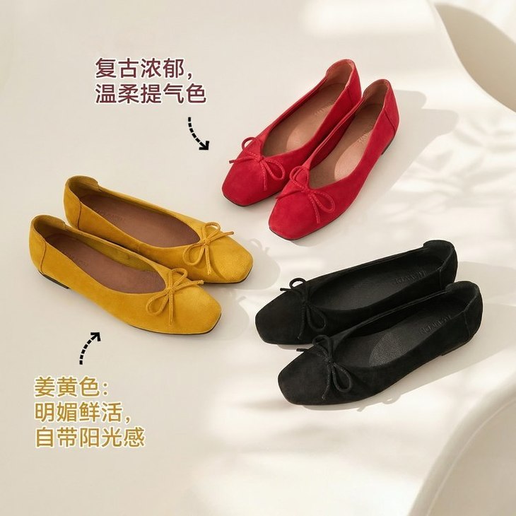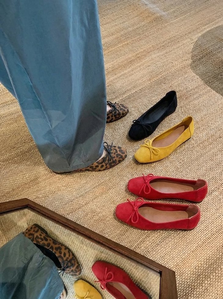 💡作为女鞋从业者 对鞋子的舒适度要求真的很苛刻 这款芭蕾鞋直接踩在我的心巴上❗❗ ✅ 绒面面料细腻有光泽 蝴蝶结点缀温柔又减龄 ✅ 超软鞋底 弯折无压力 久站发货也不累脚 ✅ 四色可选 从日常通勤到周末出游全覆盖 🟤豹纹款上脚意外洋气🟠红色款更是新年 / 约会氛围感担当❗❗ 不用纠结尺码 标准鞋楦 宽脚姐妹也能轻松驾驭~ #软底单鞋 #麂皮女鞋 #芭蕾鞋 #神仙鞋子 #女鞋种草