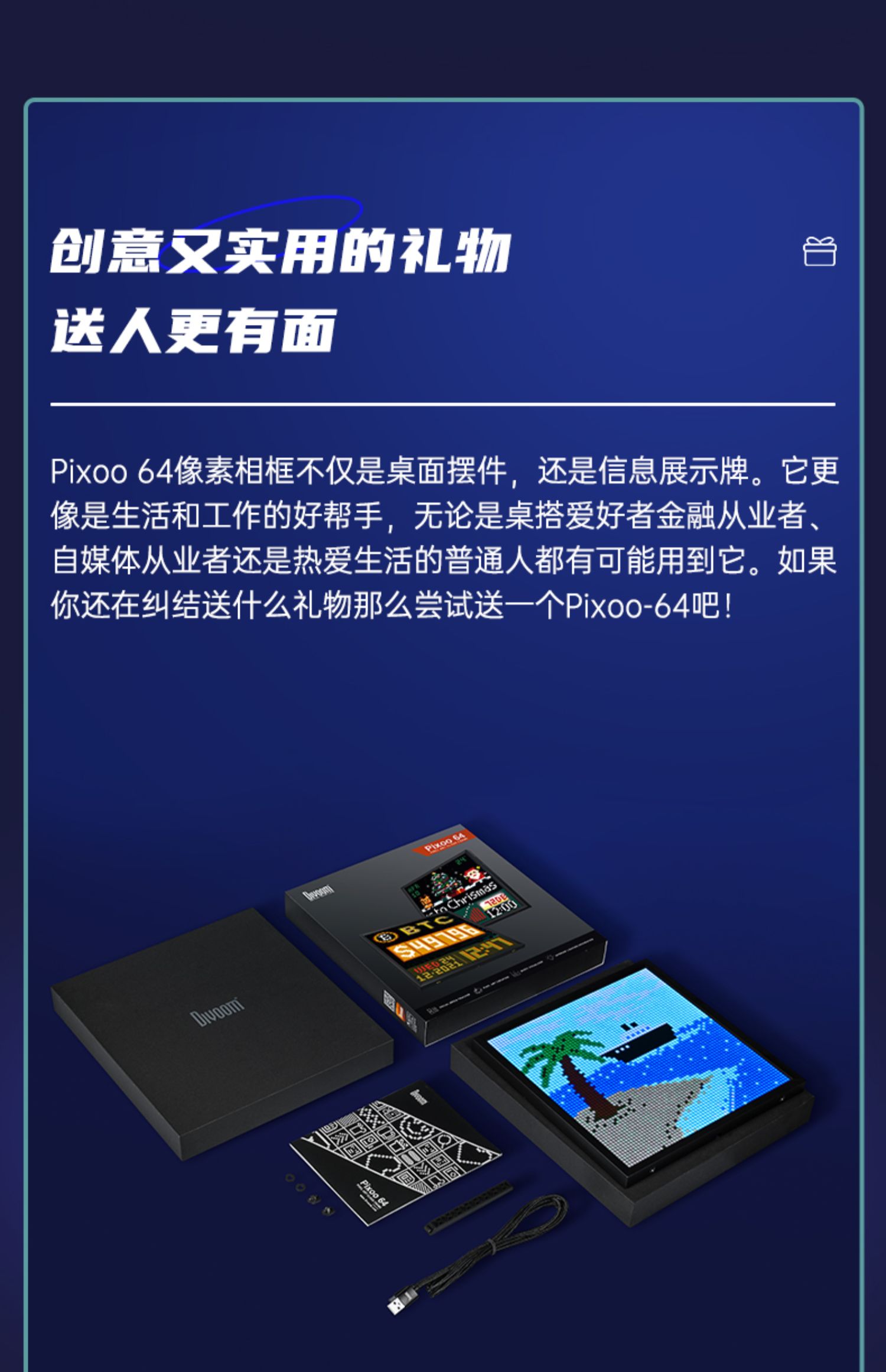 DivoomPixoo64|LED数码屏摆件黑科技像素屏异地恋神器送男朋友