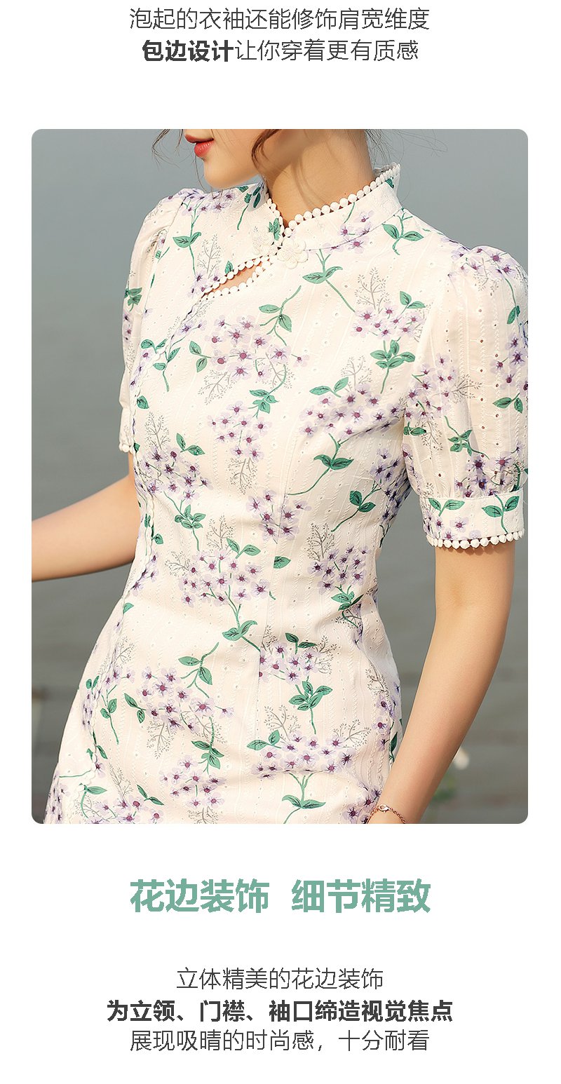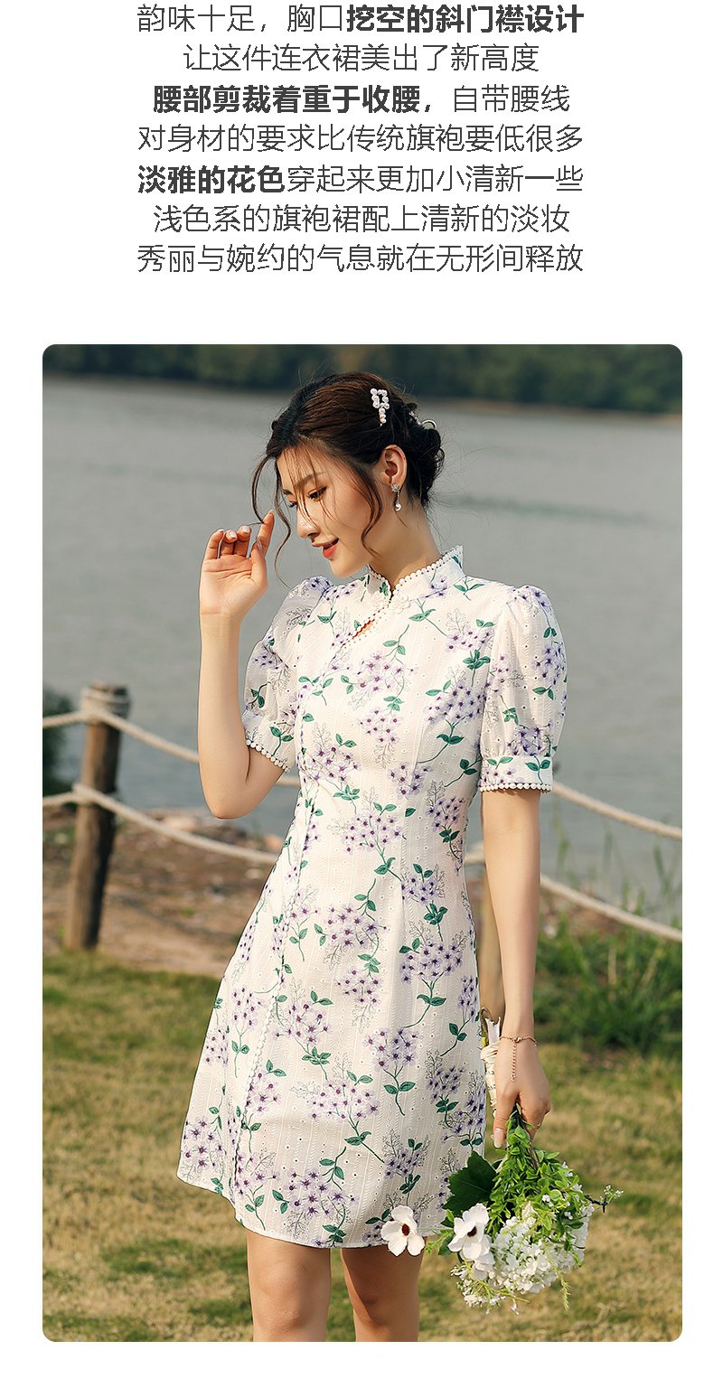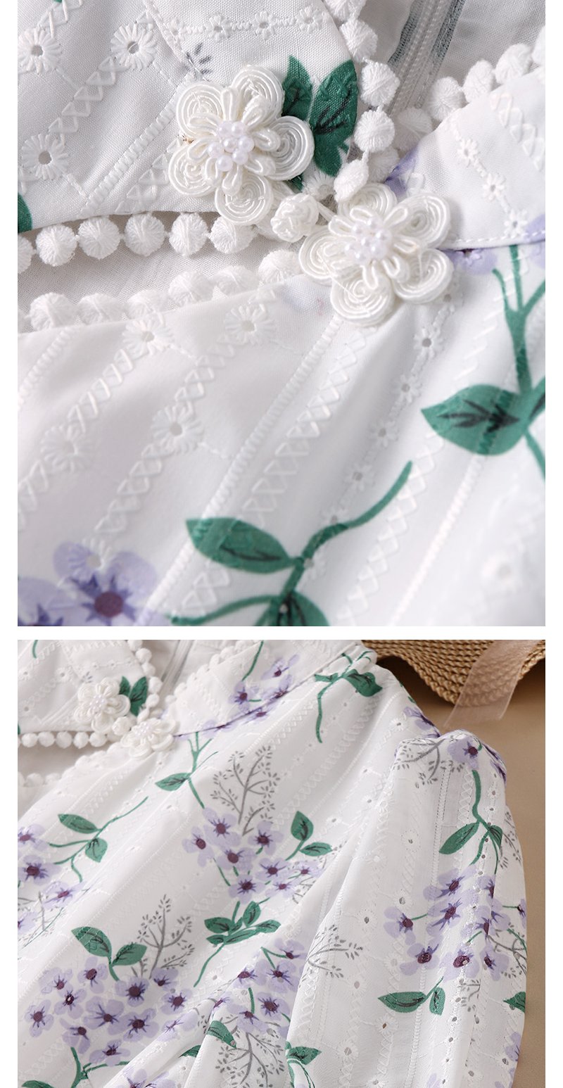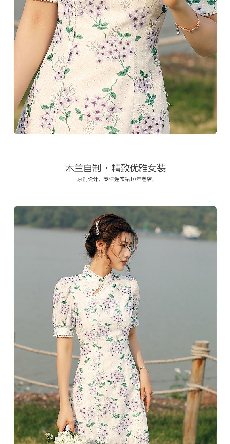 勿忘花白色旗袍改良连衣裙女夏2024夏季新款气质国风刺绣碎花裙子