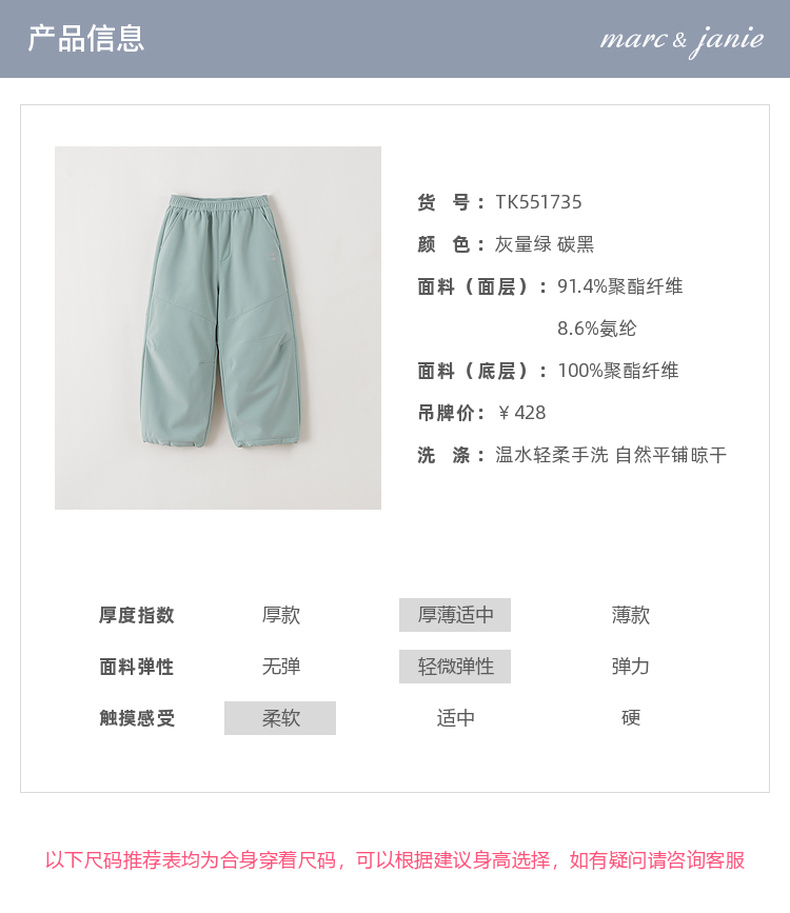 【无氟防泼水】马克珍妮男女童防风耐磨软壳伞兵裤2025年冬装新款551735