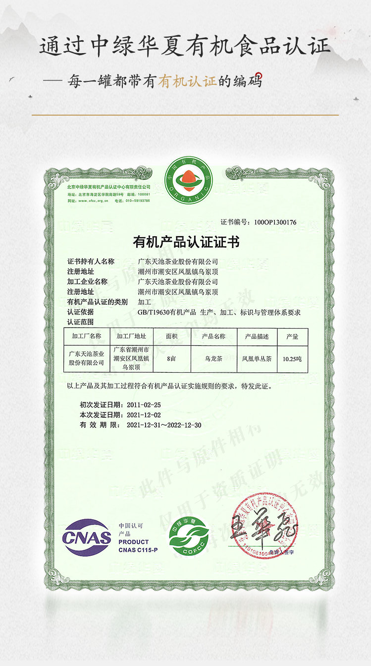 天池茶业 老枞蜜兰香 凤凰单枞茶 100克