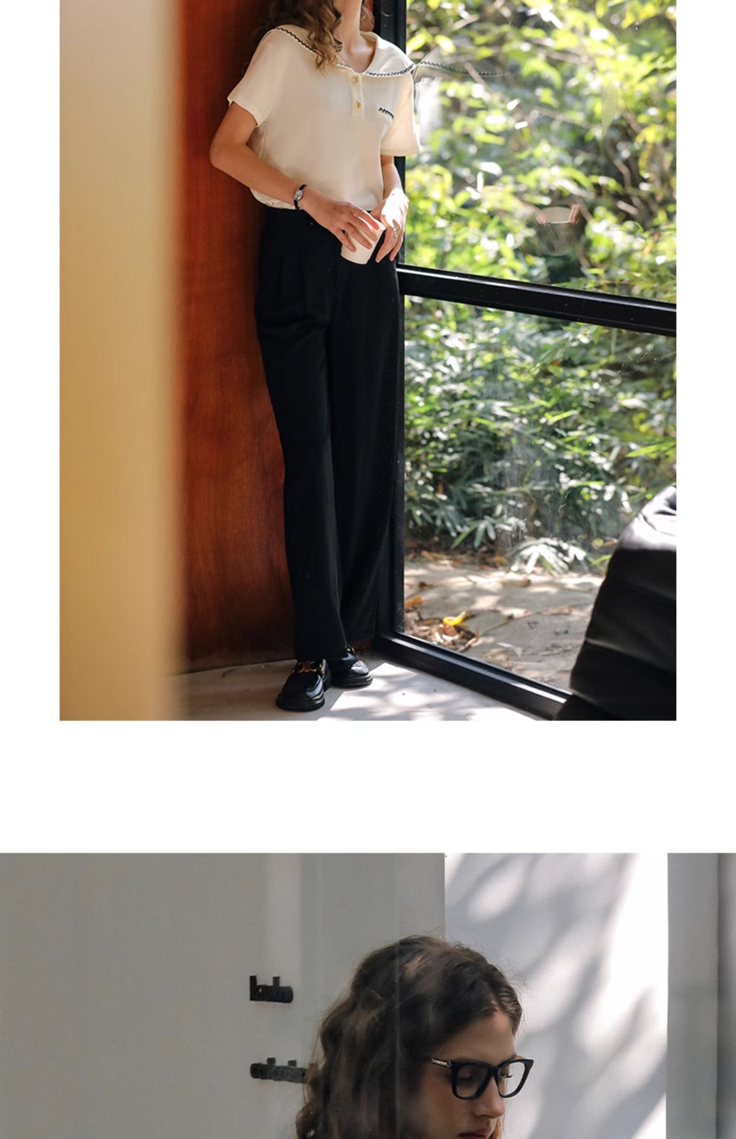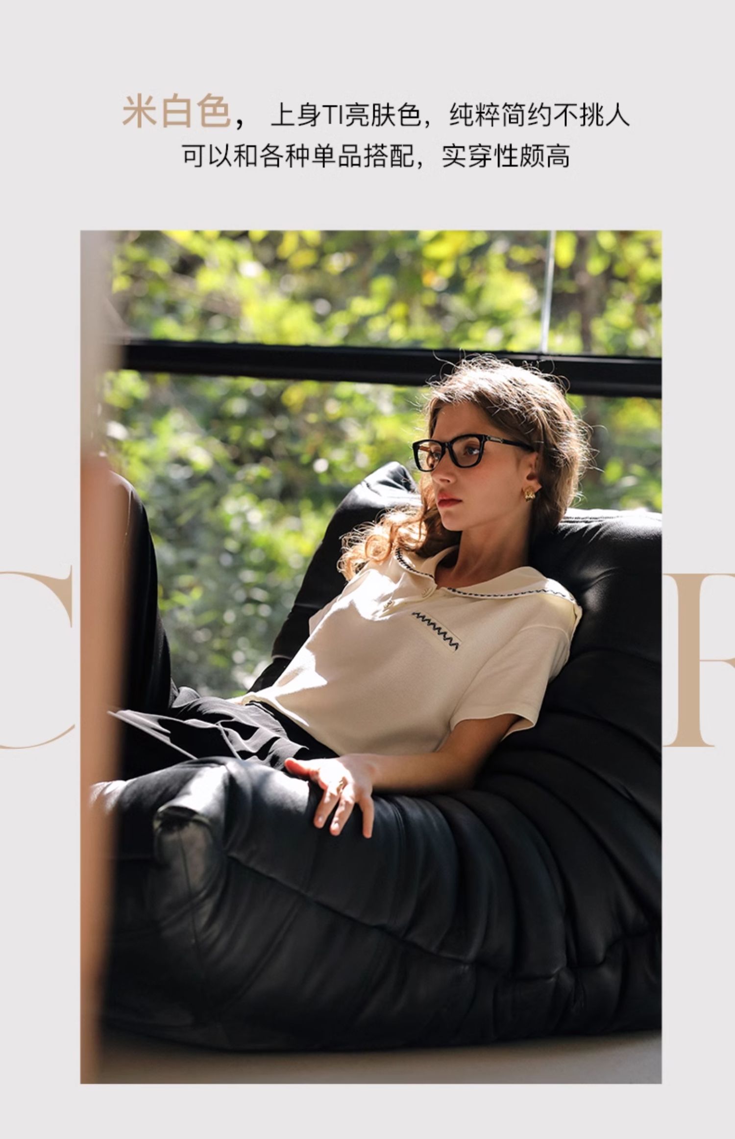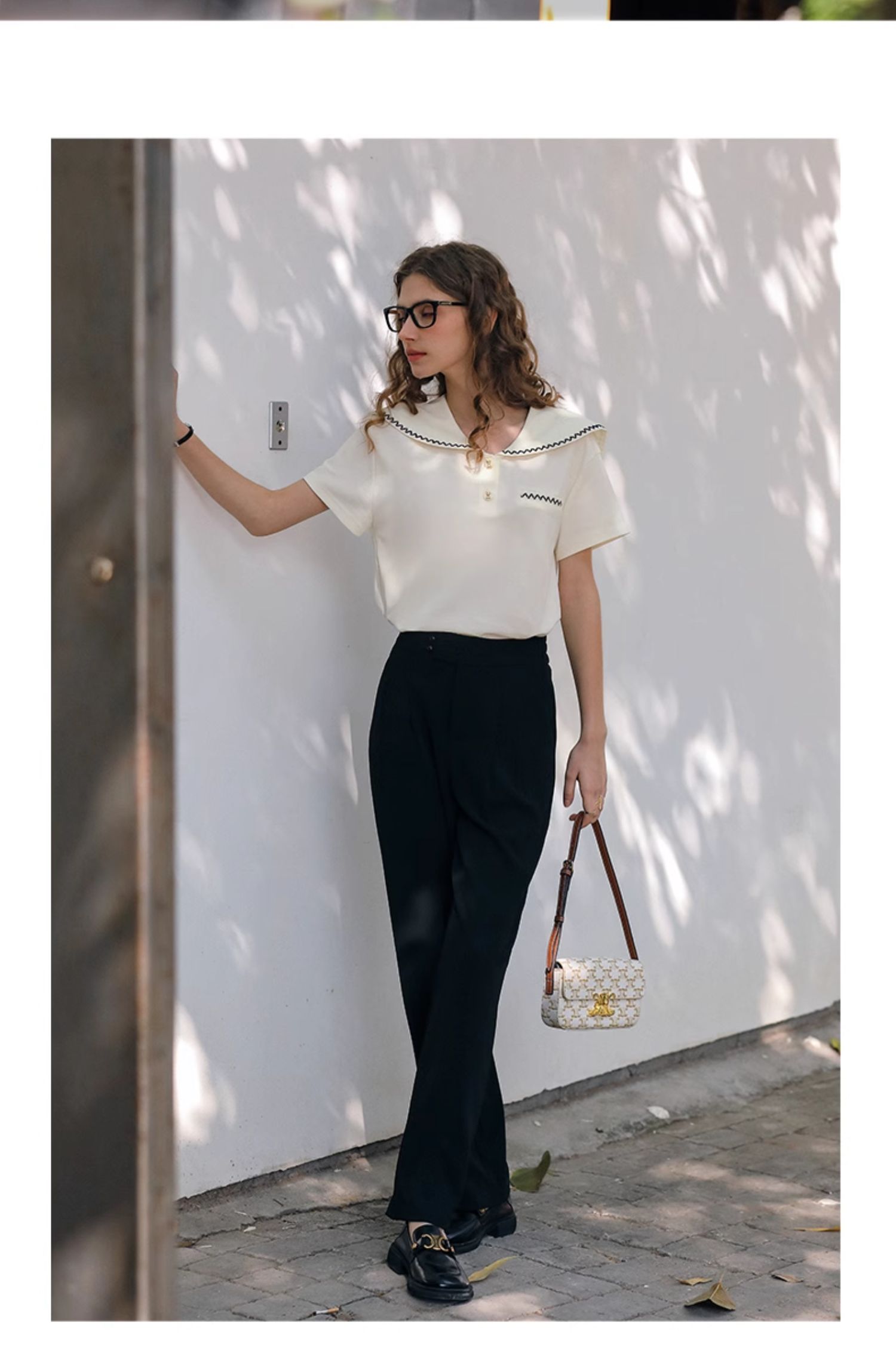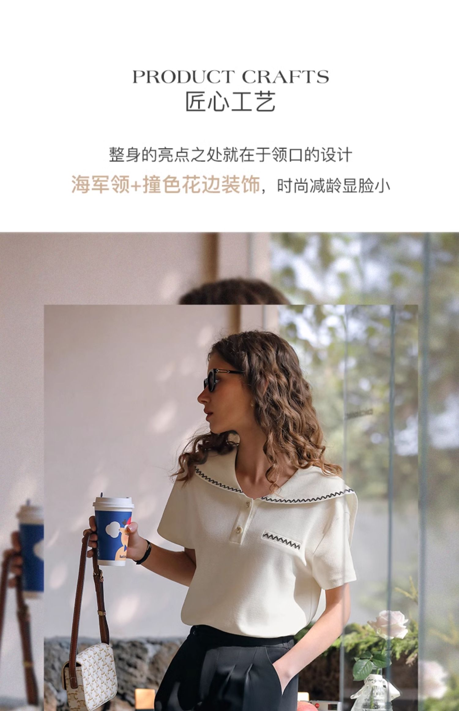 OLrain欧芮儿米白色T恤女夏季2024新款小个子时尚海军领短袖上衣