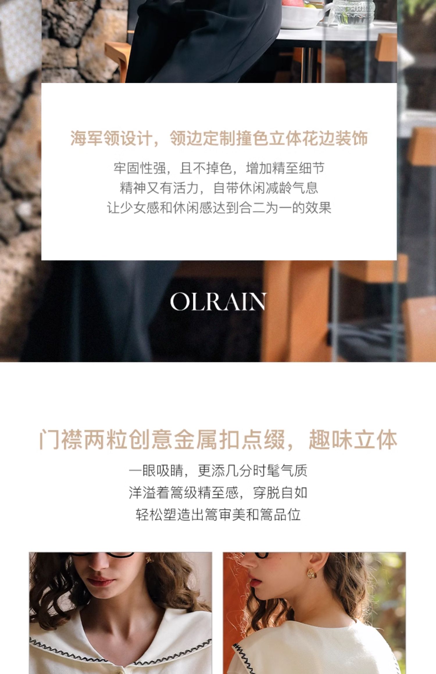 - “精致”是欧芮儿olrain品牌文化的核心,欧芮儿认为,精致的女人,不但要外在动人,更要内在迷人,内外兼修,有魅力、有气质、有内涵,自信而不自傲,优雅而不矫揉,自有万种风情而不轻浮,更不故作矜持。