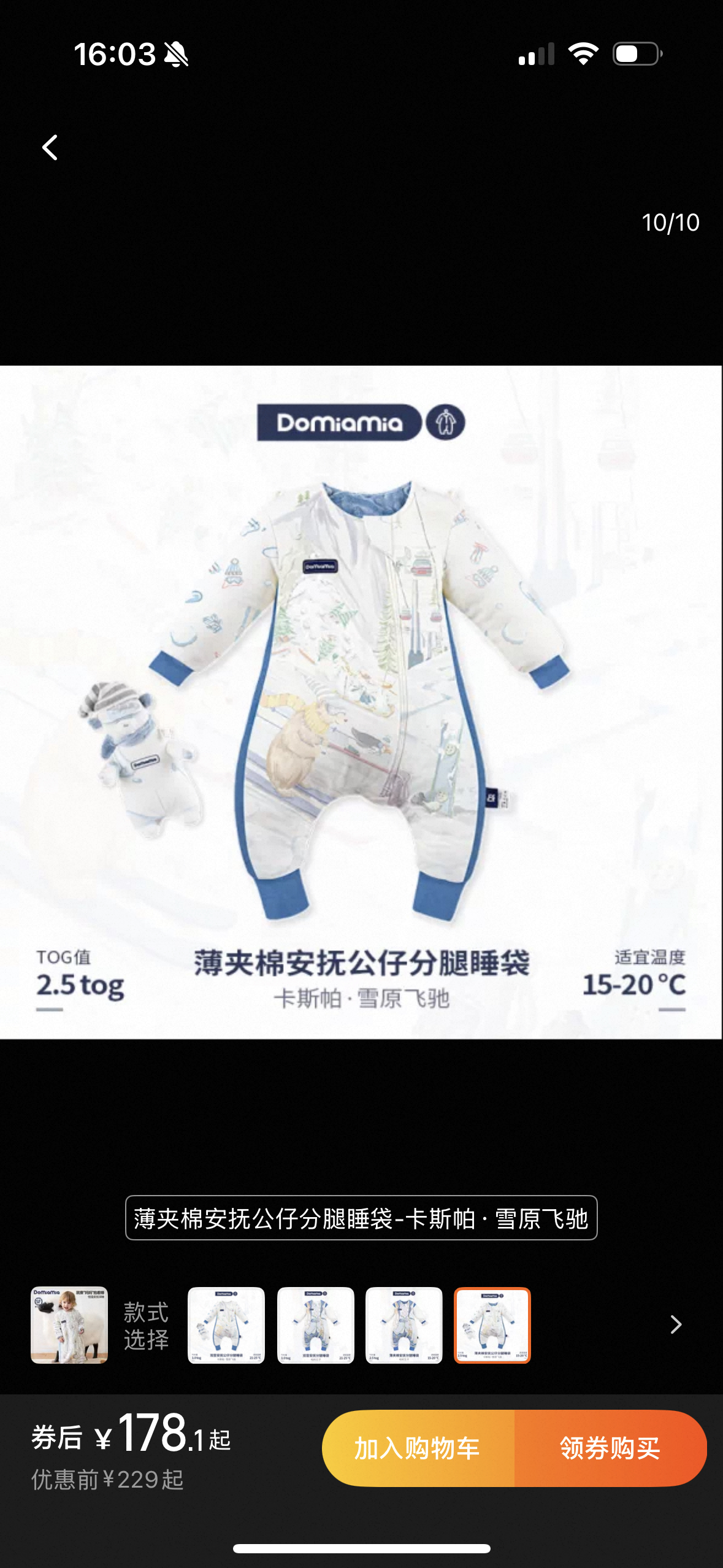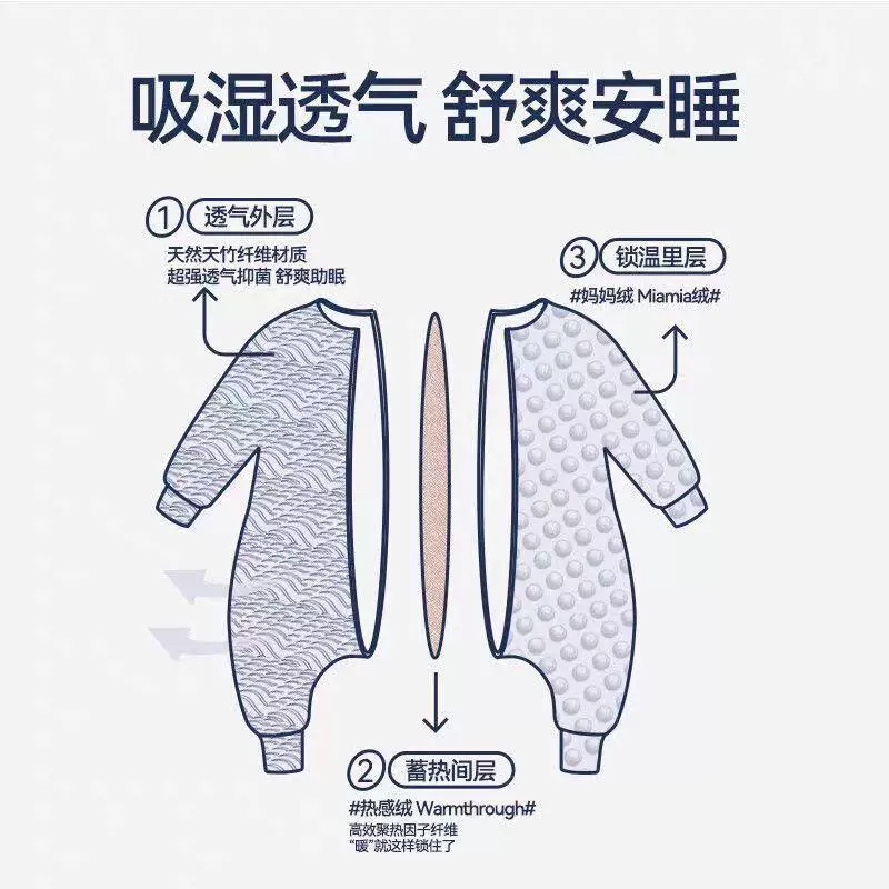 Domiamia 婴幼儿厚夹棉护肚分腿睡袋 适宜8-15 °C