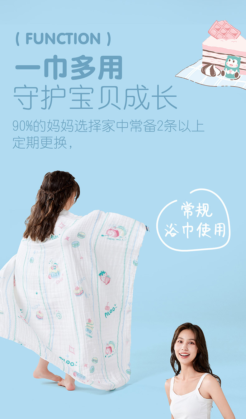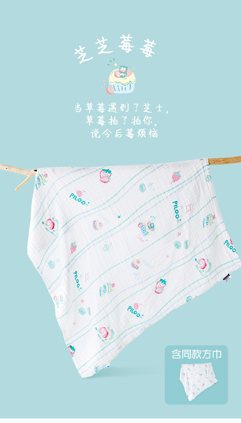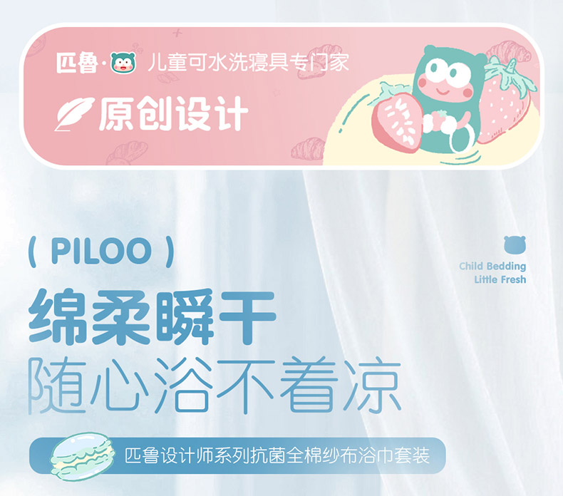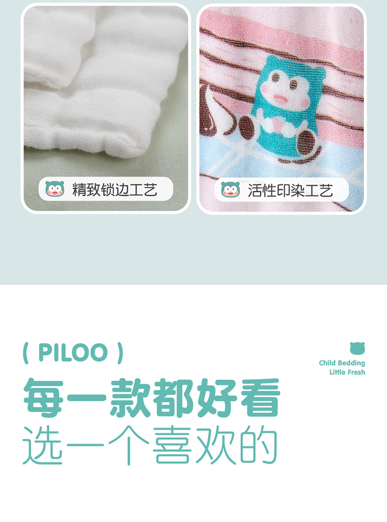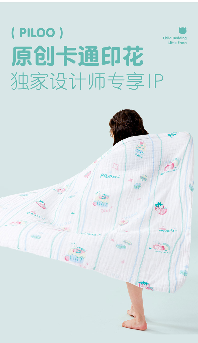 匹鲁设计师系列100%全棉纱布浴巾套装【浴巾+方巾】【双11家居生活福利专场】