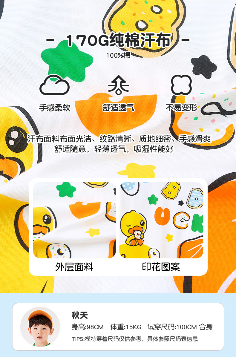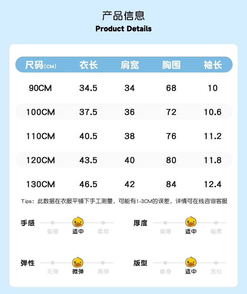 B.Duck小黄鸭童装夏季短袖T恤90-130 BF2402065