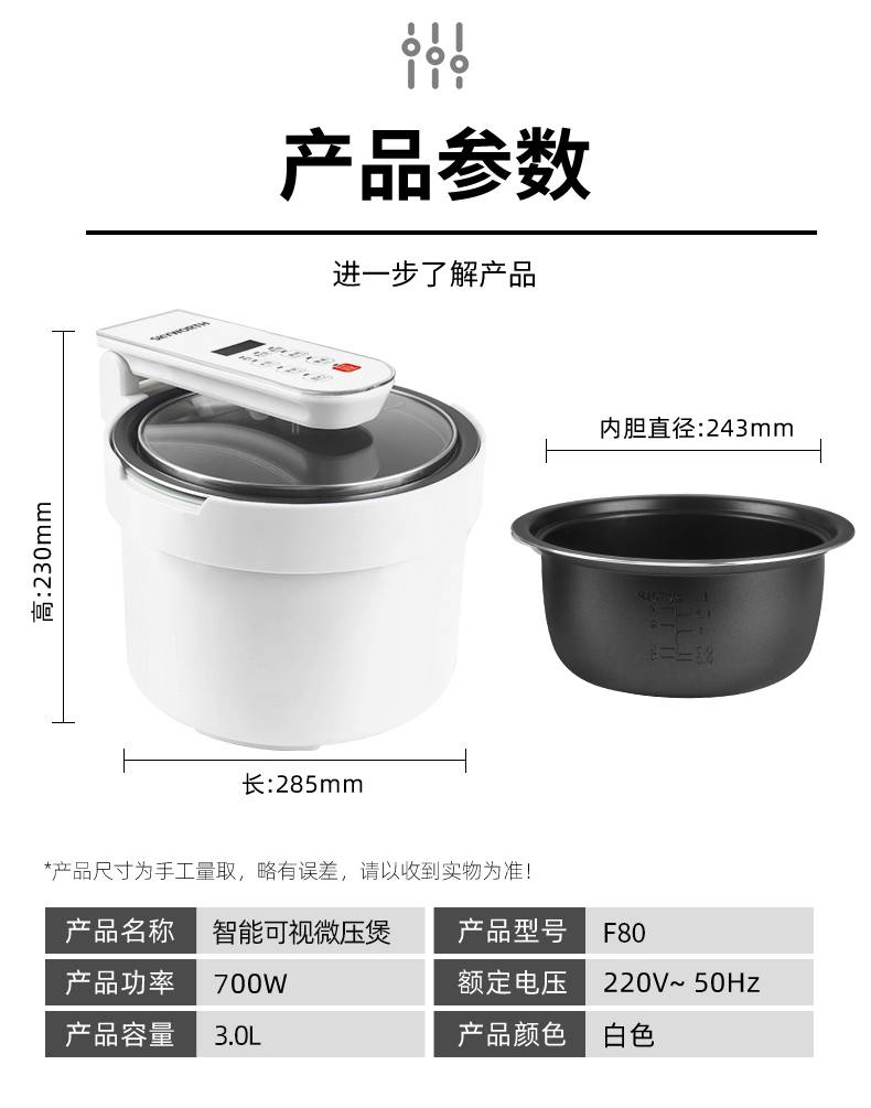 创维(SKYWORTH)F80智能可视微压煲3L
