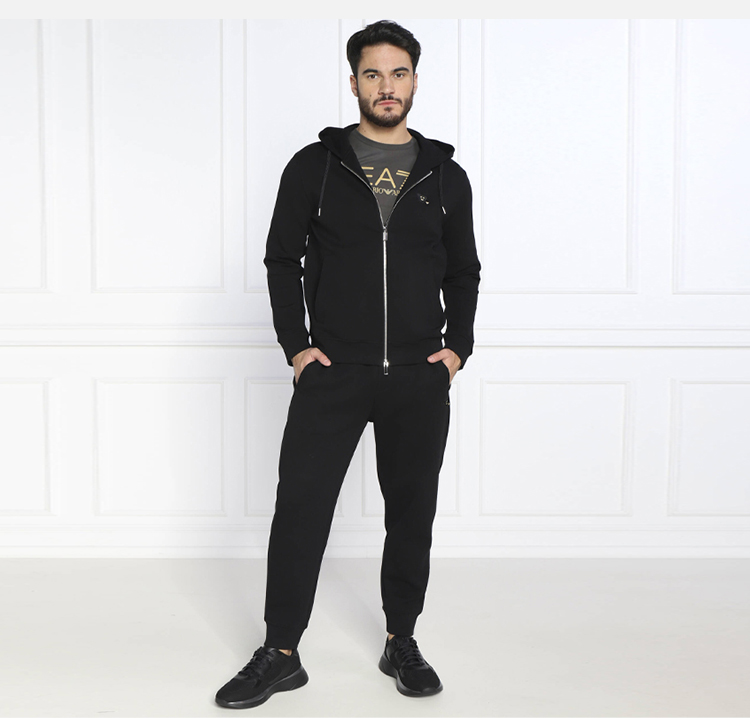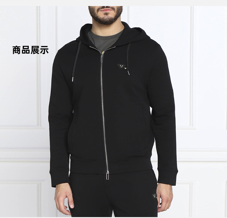 EMPORIO ARMANI 阿玛尼 男士棉质徽标刺绣拉链连帽卫衣 黑色 8N1MFF 1JHSZ 0999