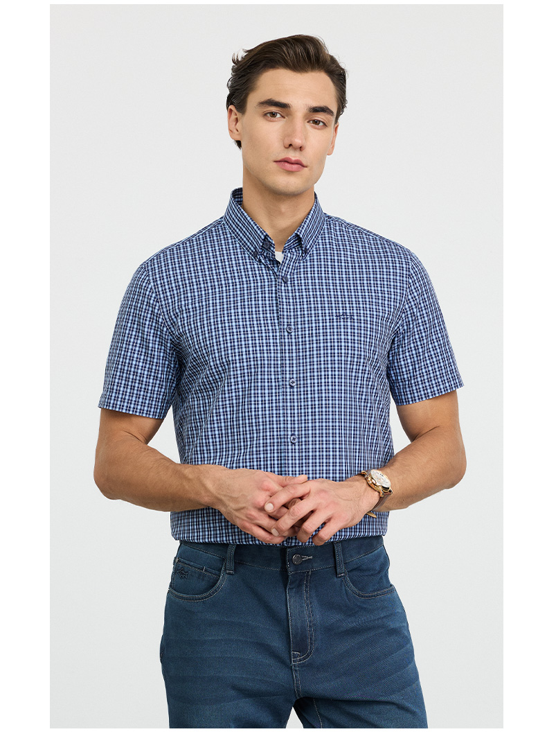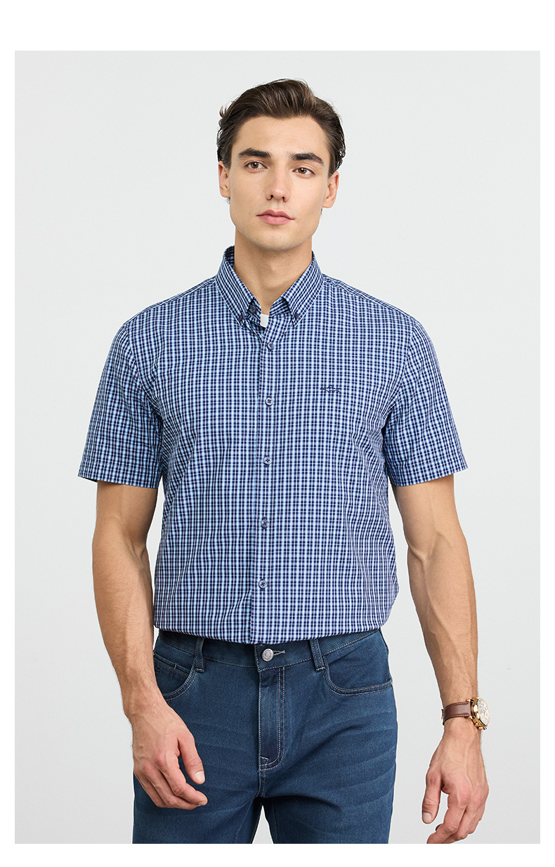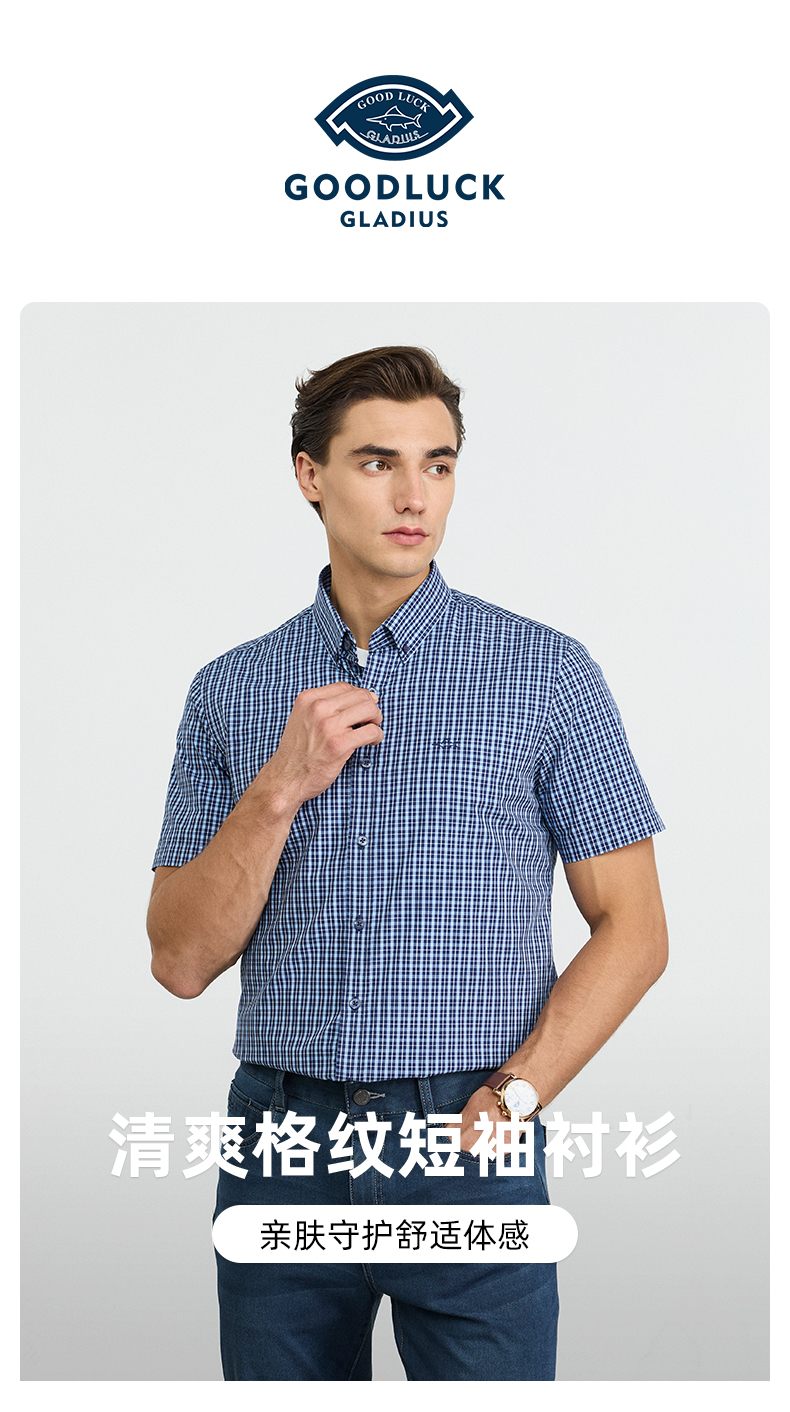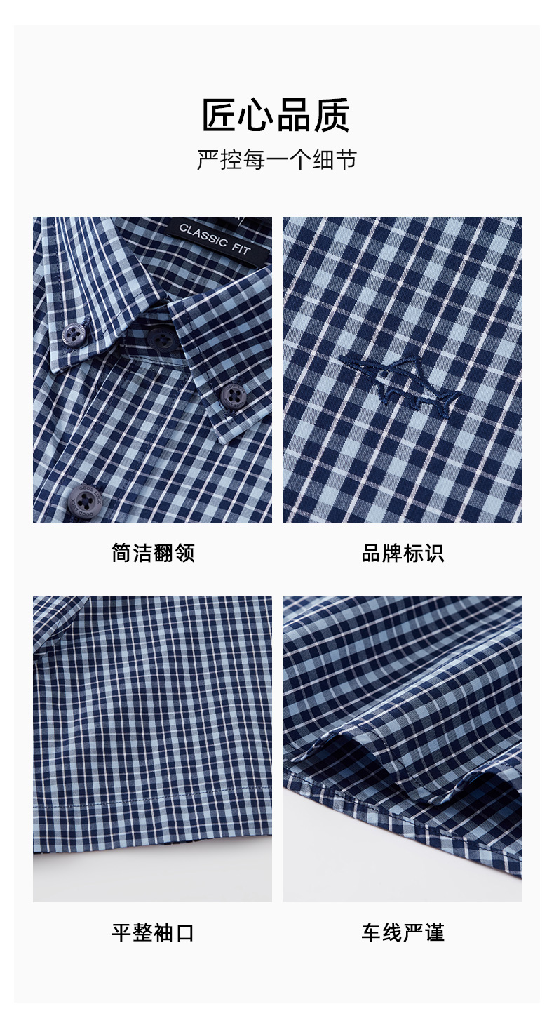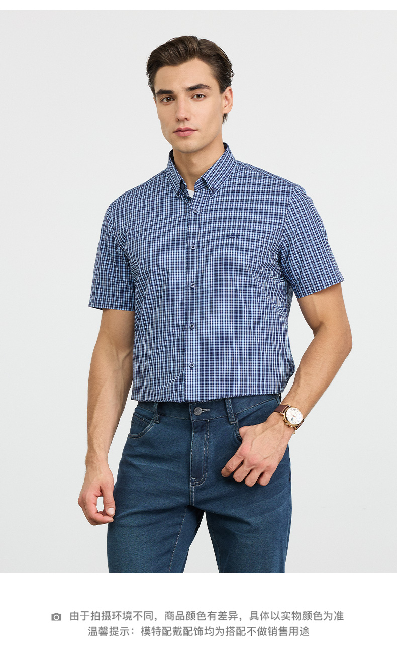 【纯棉】德鲨经典短袖格子衬衫男青年休闲舒适上衣打底衬衣2026夏