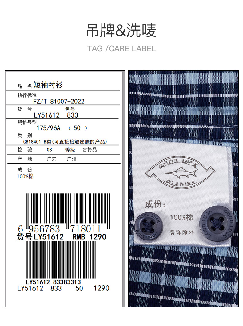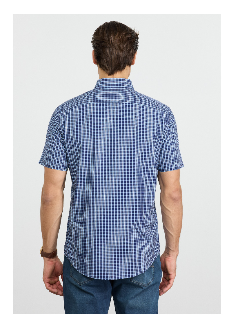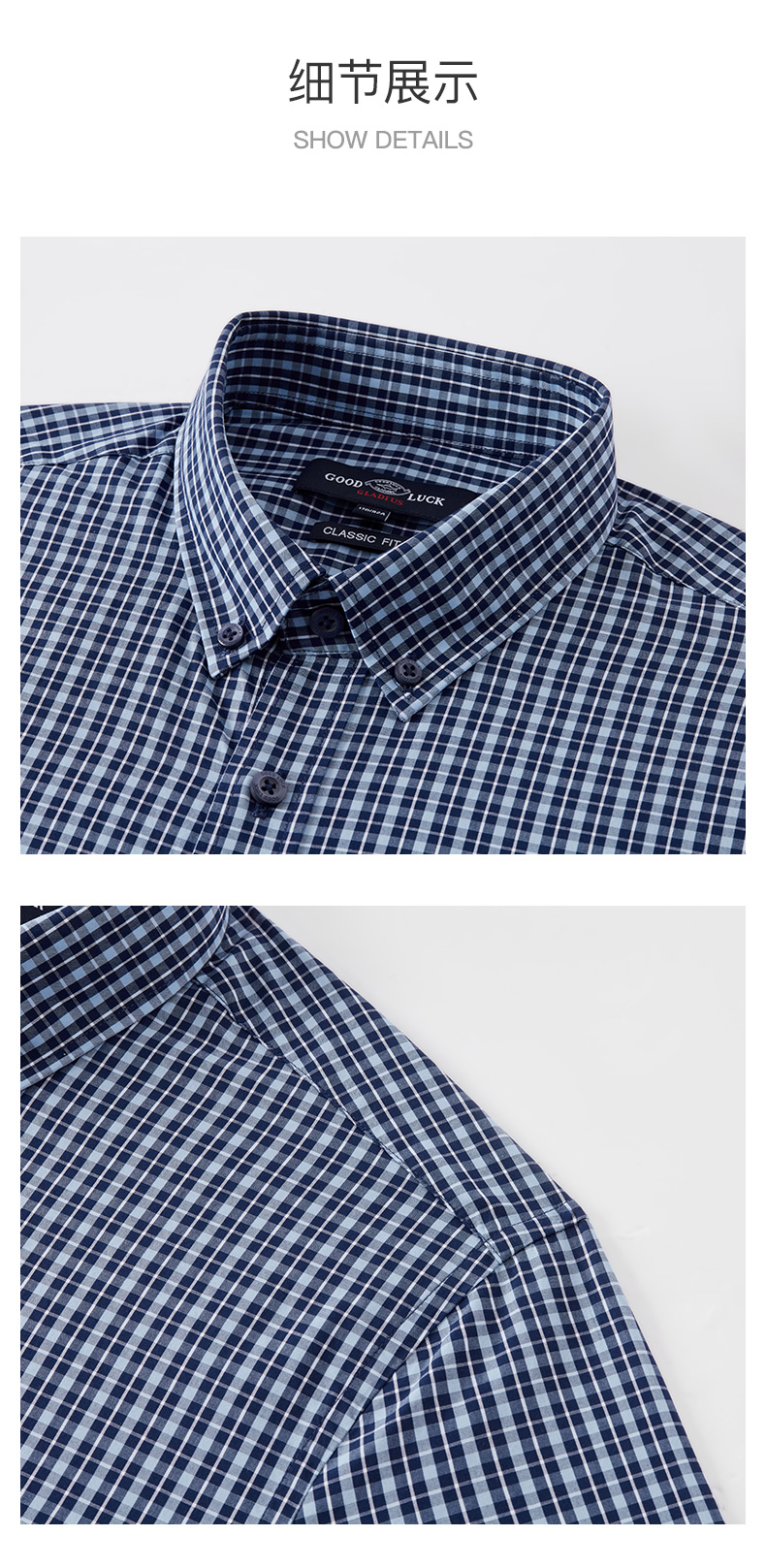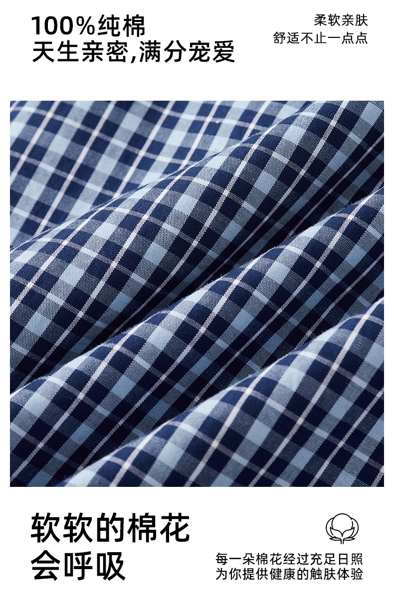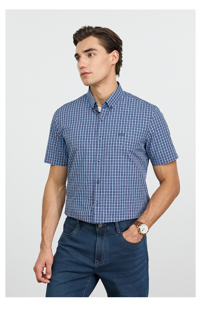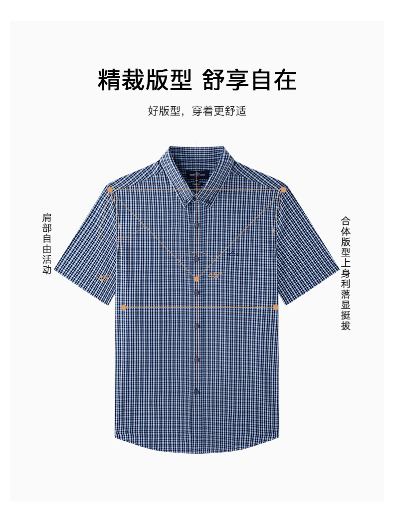 【纯棉】德鲨经典短袖格子衬衫男青年休闲舒适上衣打底衬衣2026夏