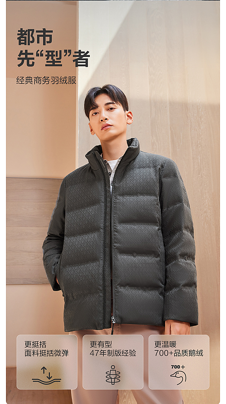 B30144111【鹅绒】波司登2023冬季新款男短款经典商务面包服外套立领羽绒服