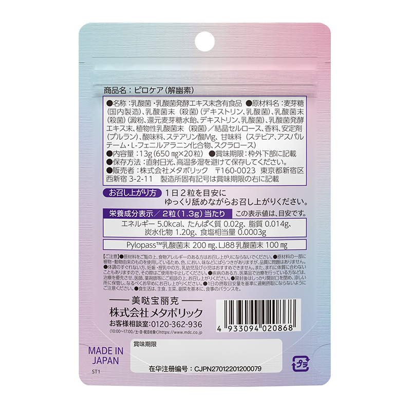 1 次 1 粒,1 天 1次,含在嘴里食用(日常预防:1天1粒・有胃不适:1天2粒)MDC 解幽素