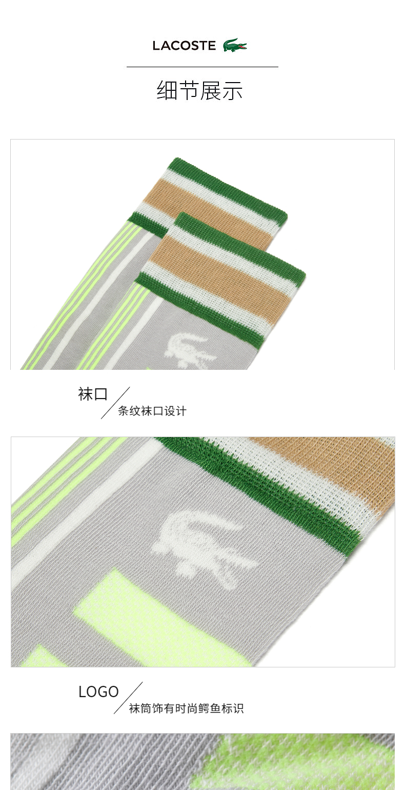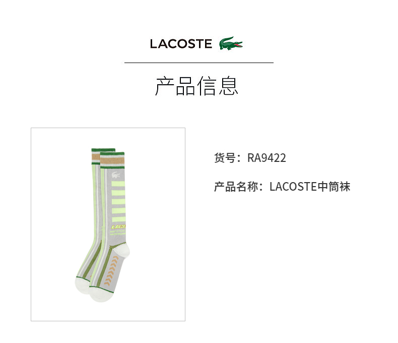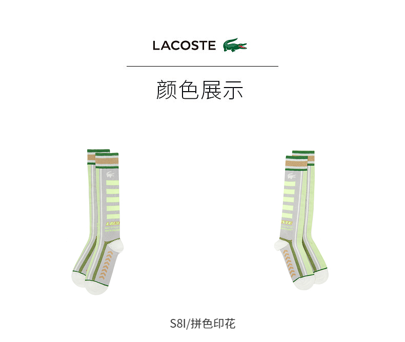 【海南专供价】Lacoste法国鳄鱼男女同款拼色印花中筒袜RA9422-10