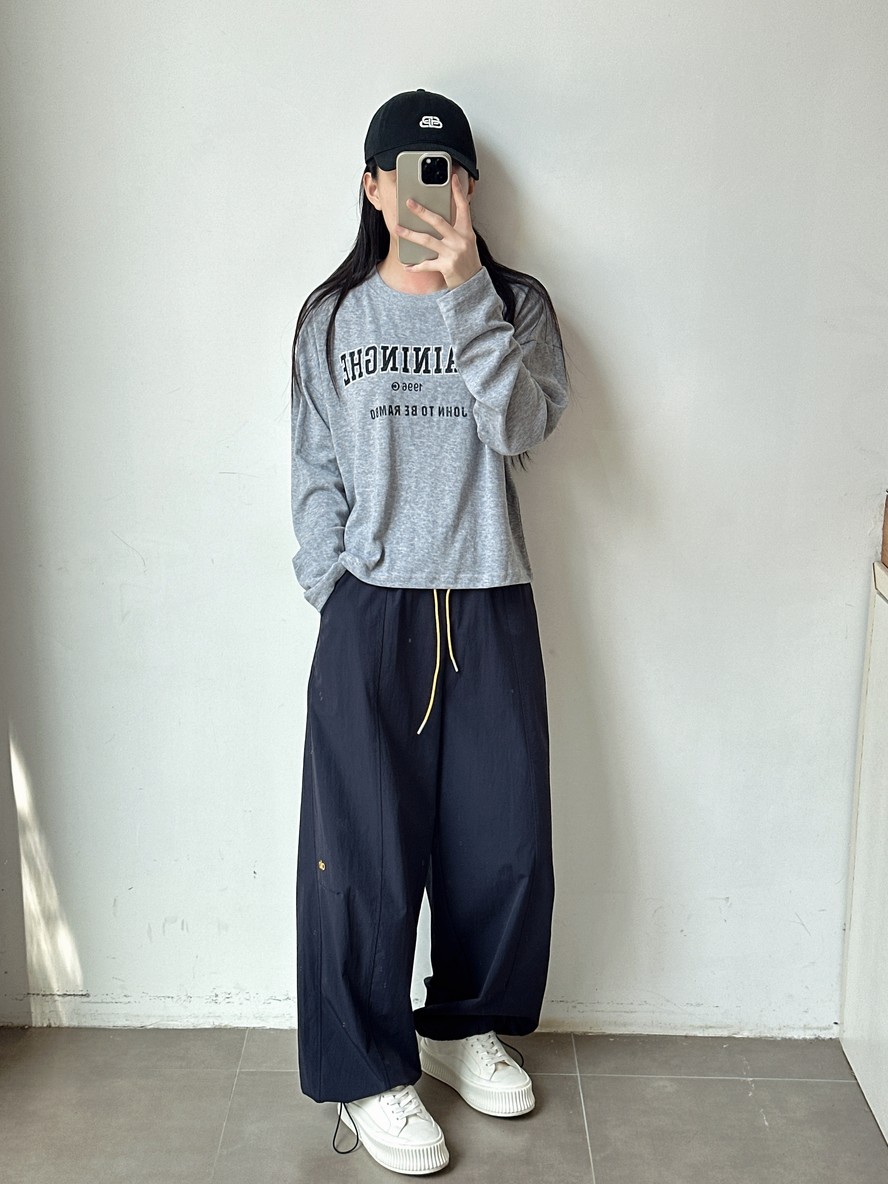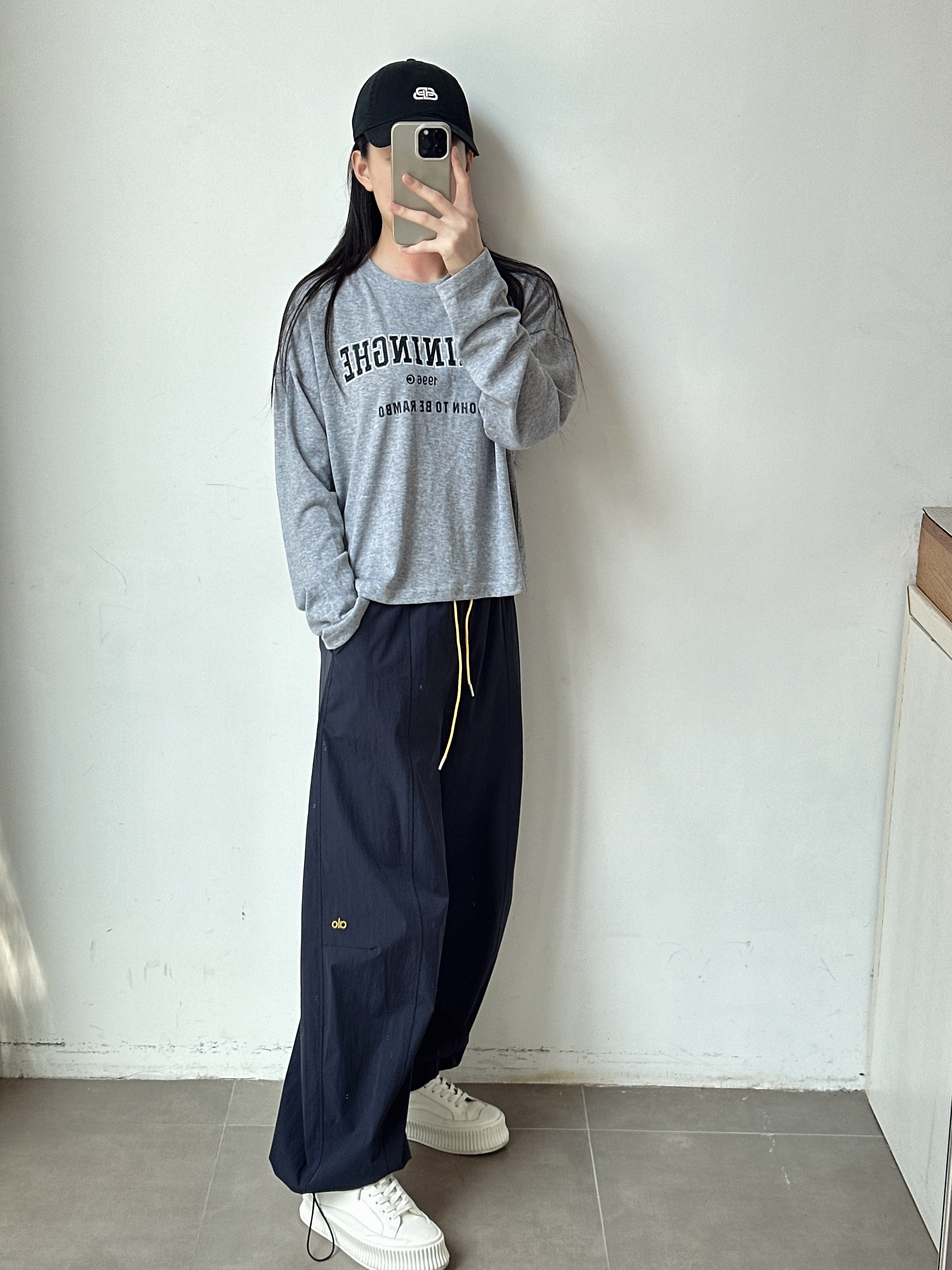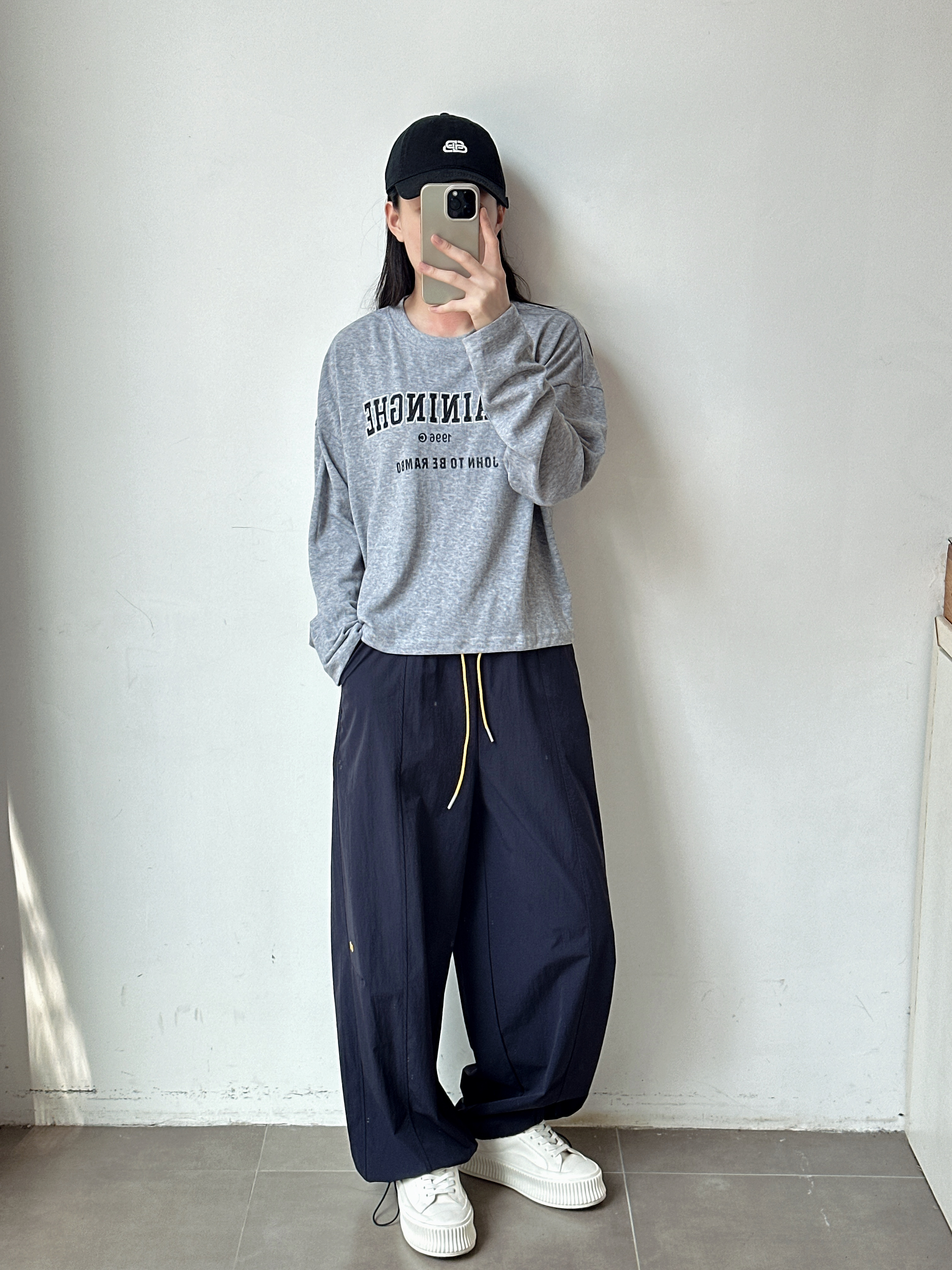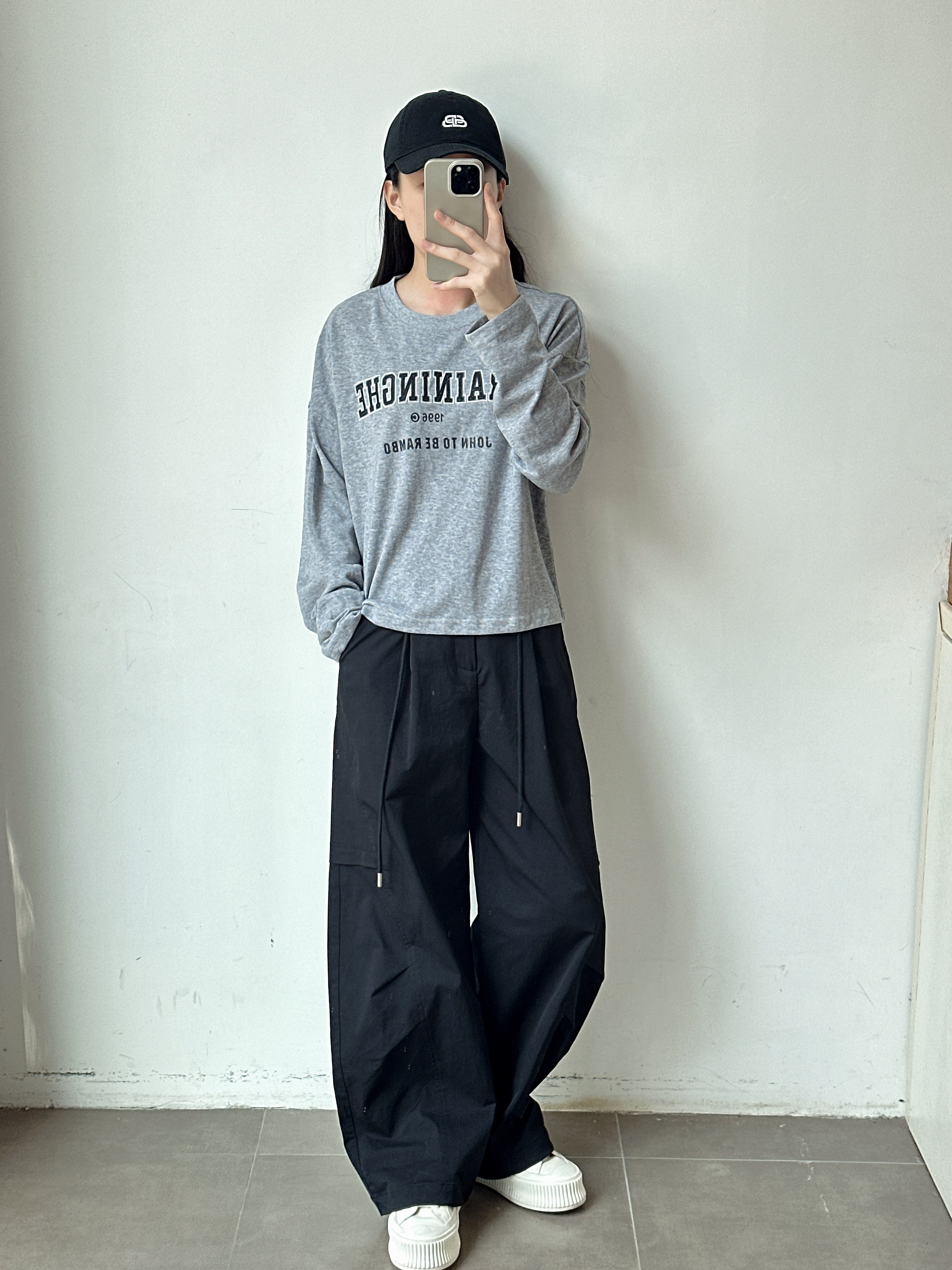 复古美式休闲风字母印花长袖T恤女25秋季肌理感新款圆领宽松上衣