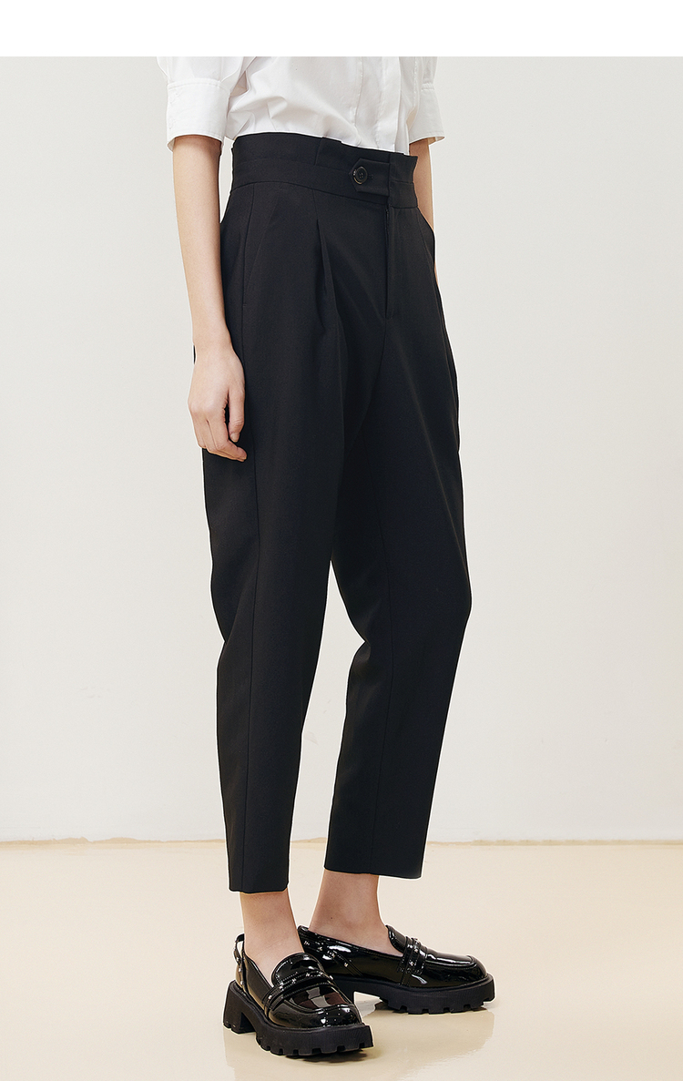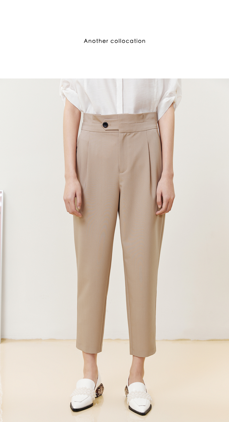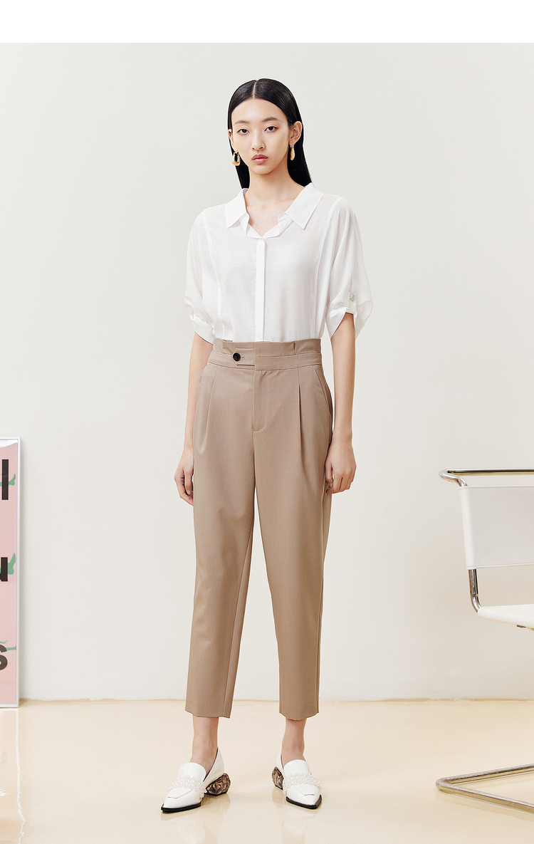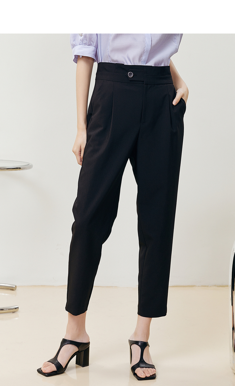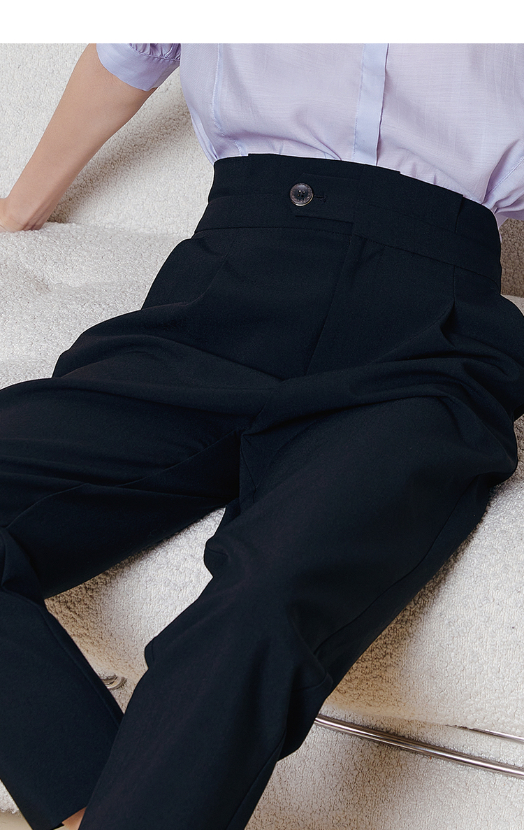 NEELLY纳俪商场同款2022夏季西装裤女高腰立体打褶休闲九分裤直筒N22051H01146