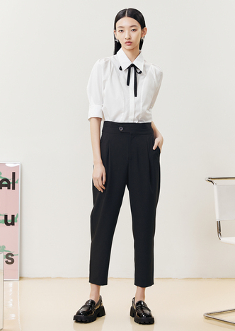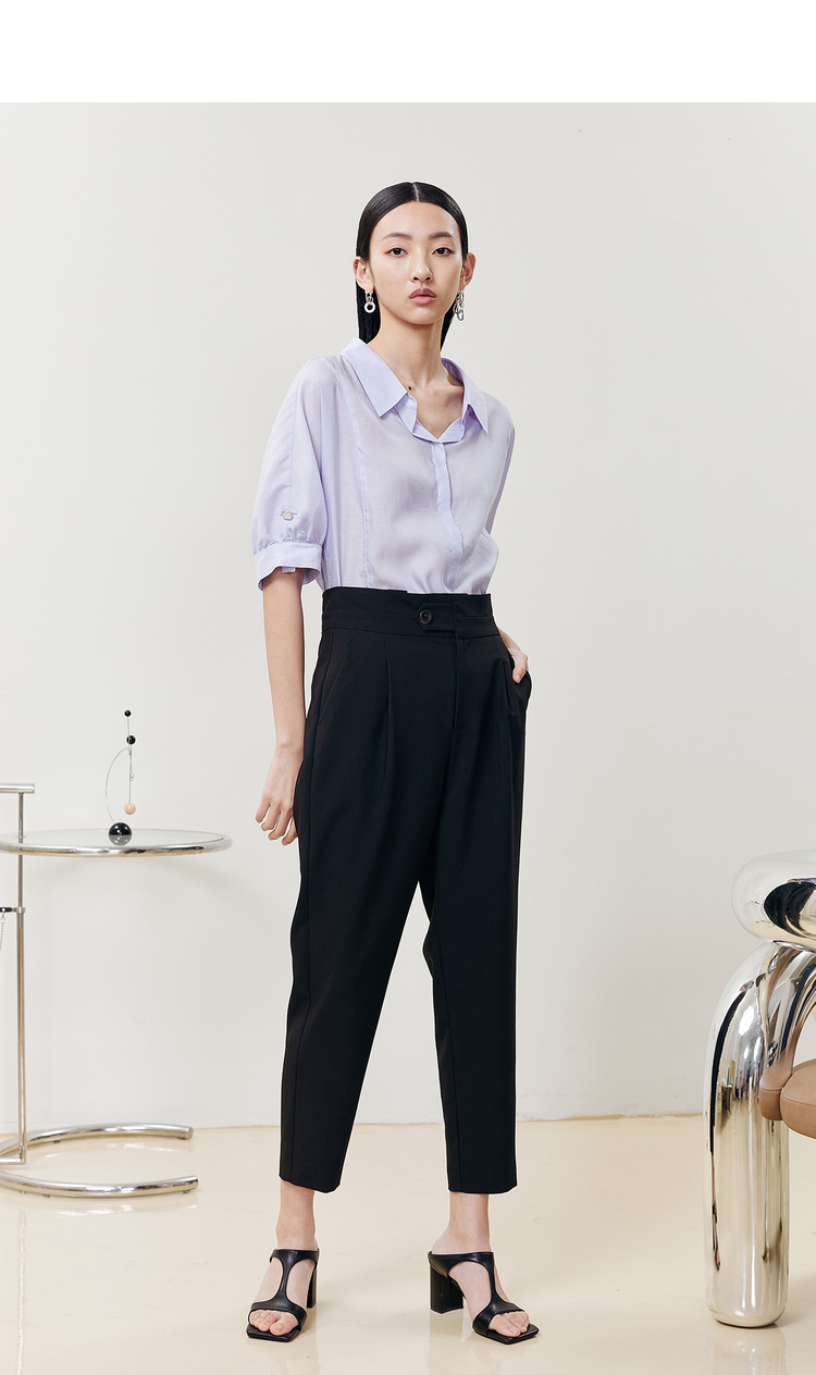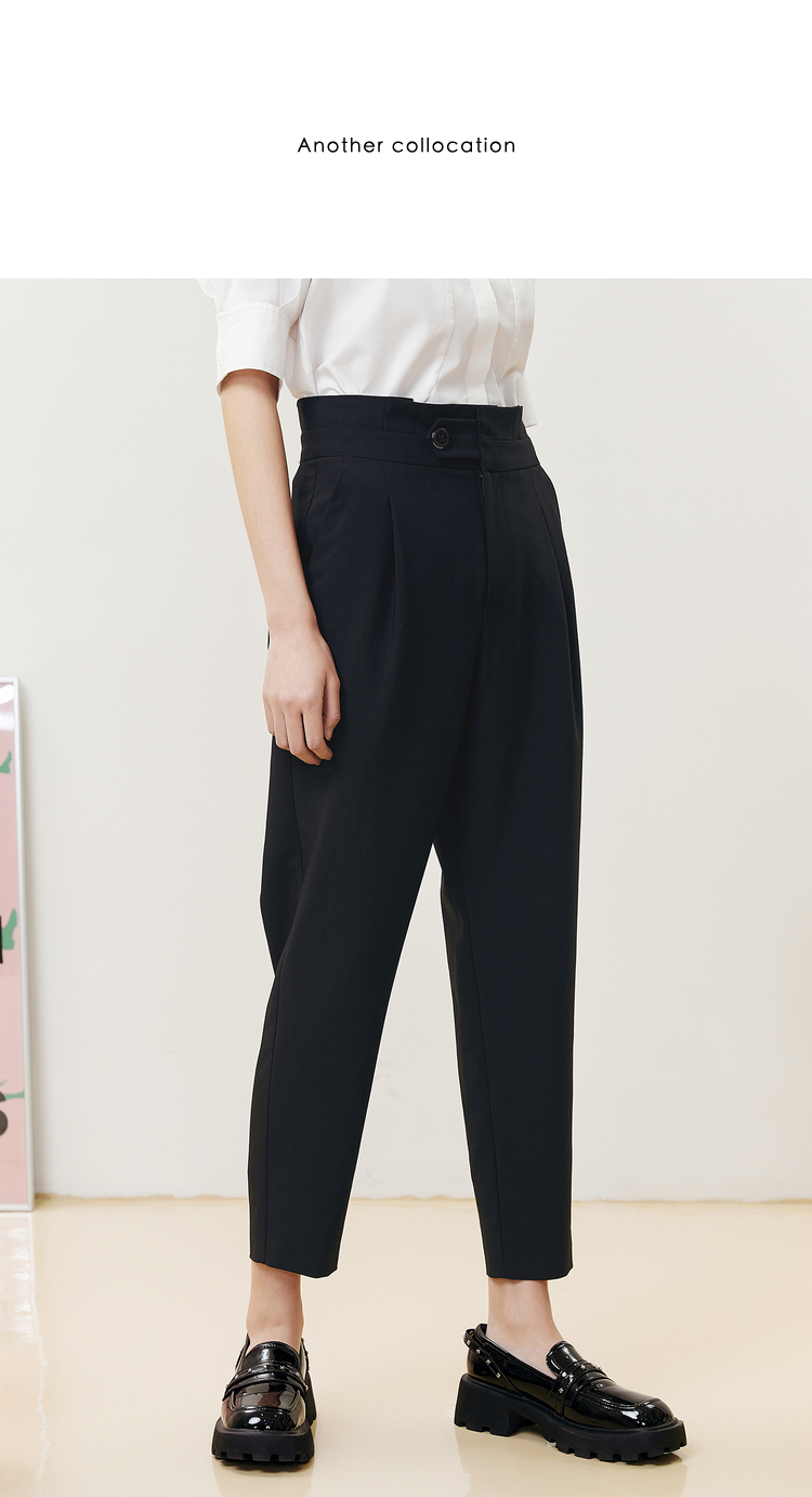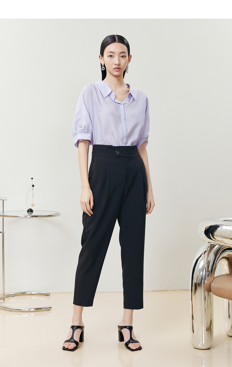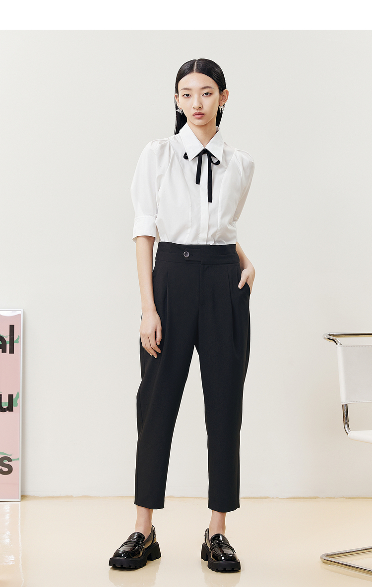 NEELLY纳俪商场同款2022夏季西装裤女高腰立体打褶休闲九分裤直筒N22051H01146