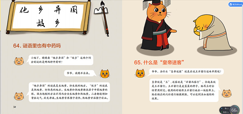 该书精选了生活中常见的66个中医小常识,以漫画问答的方式向孩子传递中医在生活中的应用。作为中医药少儿科普读物,其内容活泼,贴近生活,趣味性强。