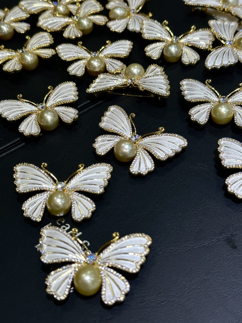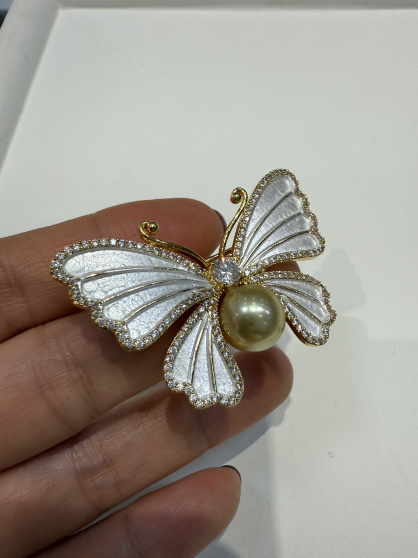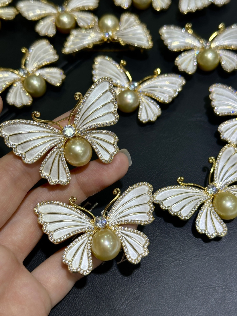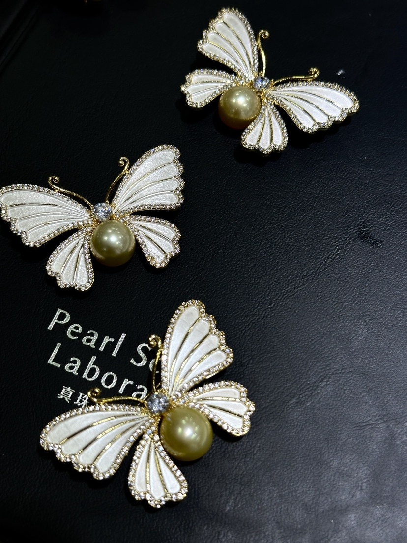 昔有《岭南异物志》载"南海珠如金粟,夜照鲛室",今见南洋金珠凝千年海魄,缀于蝶翼之端,恰似庄周梦中之物化入尘寰。