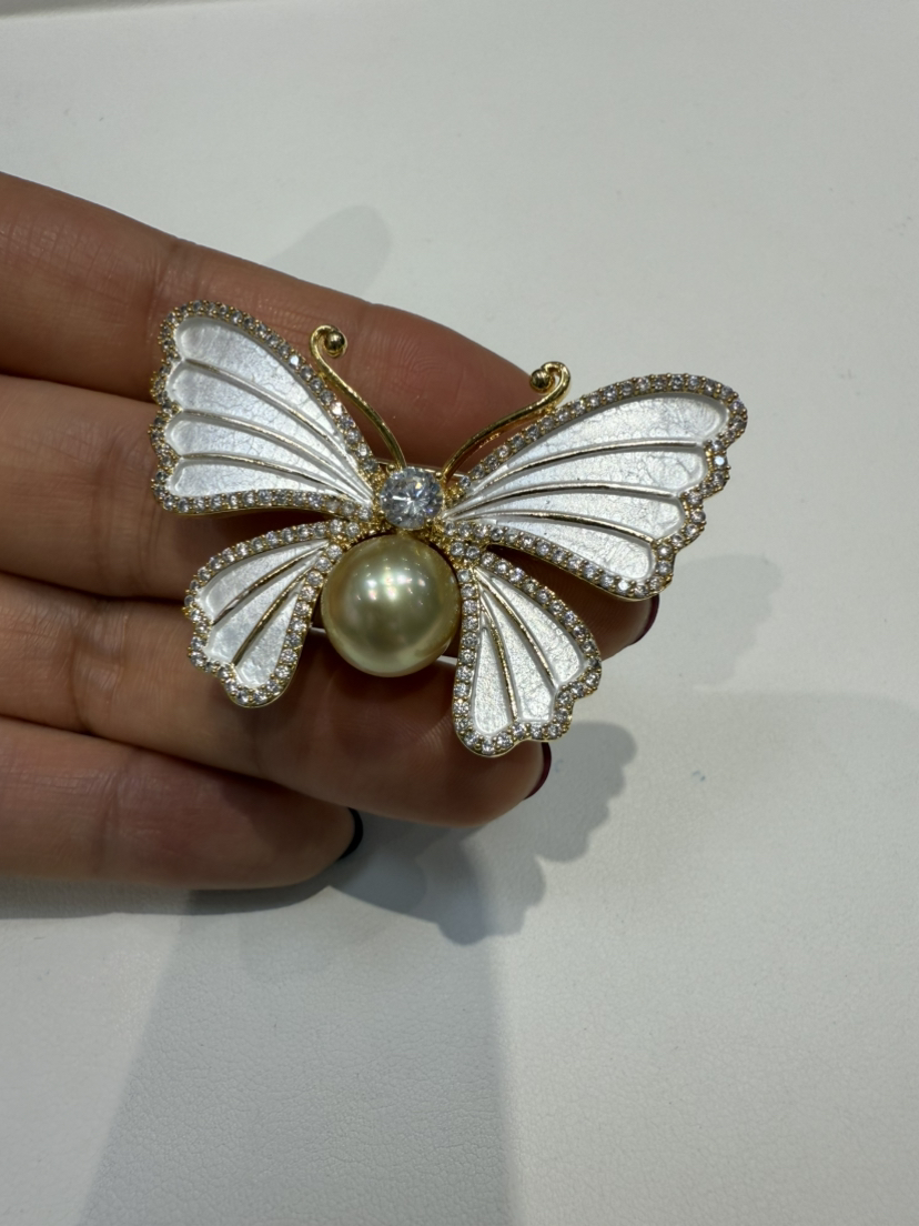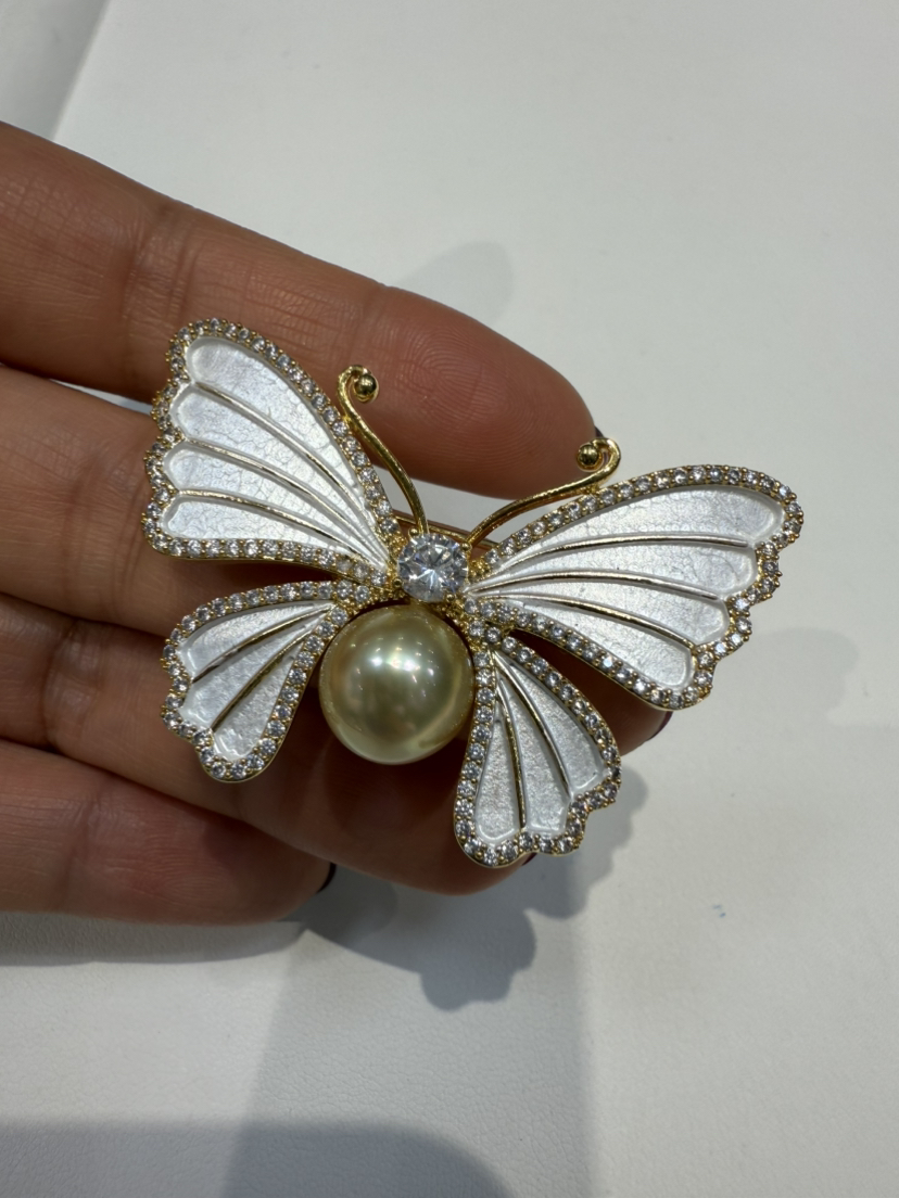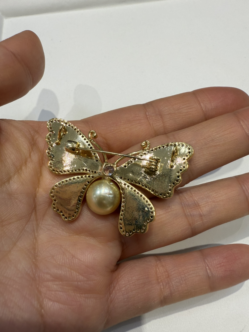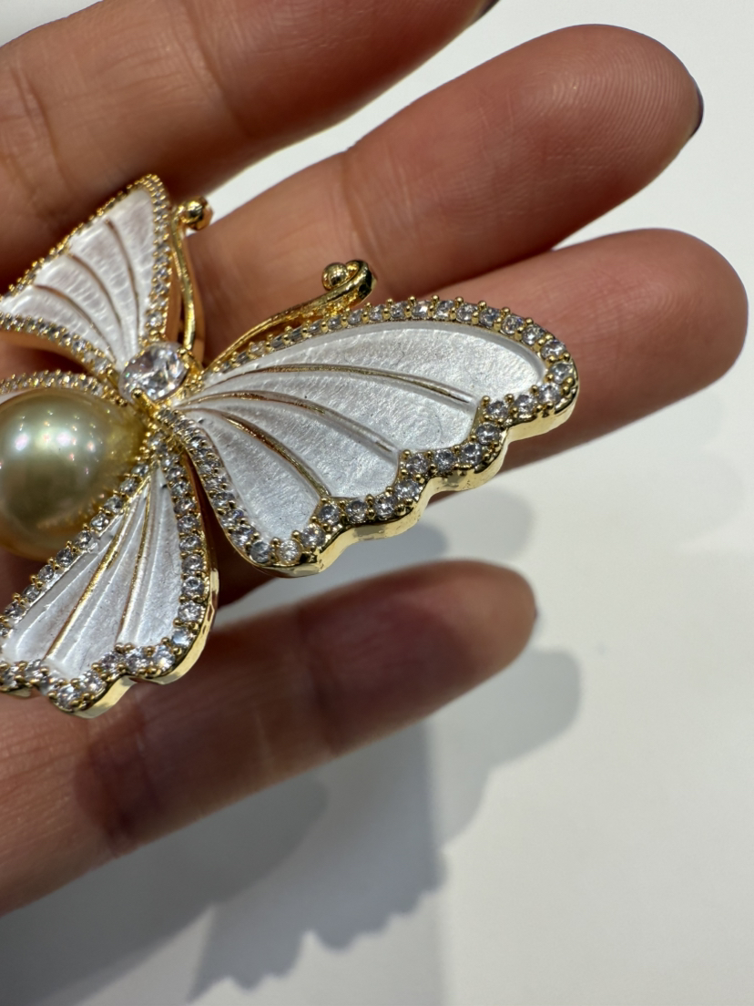 昔有《岭南异物志》载"南海珠如金粟,夜照鲛室",今见南洋金珠凝千年海魄,缀于蝶翼之端,恰似庄周梦中之物化入尘寰。