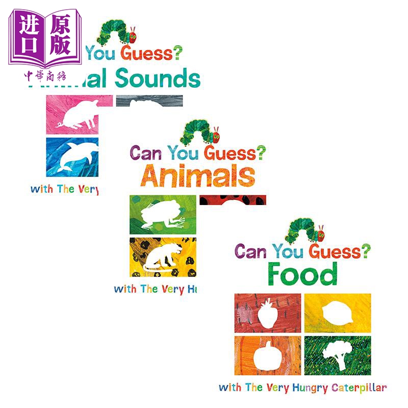 【中商原版】Eric Carle 艾瑞卡尔爷爷 毛毛虫猜猜系列3册 纸板书 动物 食物 声音 英文原版 进口图书 儿童绘本 故事图画书