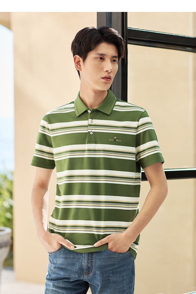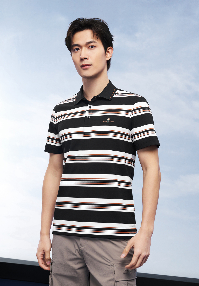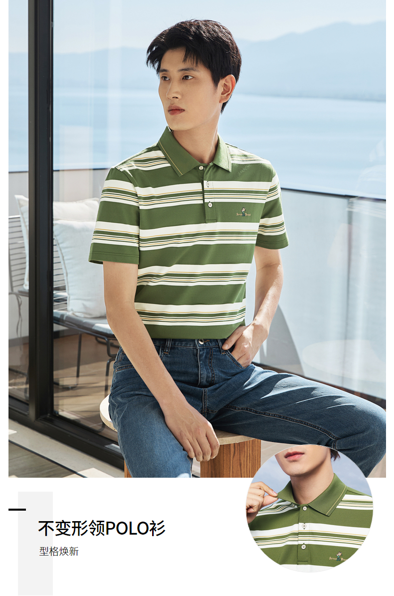 【条纹POLO衫】柒牌男装上衣2026春季新款不变形领设计短袖商务男 130T71250