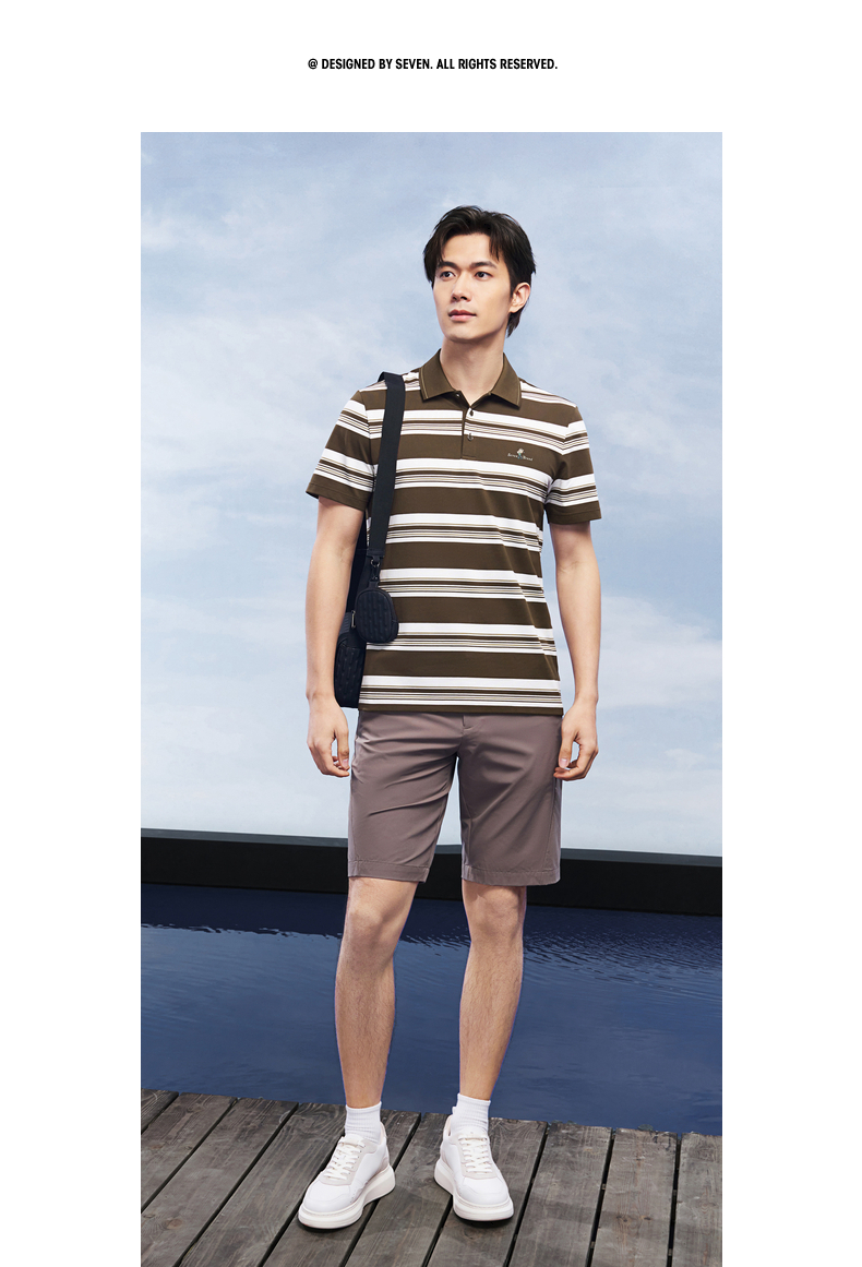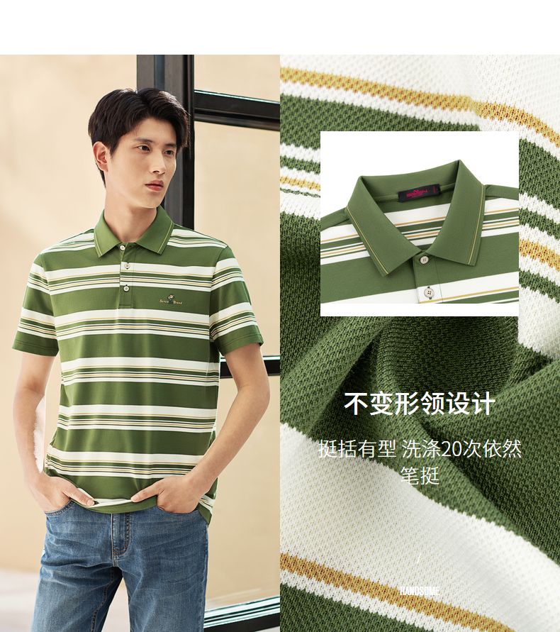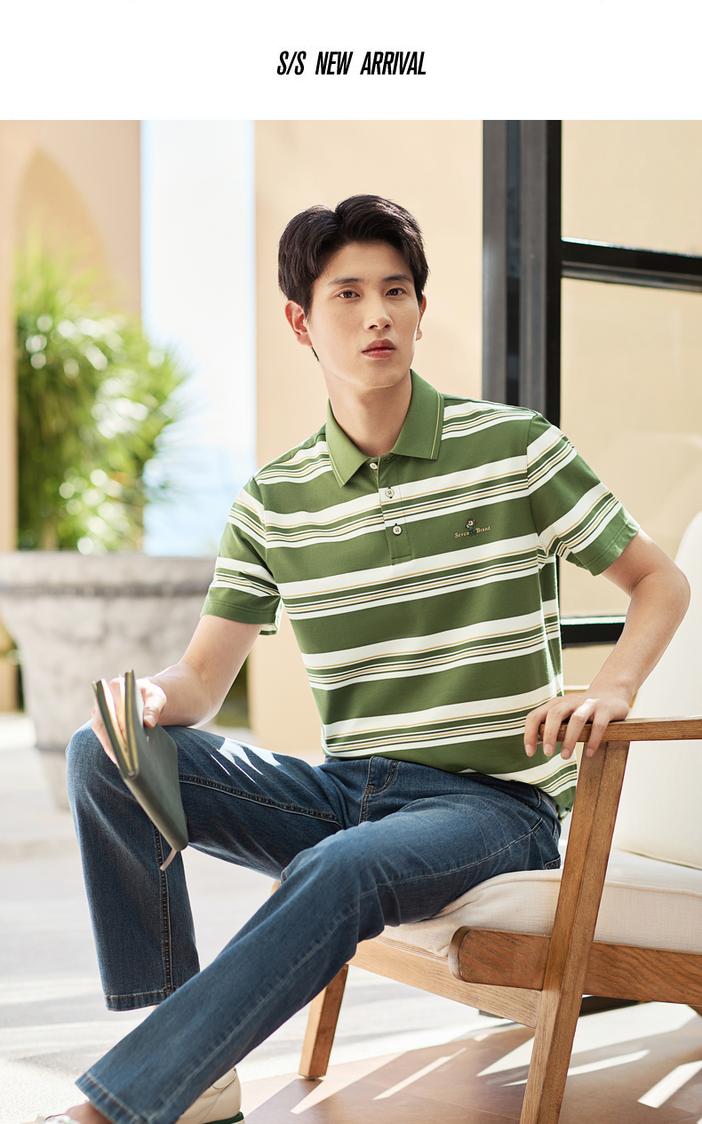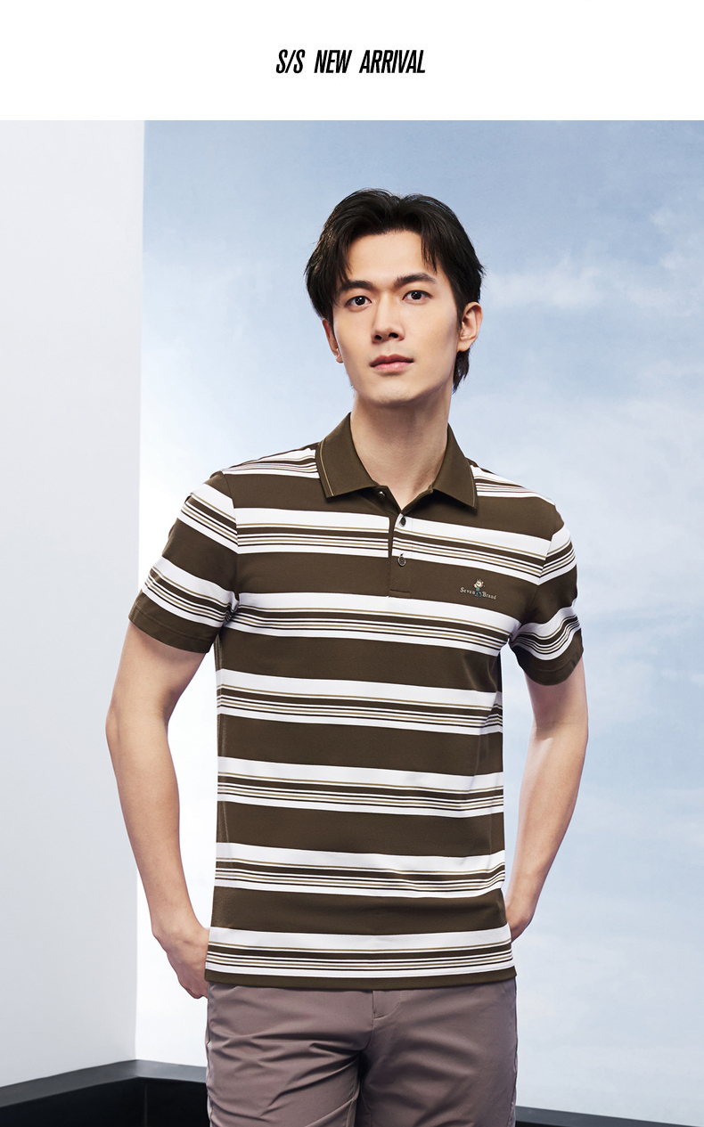 【条纹POLO衫】柒牌男装上衣2026春季新款不变形领设计短袖商务男 130T71250