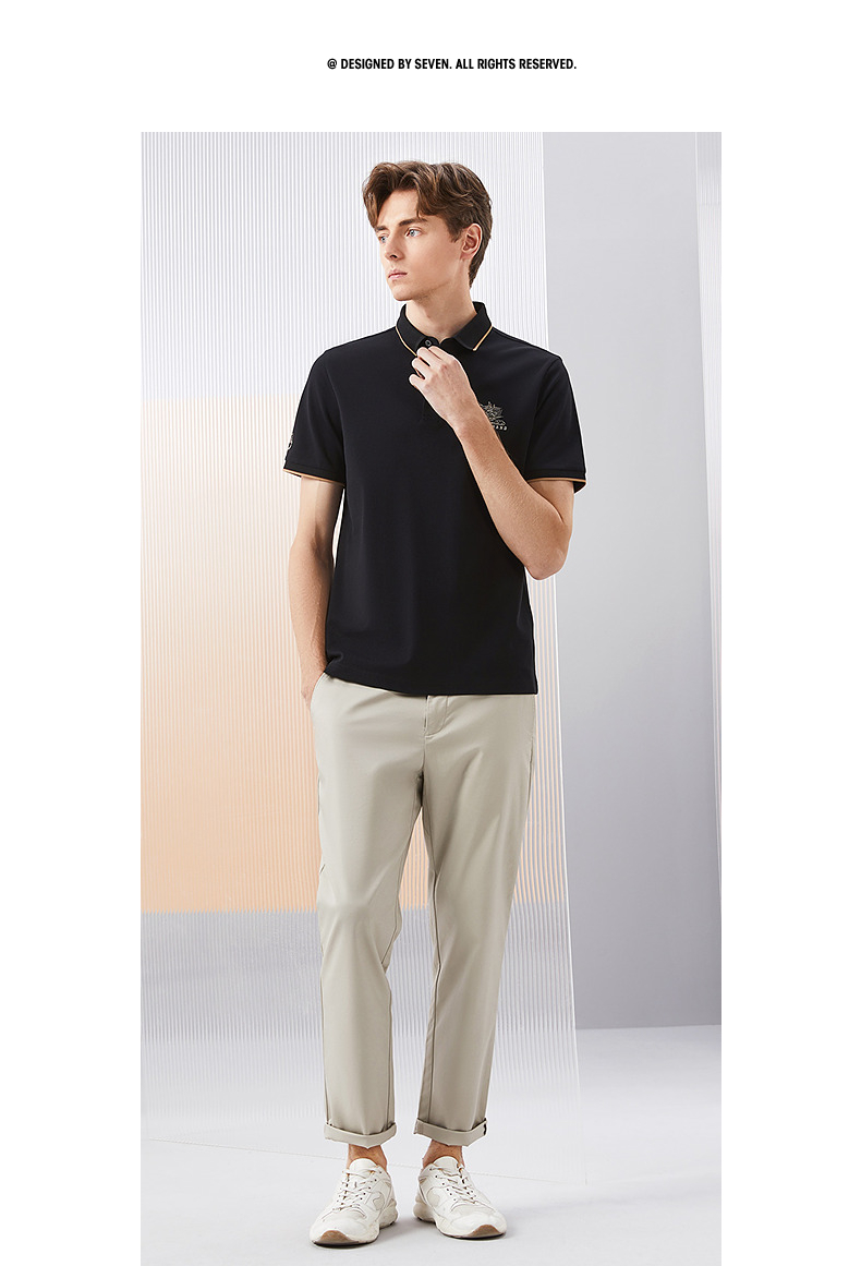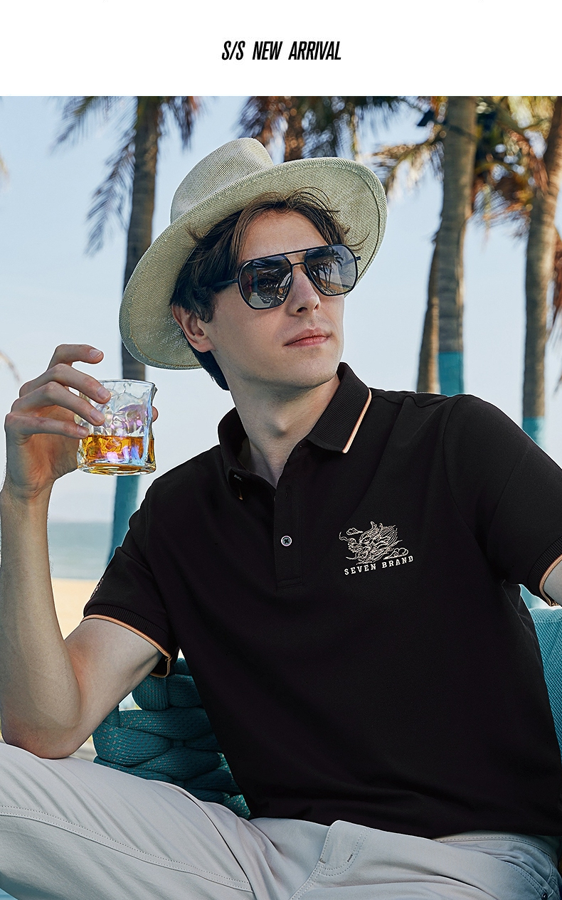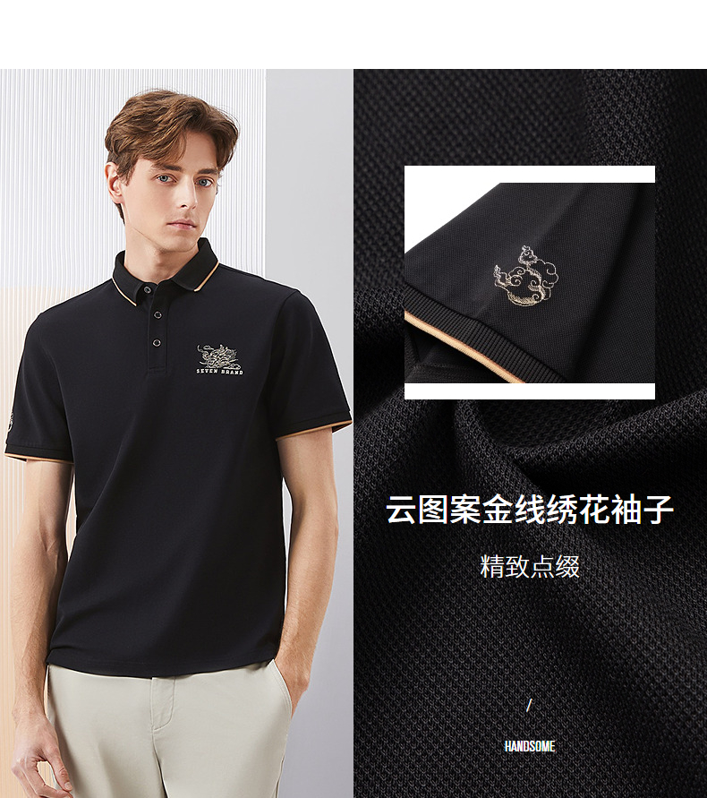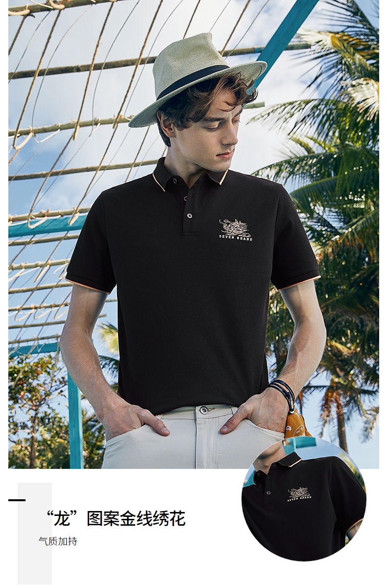 【不变形领】【不变形领】柒牌短袖polo衫男2024夏季新款时尚龙纹绣花休闲上衣 126T70560