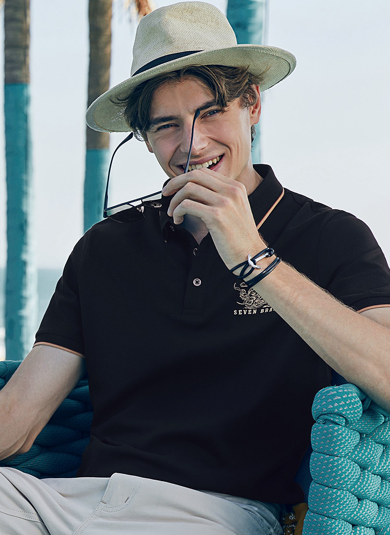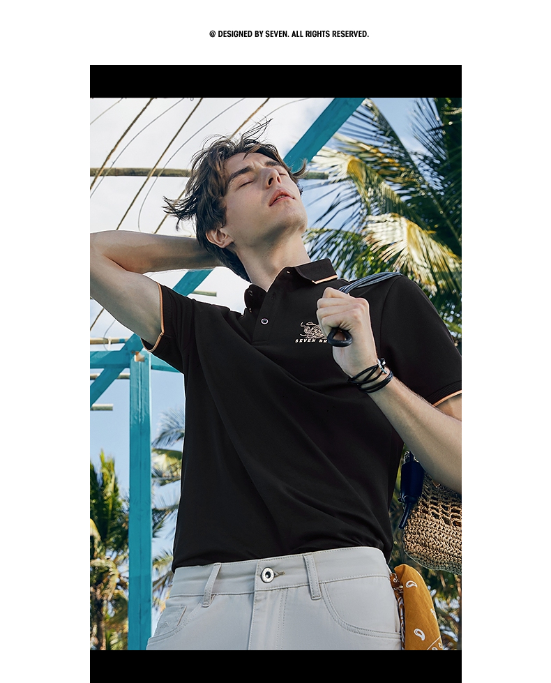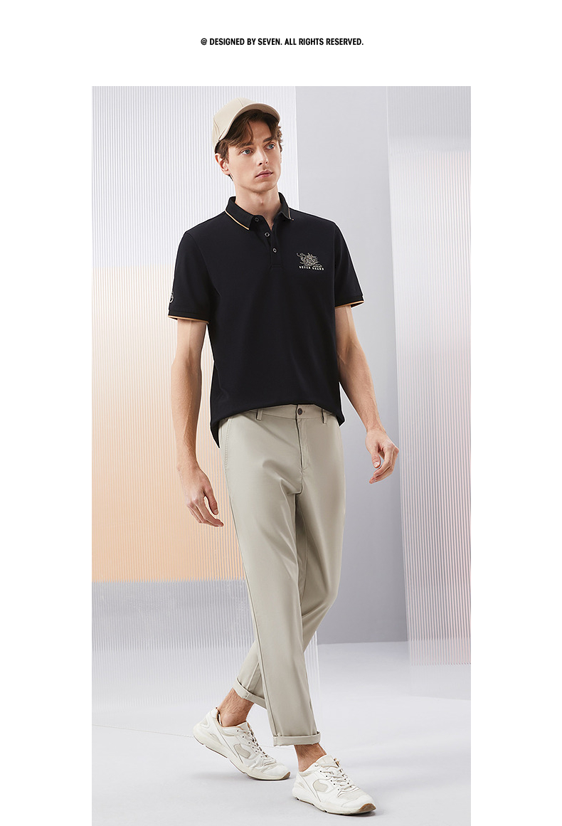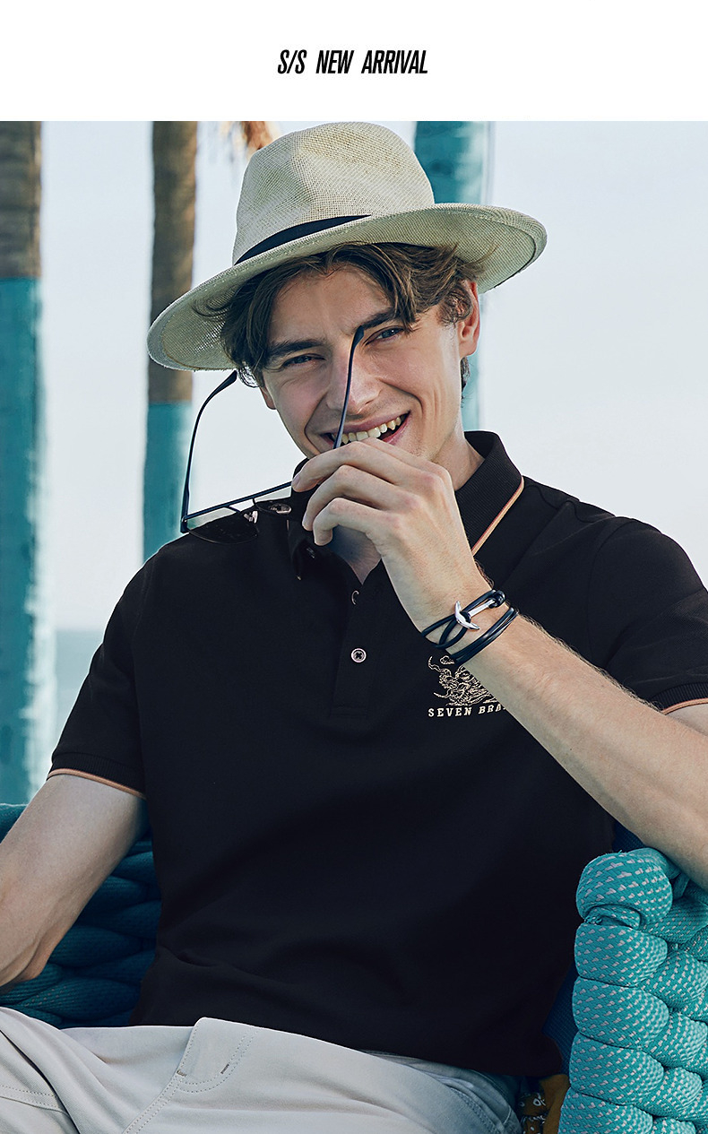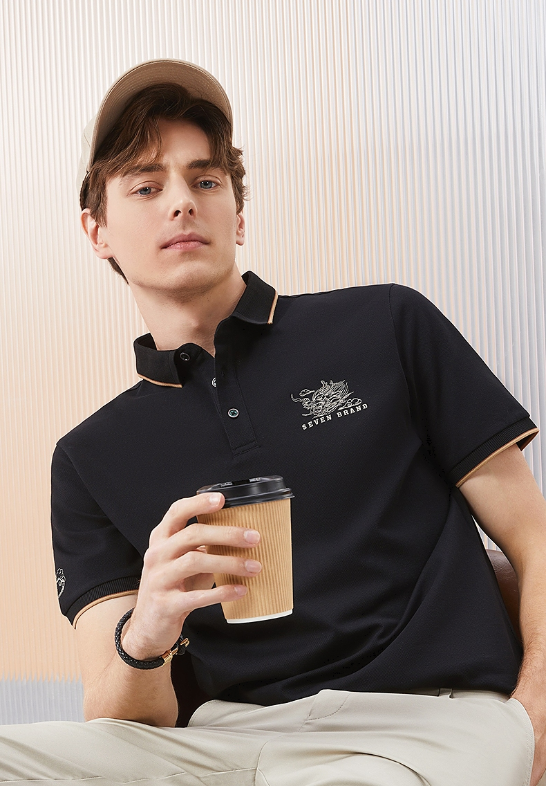 【不变形领】【不变形领】柒牌短袖polo衫男2024夏季新款时尚龙纹绣花休闲上衣 126T70560