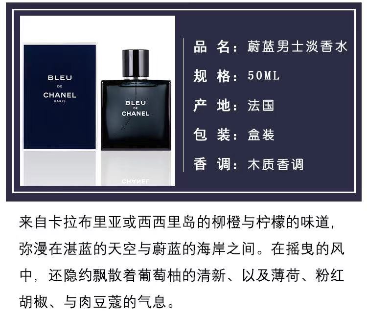 【双12嗨购节】【全球购】CHANEL 新款香奈儿蔚蓝男士香水 bleu木质香100ml·现货速达