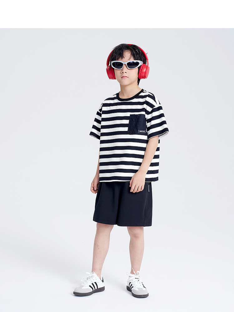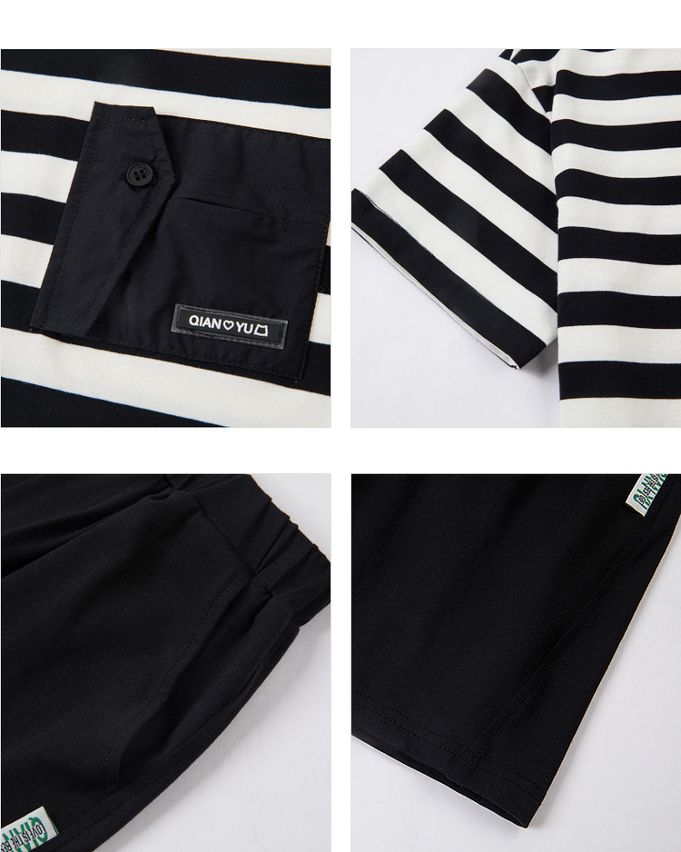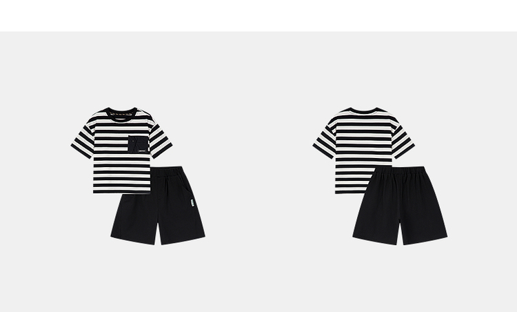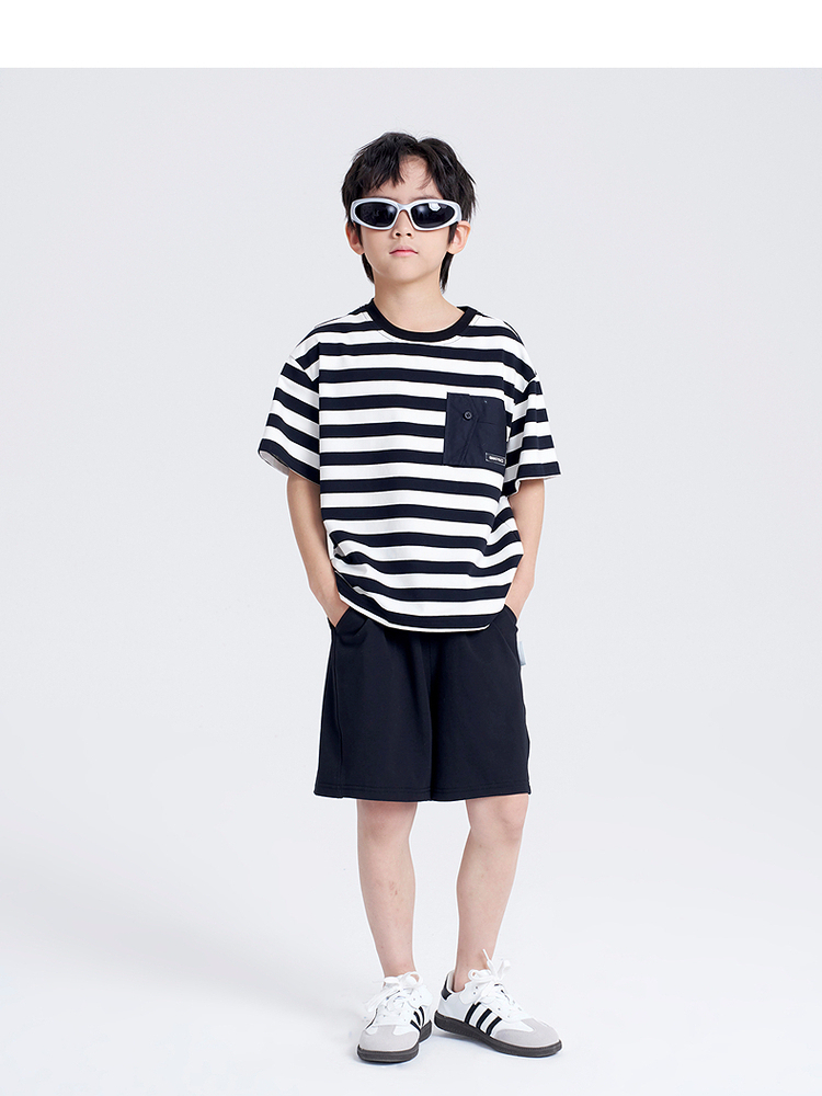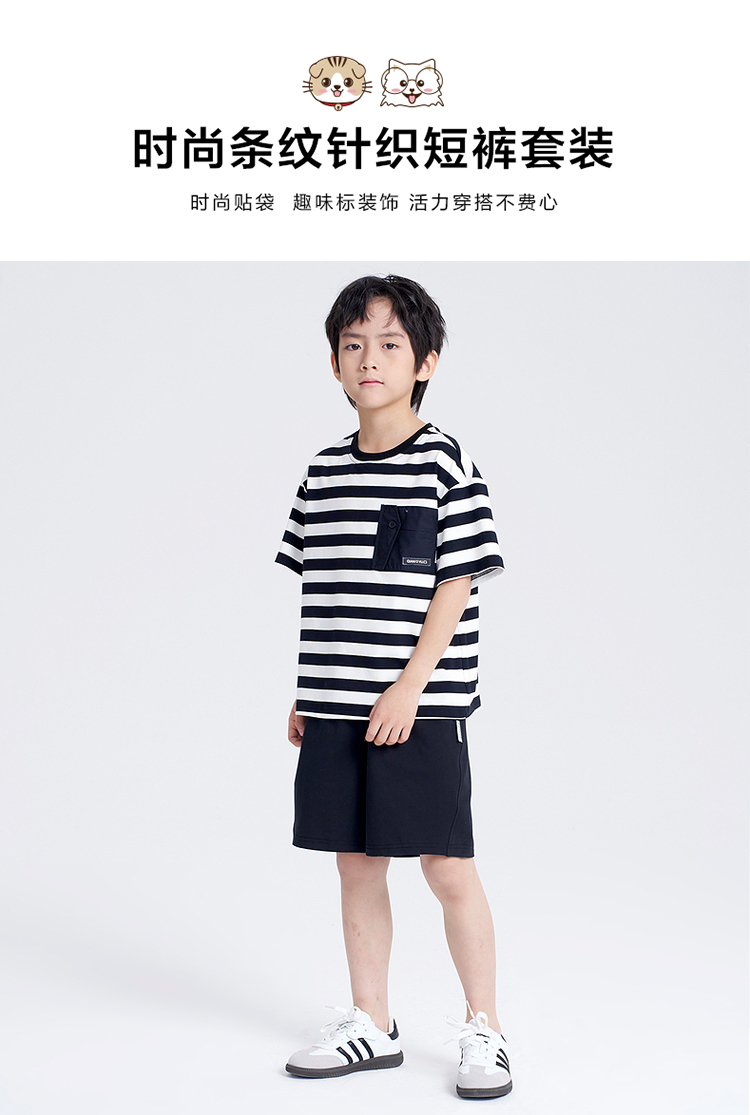 笛莎千与2025夏新款男童时尚条纹针织短裤套装